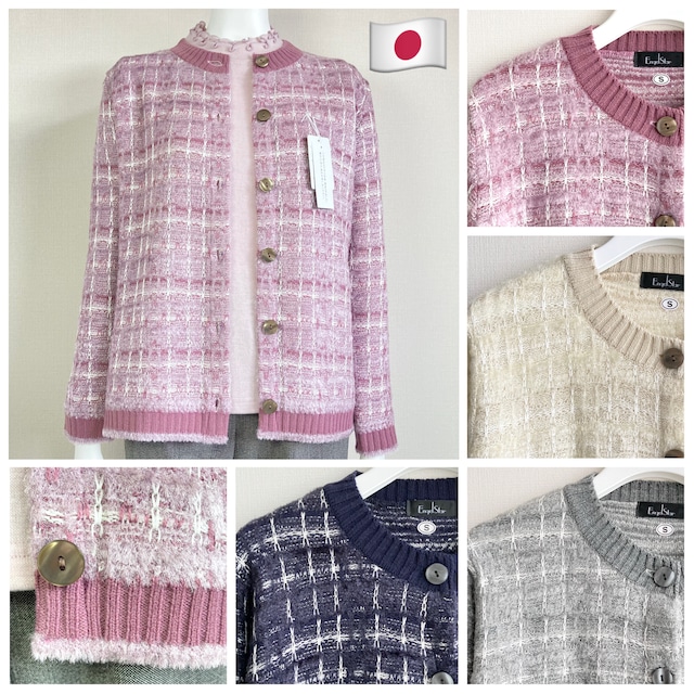 【冬物新作】ツイード風のふわふわチェックが冬らしいカーディガン/70代・80代・90代ギフト/日本製/小さめ高齢者服シニアファッション