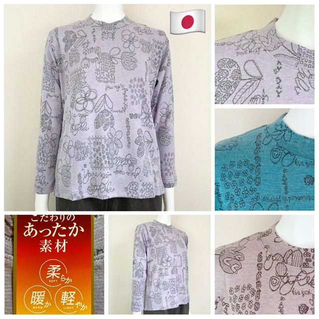 【新春SALE】チビ襟で首元暖か!落ち着いた雰囲気の花柄カットソー/70代・80代・90代ギフト/シニアファッション/Sサイズ/小さいサイズ/日本製高齢者服