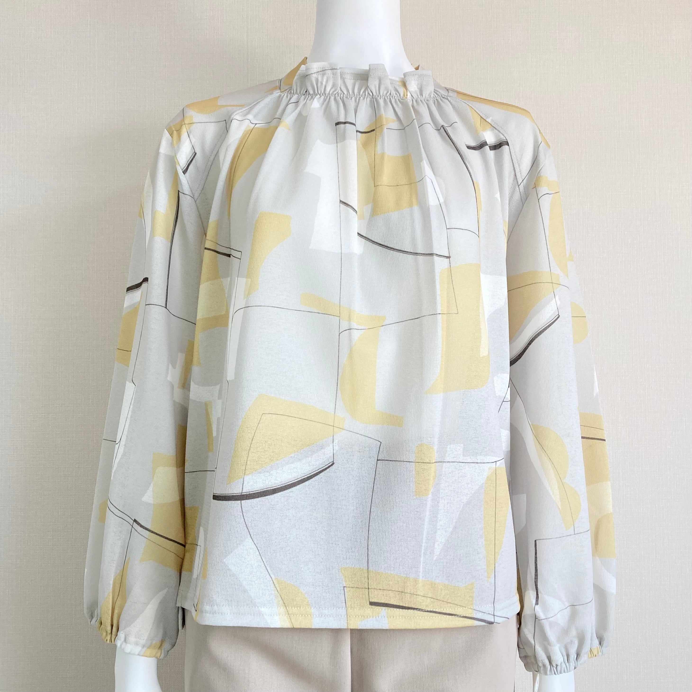 シックで落ち着いた色柄のギャザーブラウス☆これ1枚で秋らしいオシャレが楽しめます