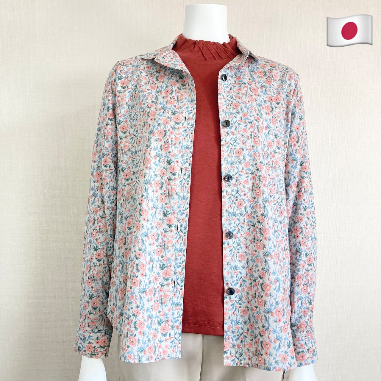 【長袖】スタンダードな形で使いやすい小花柄シャツブラウス/日本製/70代・80代・90代ギフト/シニアファッション/Sサイズ/小さいサイズ/高齢者服