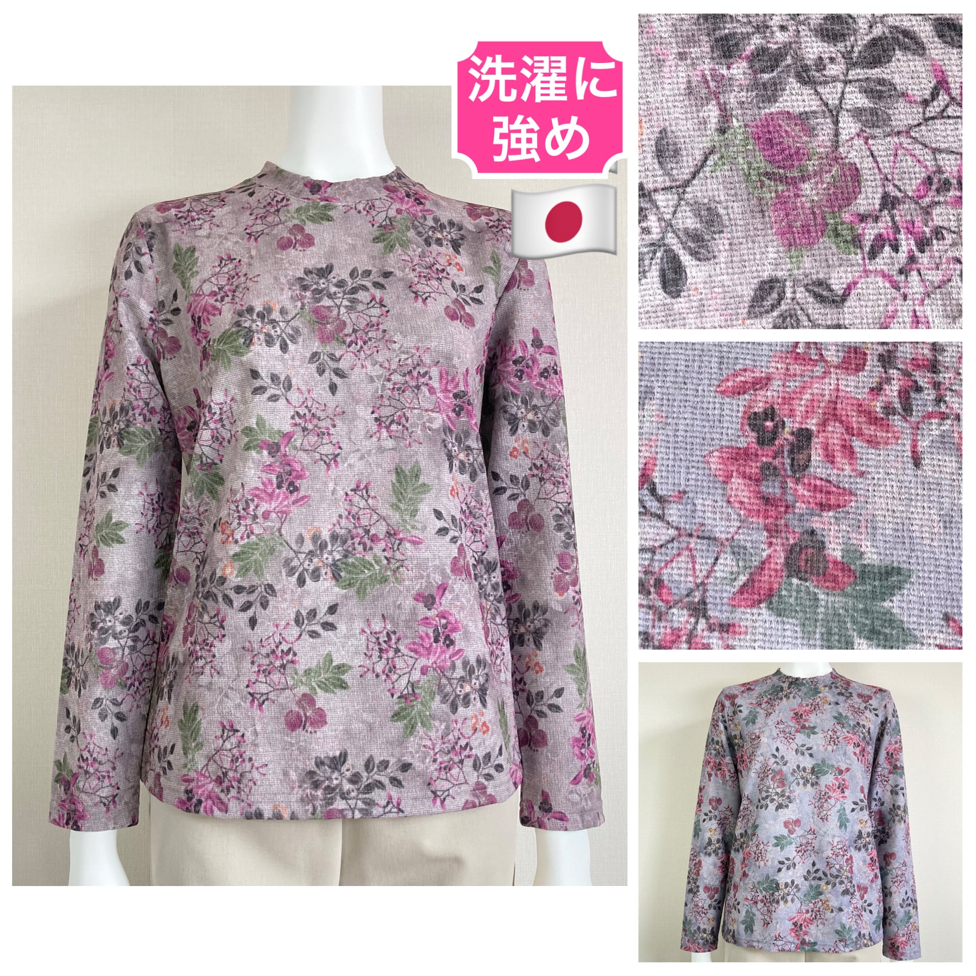 【新生活応援SALE】洗濯に強め☆シックな色合いの小花柄カットソー/日本製/70代・80代・90代ギフト/Sサイズ小さめ高齢者服シニアファッション