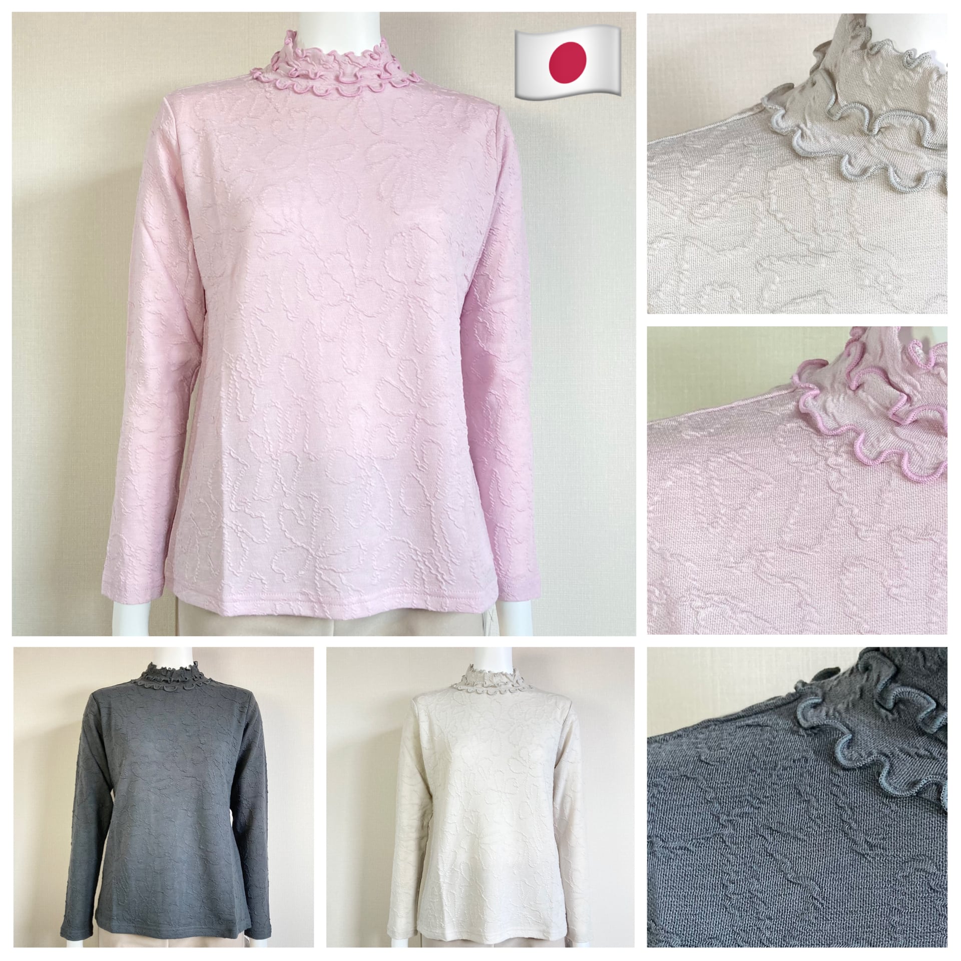 【新生活応援SALE】よく見るとうっすらお花柄の入った無地風カットソー/70代・80代・90代ギフト/シニアファッション/Sサイズ/小さいサイズ/日本製高齢者服