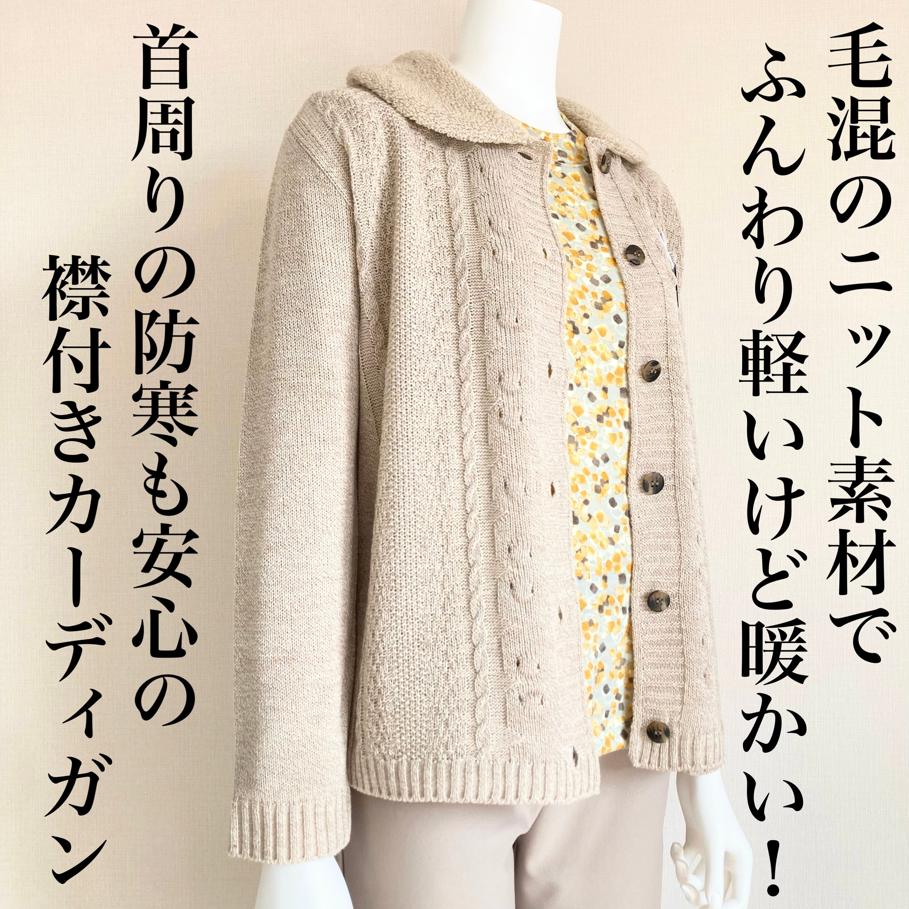 襟付きで首元が暖かい!ちょっとした外出にジャケット代わりとしても使えるカーディガン