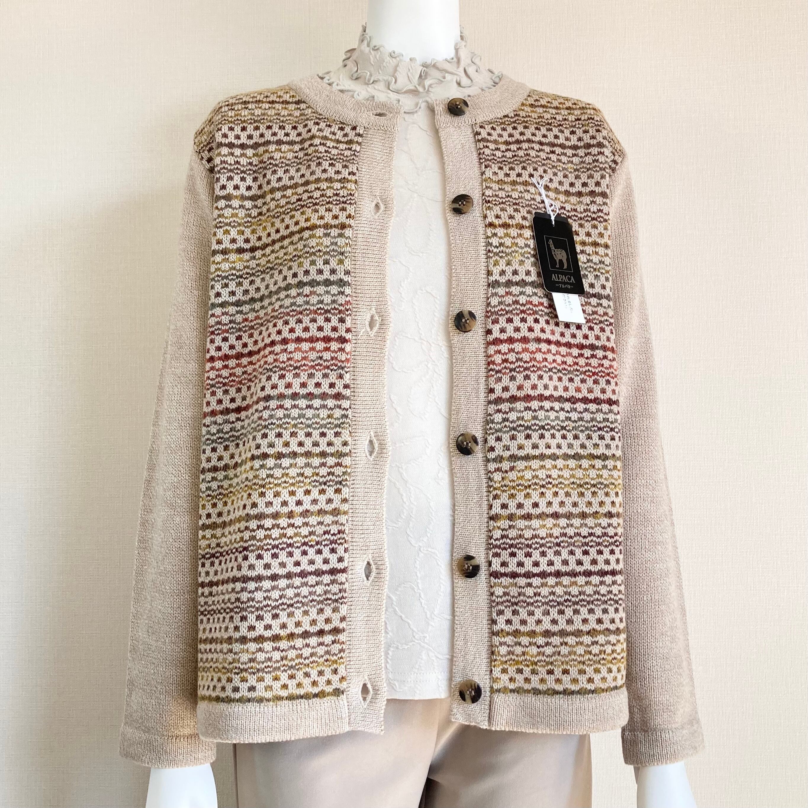 【冬物】ドット柄がオシャレなウールとアルパカの暖かいカーディガン/70代・80代・90代ギフト/日本製/小さめ高齢者服シニアファッション