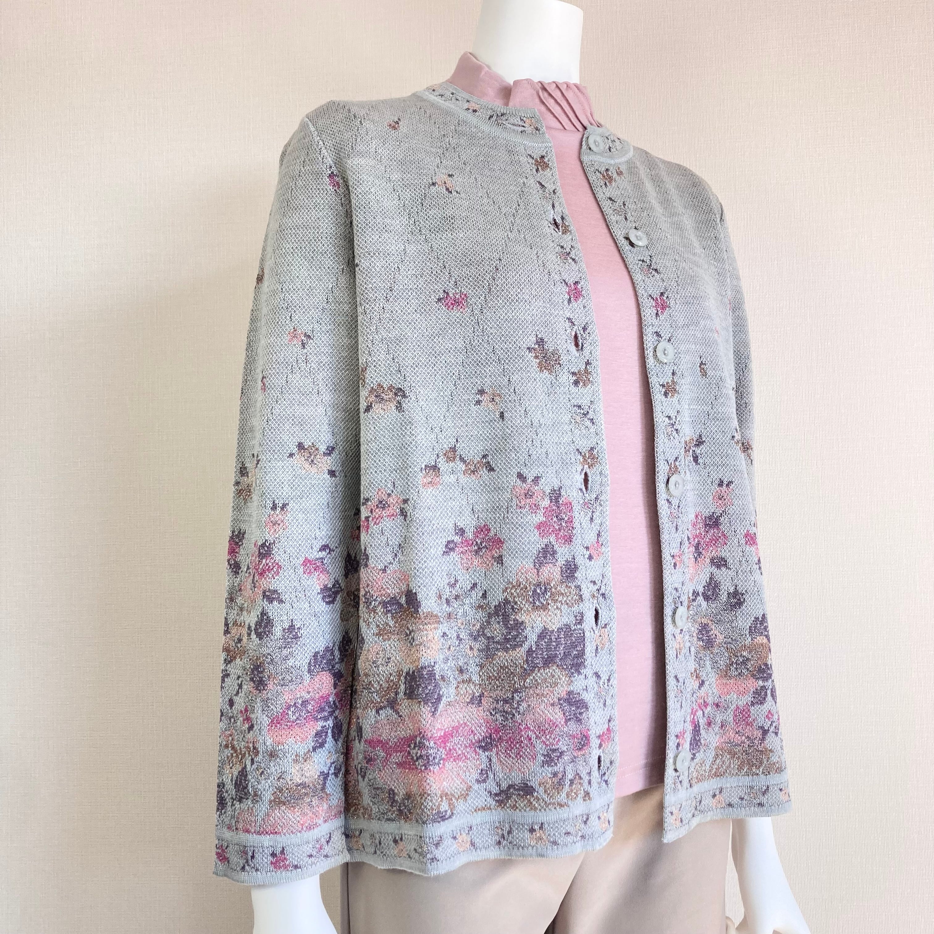 【アンサンブルにも】プレゼントに!美しすぎる花柄グラデーションカーディガン/70代・80代・90代ギフトSサイズ/日本製/小さめ高齢者服シニアファッション
