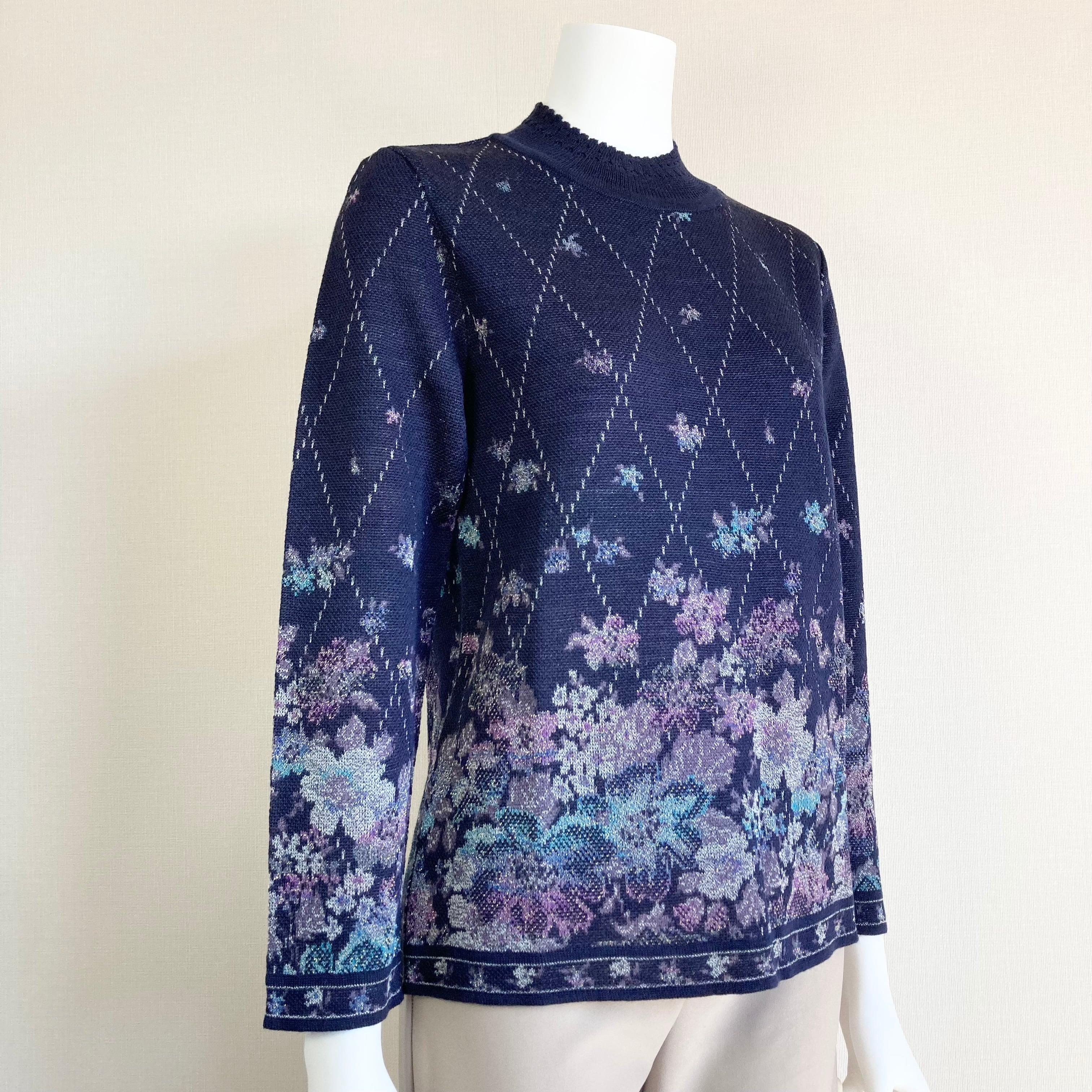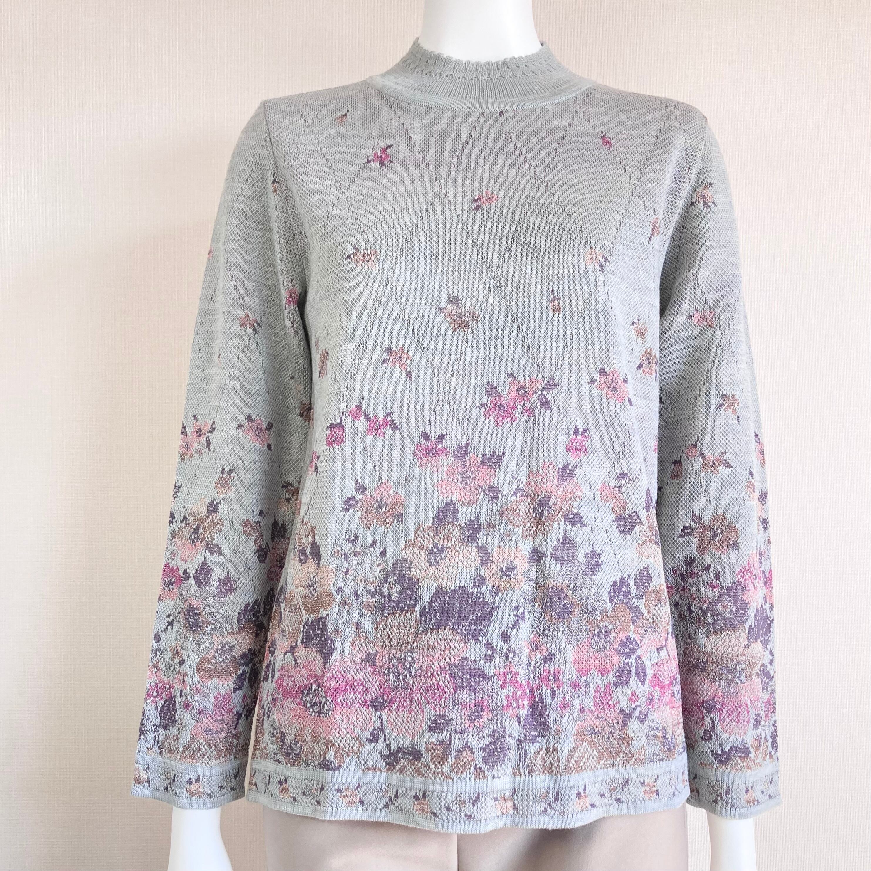 【アンサンブルにも】プレゼントに!美しすぎる花柄グラデーションセーター/70代・80代・90代ギフトSサイズ/日本製/小さめ高齢者服シニアファッション