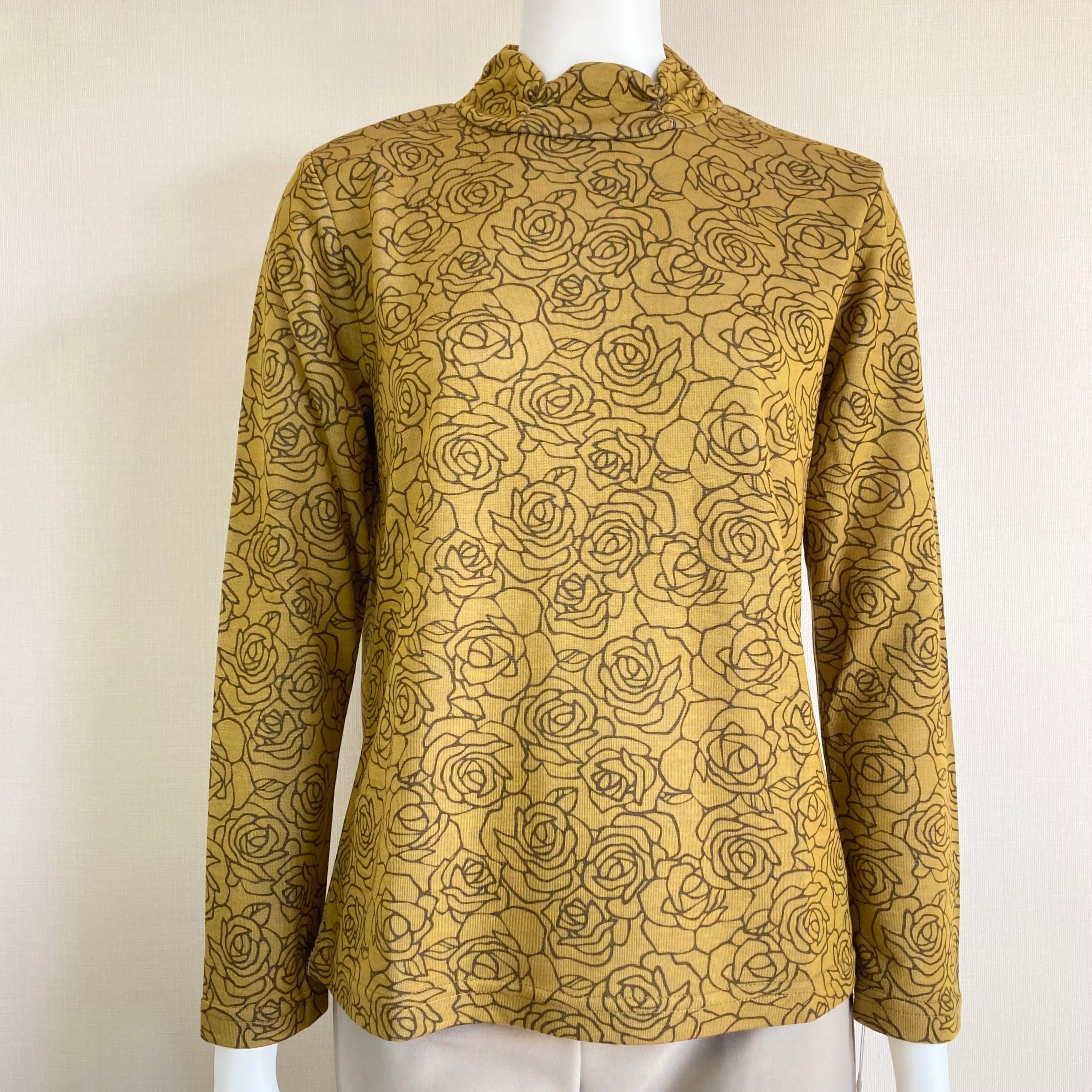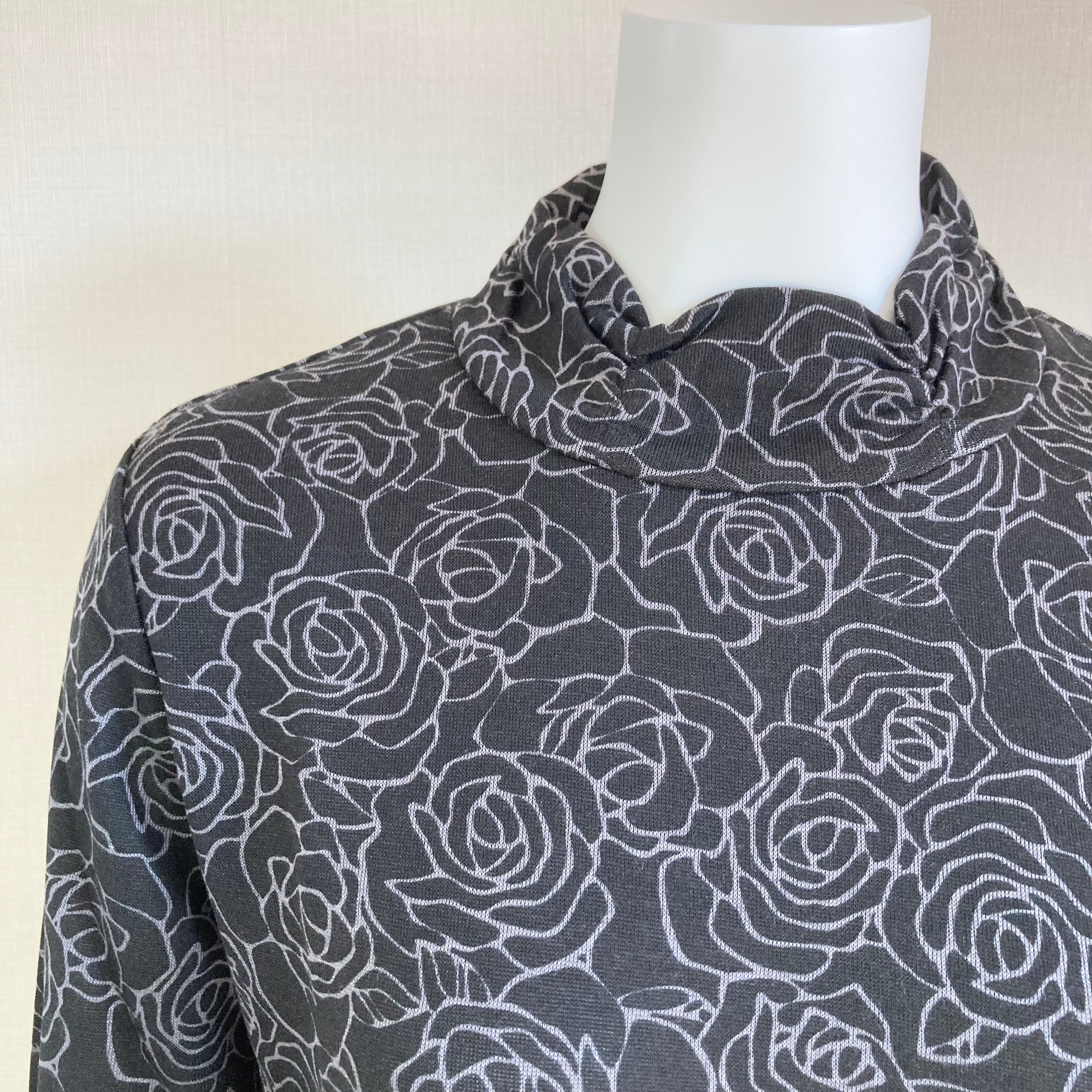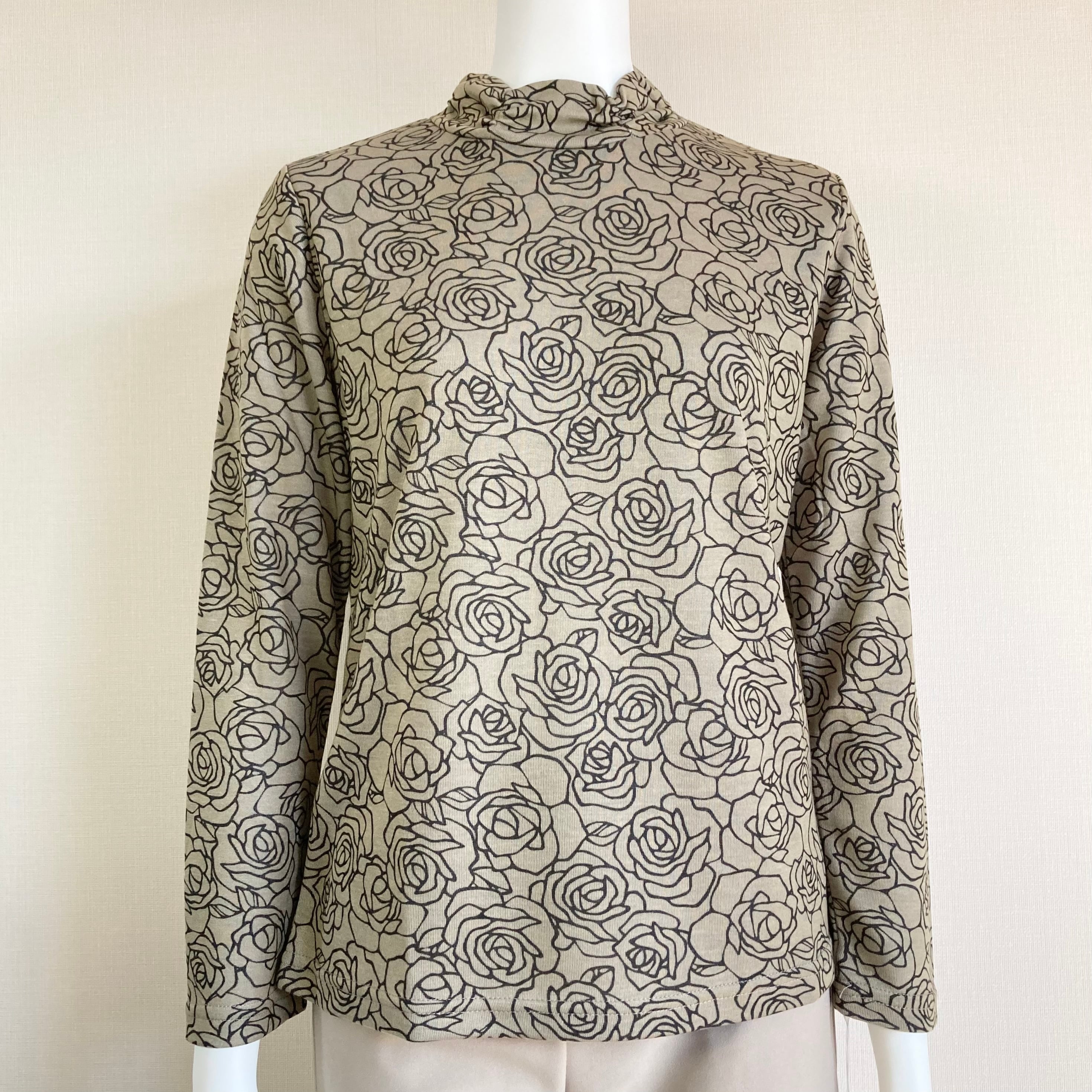 【長袖】バラ柄がエレガントなギャザーハイネックカットソー/70代・80代・90代ギフト/シニアファッション/Sサイズ/小さいサイズ/日本製高齢者服