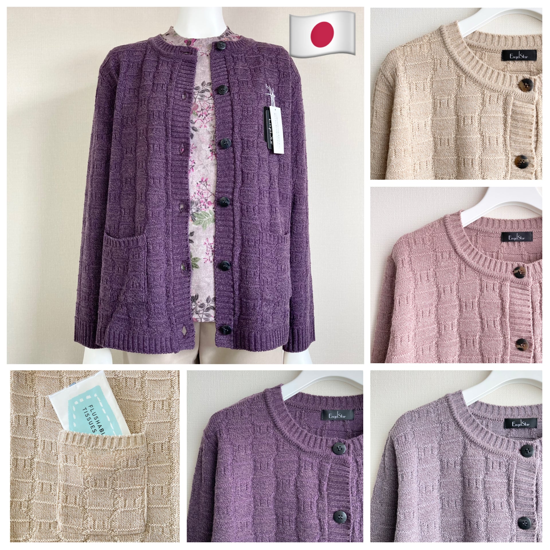 「老人ホームの食堂などの共有スペースで使うのに羽織りものが欲しい」といったご要望も多く、軽くて暖かいカーディガンは何枚あっても嬉しいアイテムです。