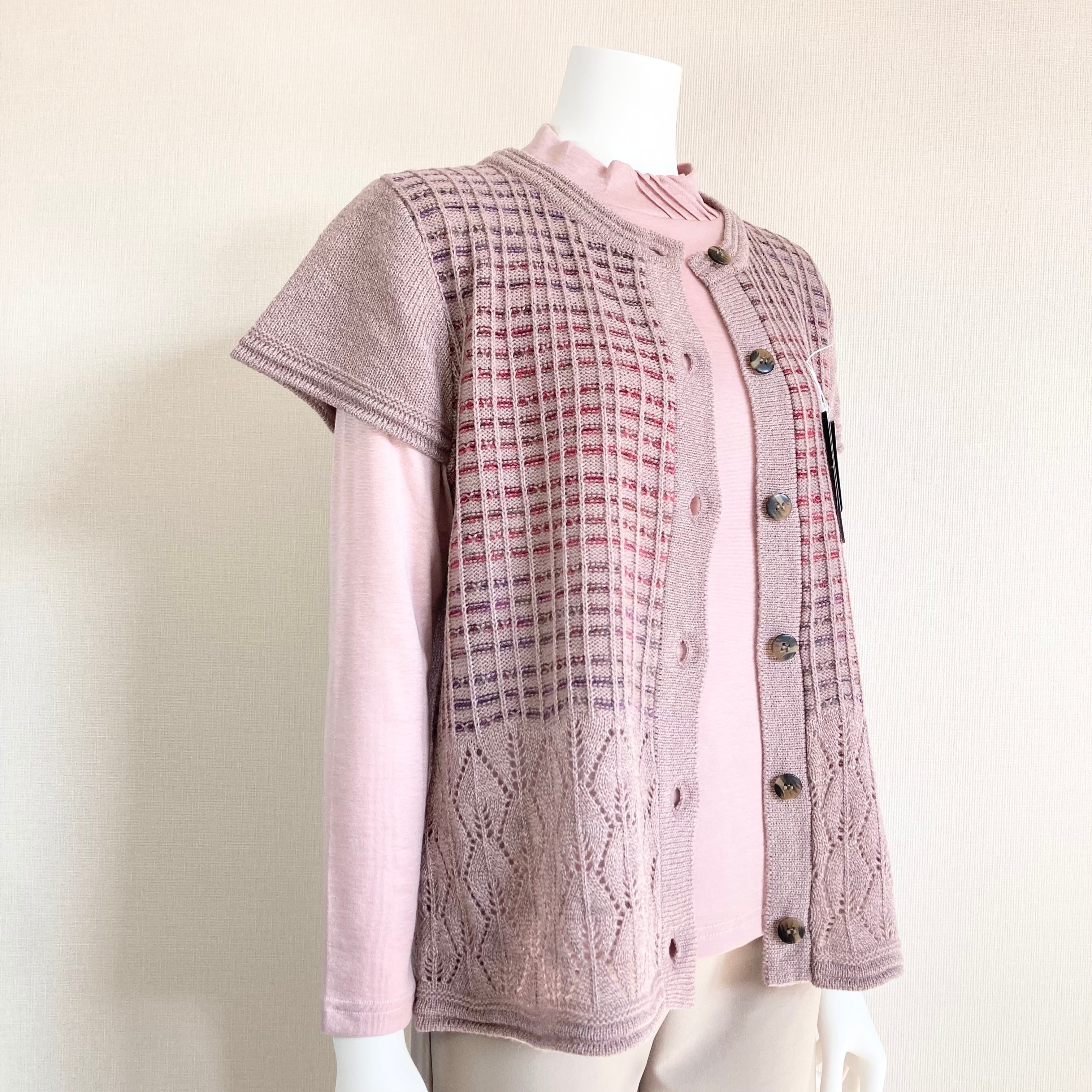 細かいチェック柄と裾の透かし編みが上品♪体温調整や体型カバーに年中使える、暖かいニットベスト
