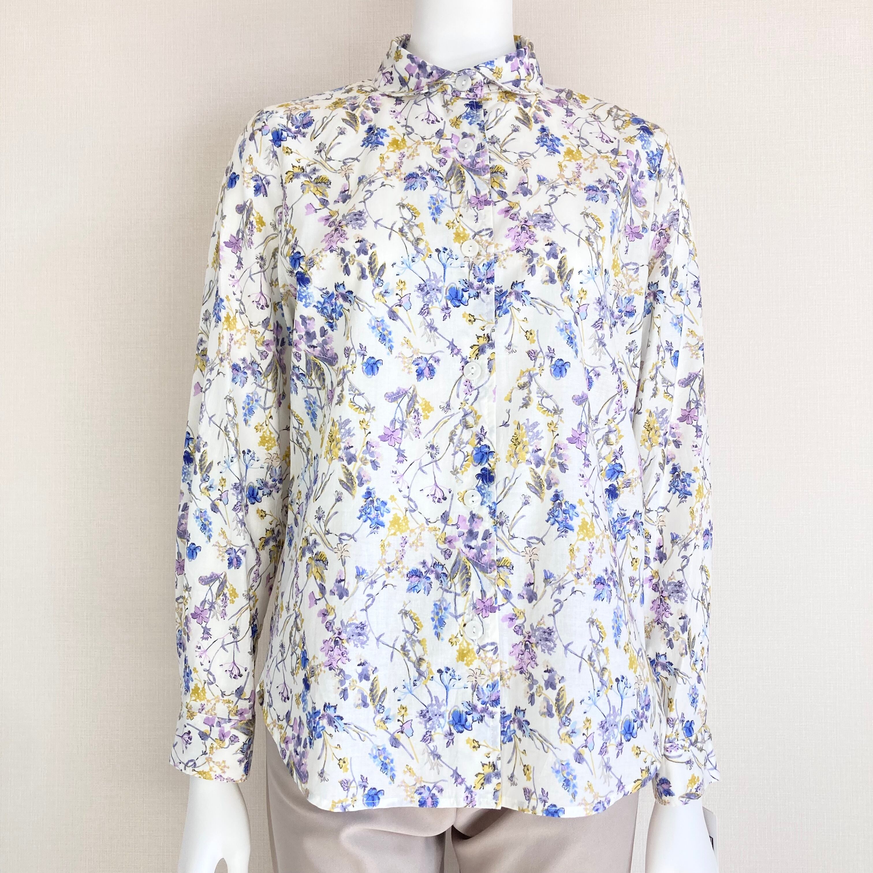 【秋物新作】長袖☆スタンダードな形で使いやすい小花柄シャツブラウス/日本製/70代・80代・90代ギフト/シニアファッション/Sサイズ/小さいサイズ/高齢者服