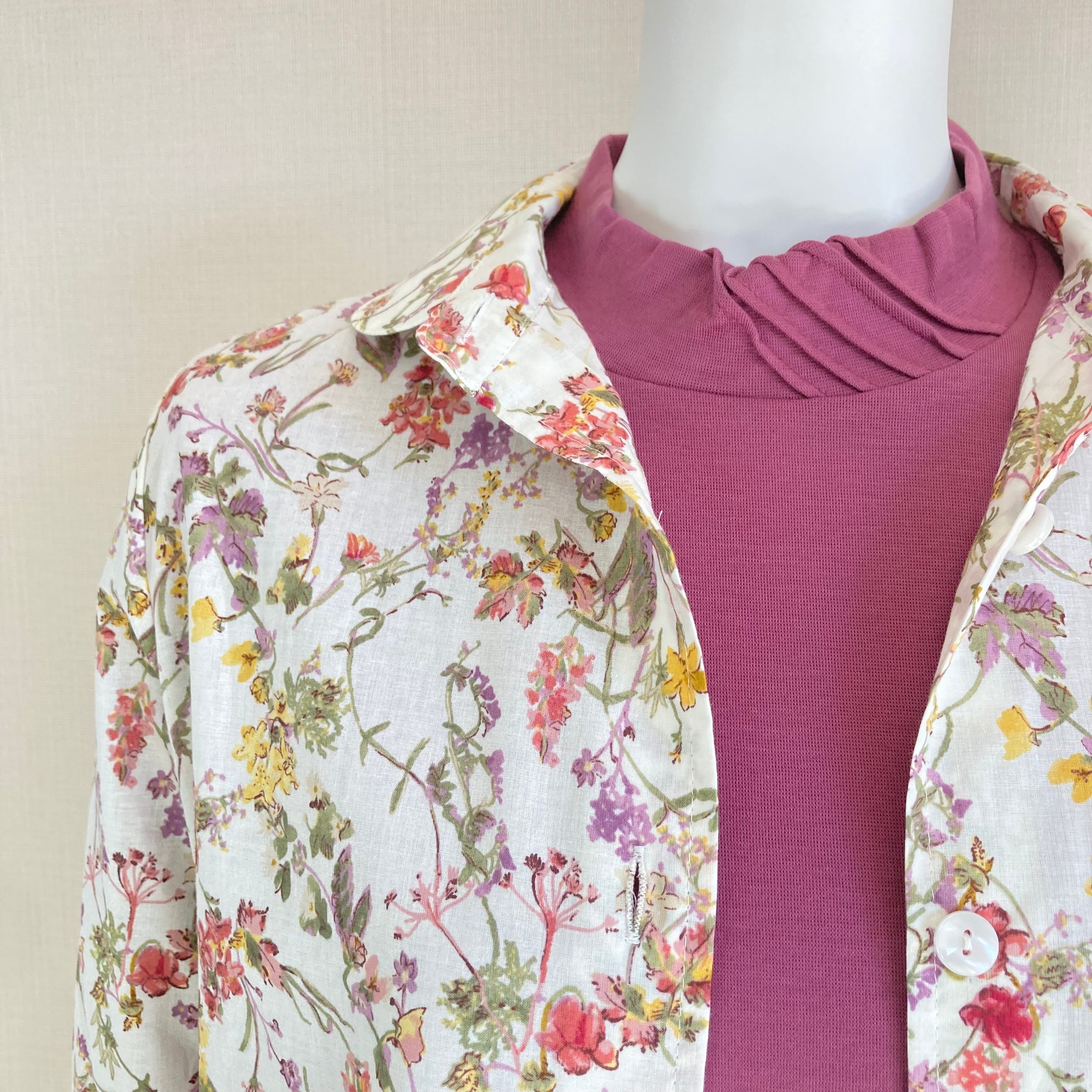 小柄なご高齢の方に人気の小花柄。これ1枚でも、重ね着しても、色々と使えるスタンダードな形のブラウス