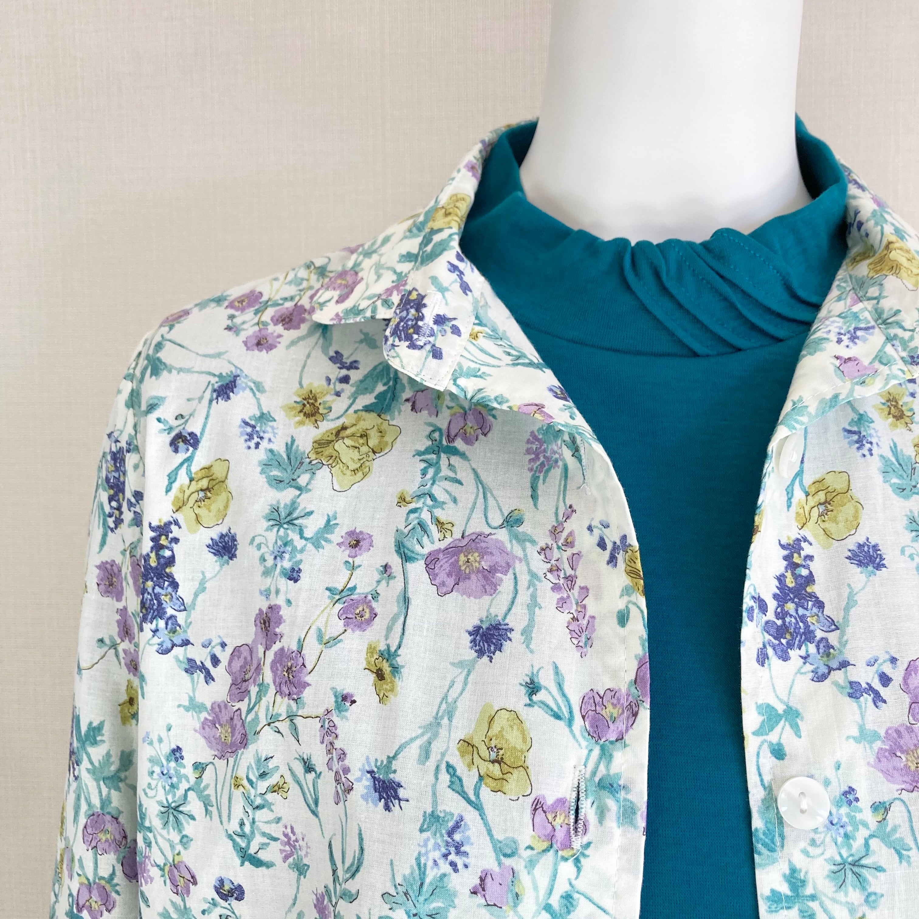小柄なご高齢の方に人気の小花柄。これ1枚でも、重ね着しても、色々と使えるスタンダードな形のブラウス
