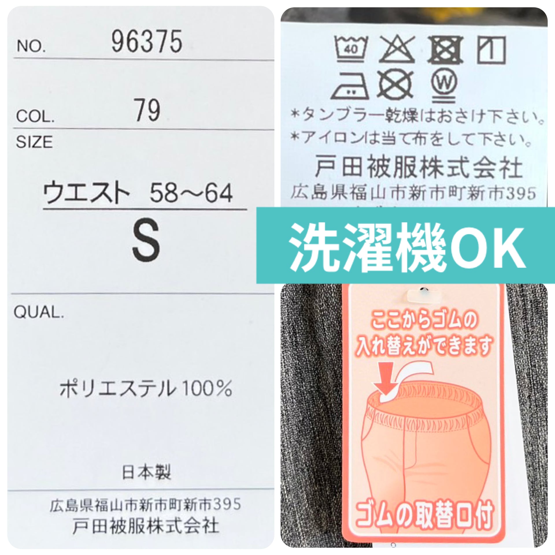 ウエスト 58cm〜64cm(ゴムタイプ)