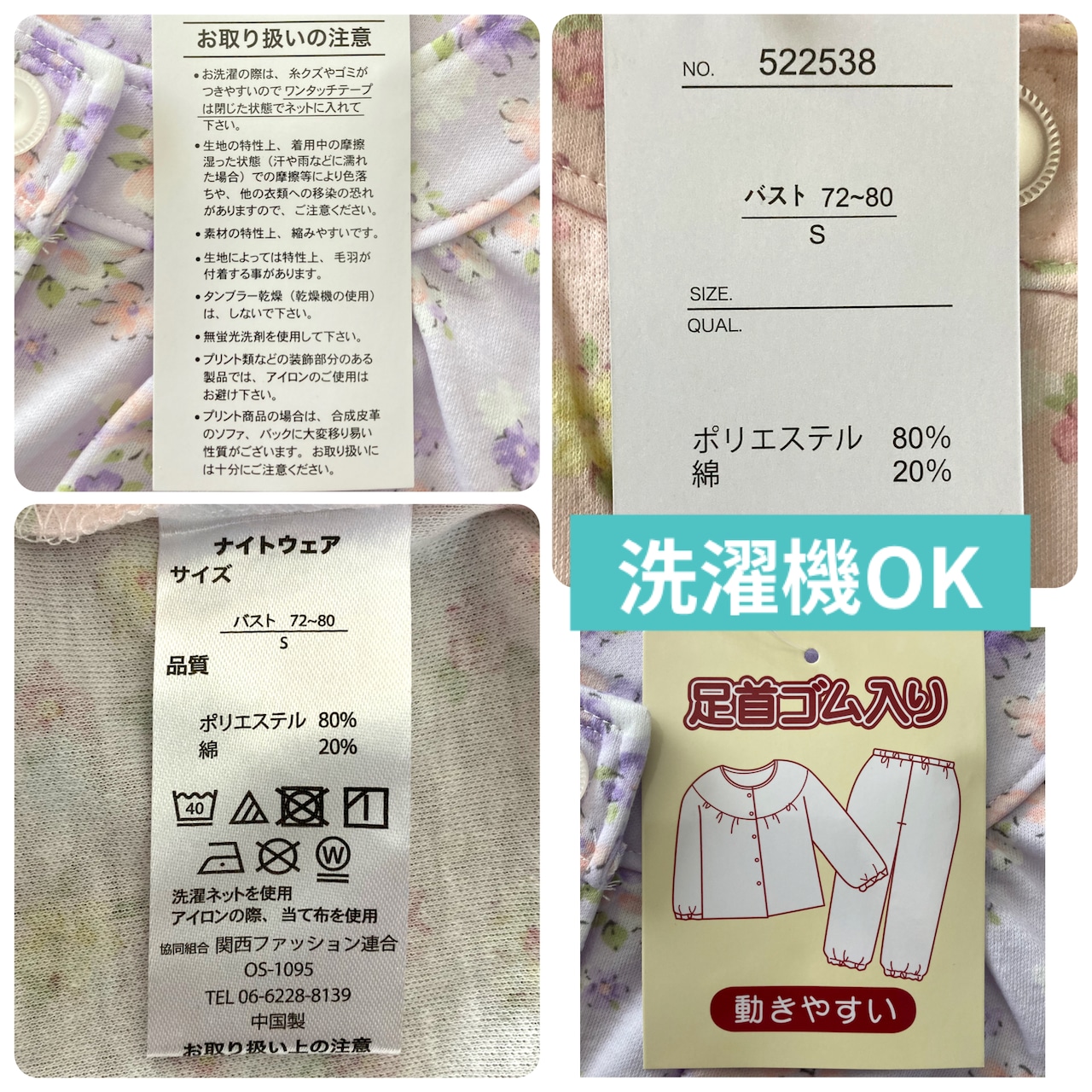 【初のパジャマ登場】洗濯機OK!秋と春用☆綿とポリエステル混合で扱いやすいお花柄のナイトウェア/70代・80代・90代ギフト/シニアファッション/Sサイズ/小さいサイズ/高齢者服