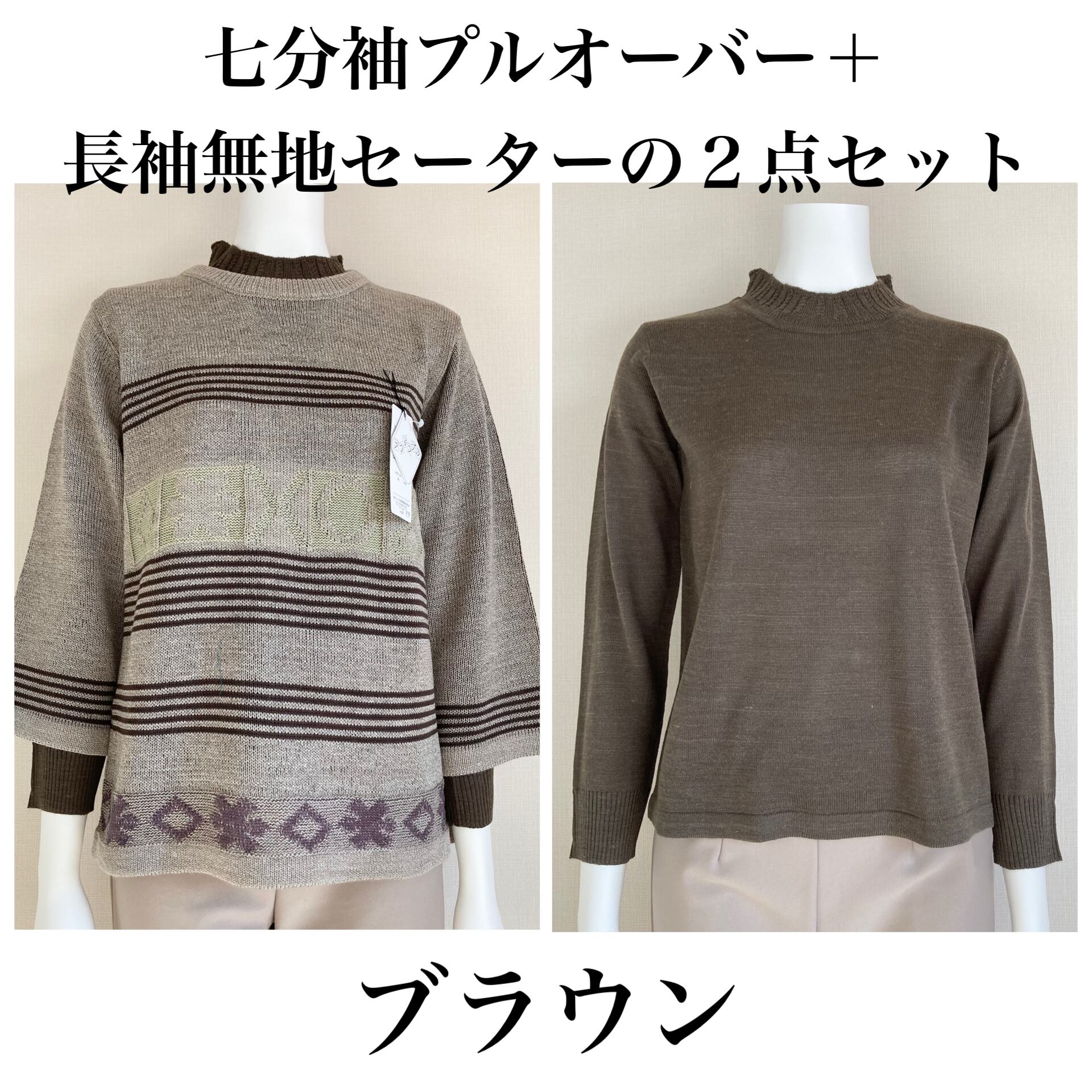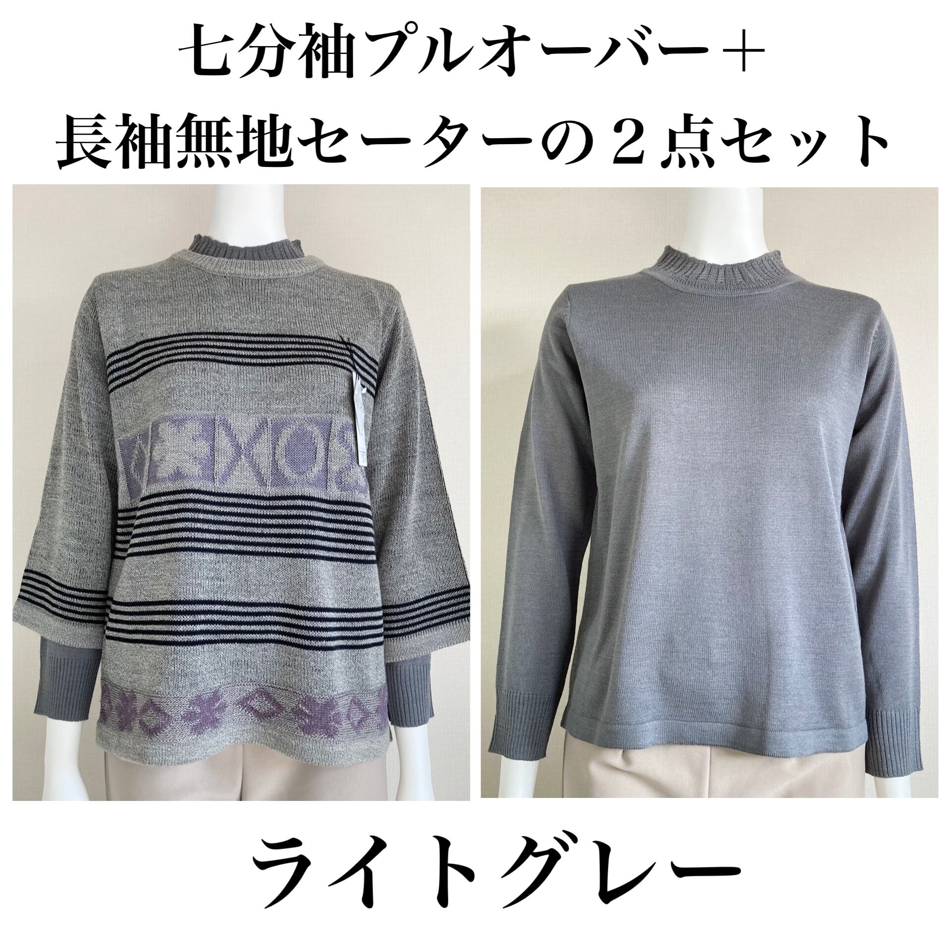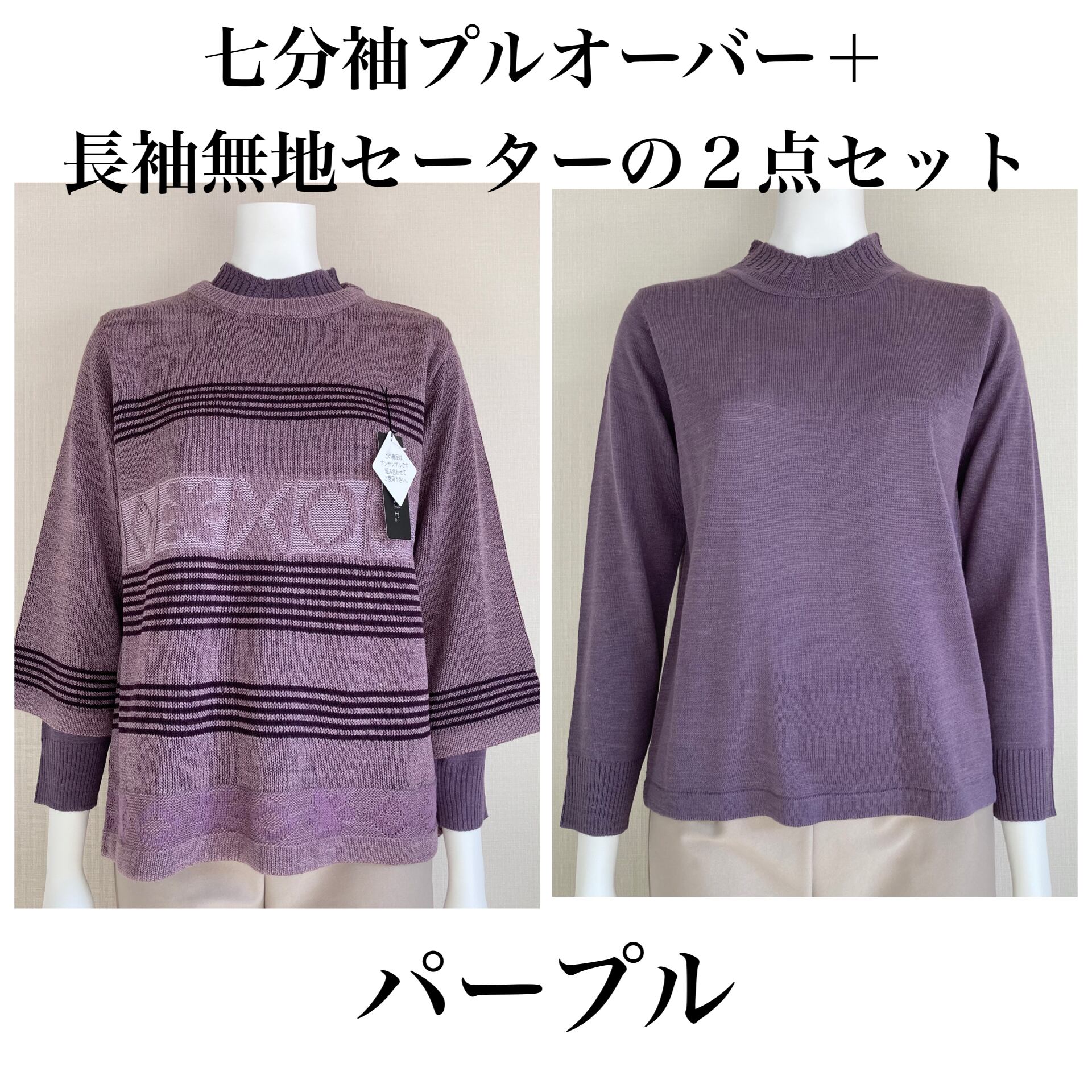 7分袖プルオーバー+長袖の無地セーター2点セット☆これだけでオシャレが決まりコーディネートが楽ちん♪