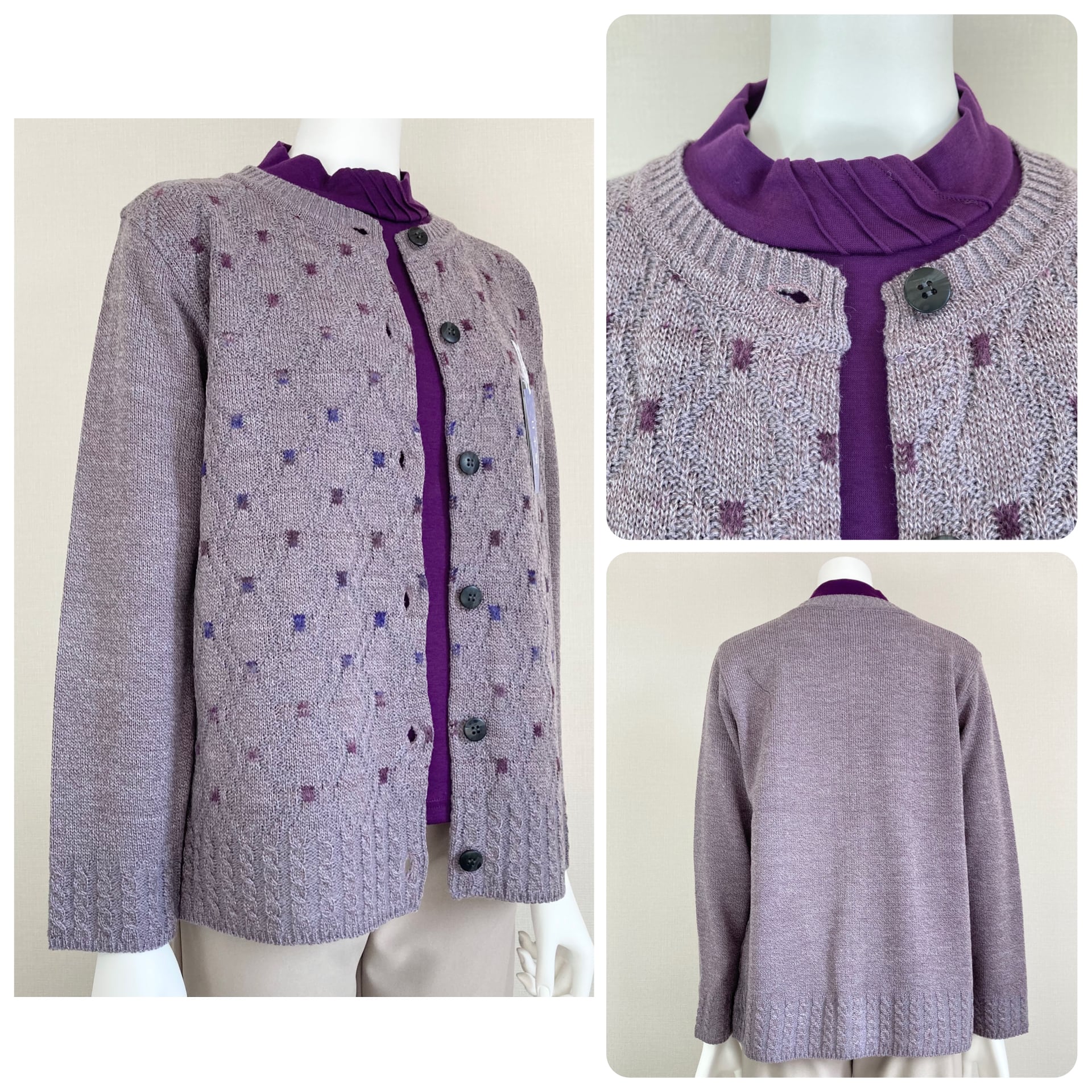 【ブラックフライデー特価!】若々しいドット柄☆ウールとアルパカの暖かいカーディガン/70代・80代・90代ギフト/日本製/小さめ高齢者服シニアファッション