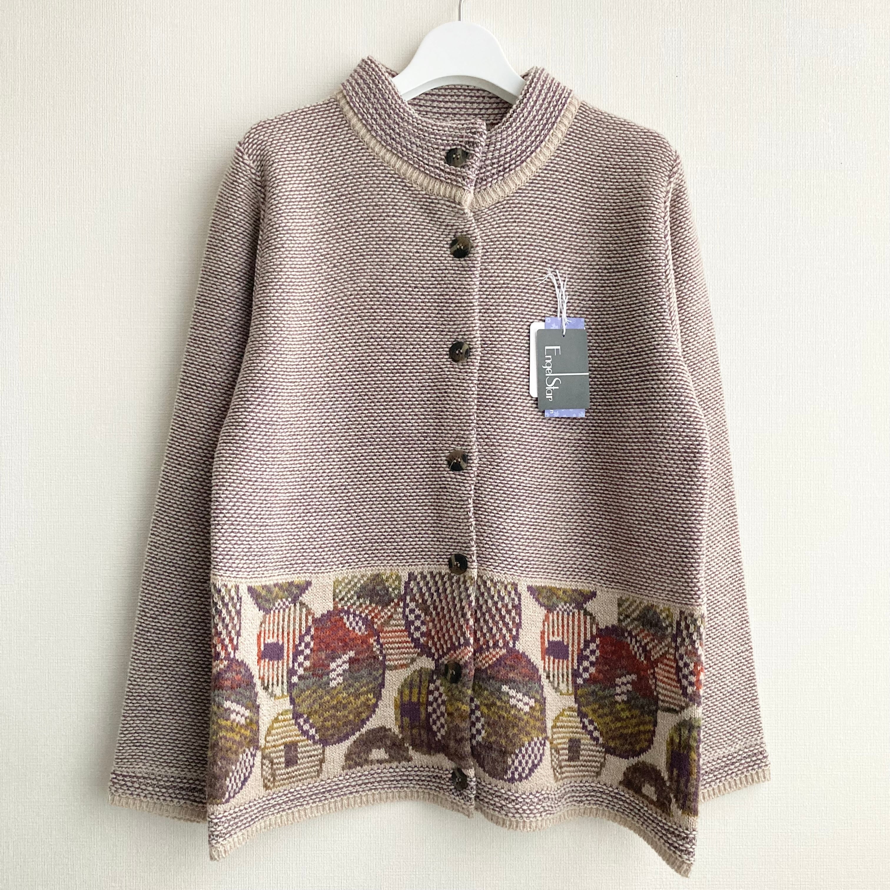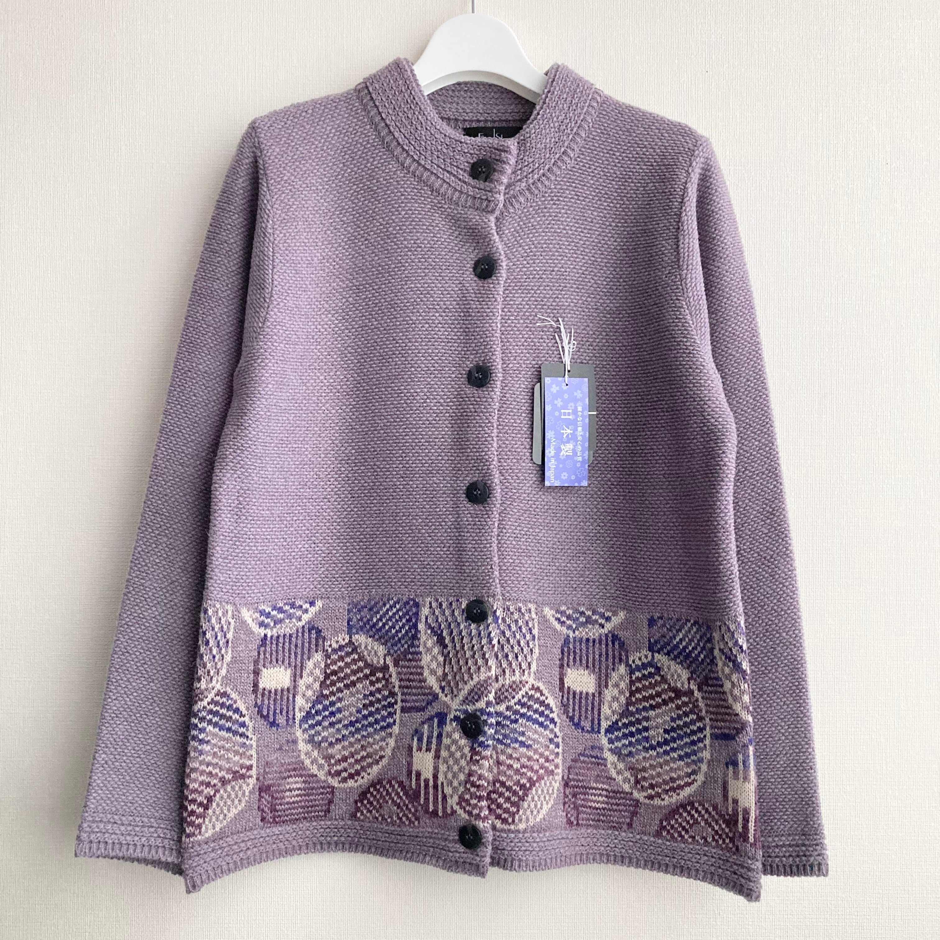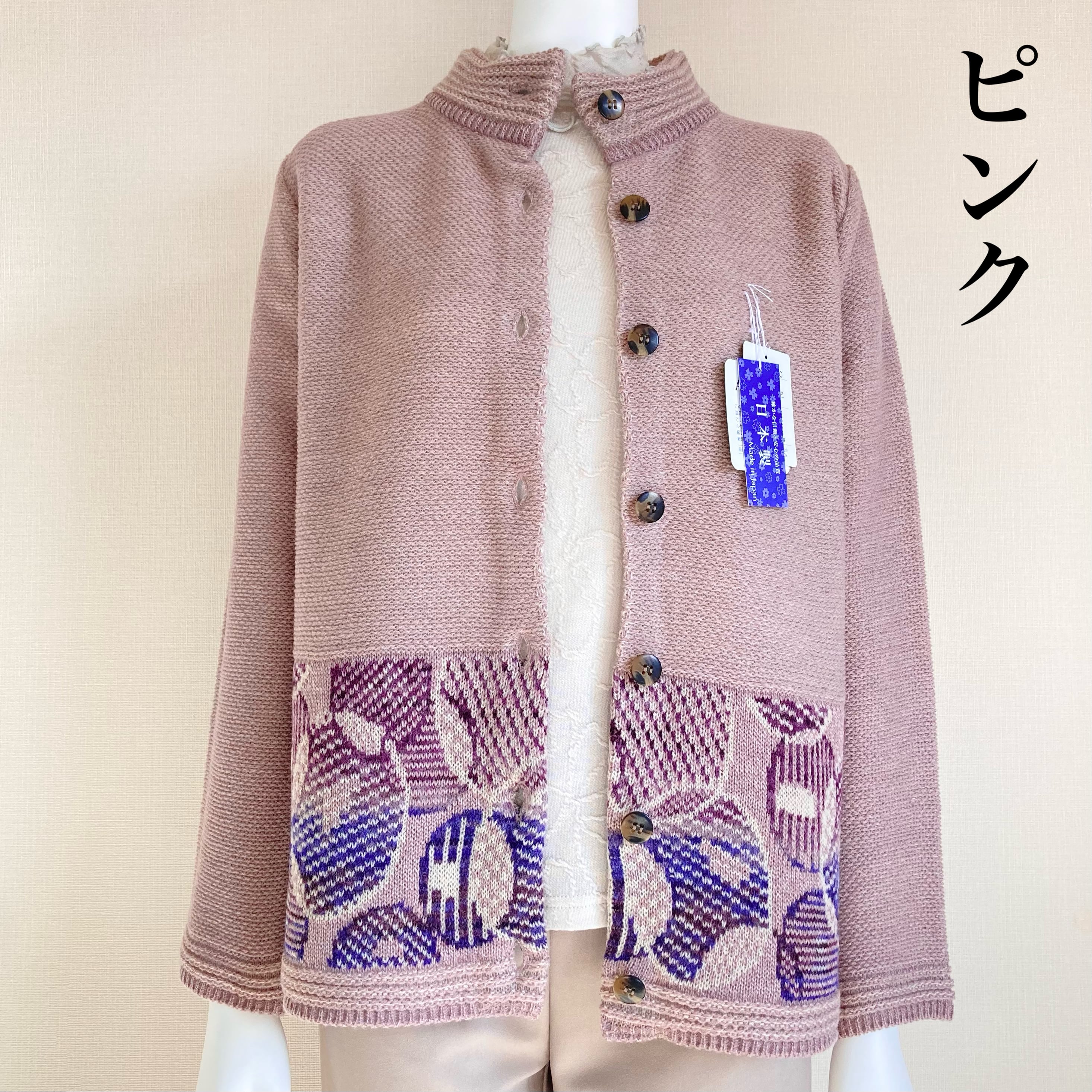 【冬物SALE】色欠けの為お買い得!裾の柄が素敵なウールとアルパカの暖かいカーディガン/70代・80代・90代ギフト/日本製/小さめ高齢者服シニアファッション