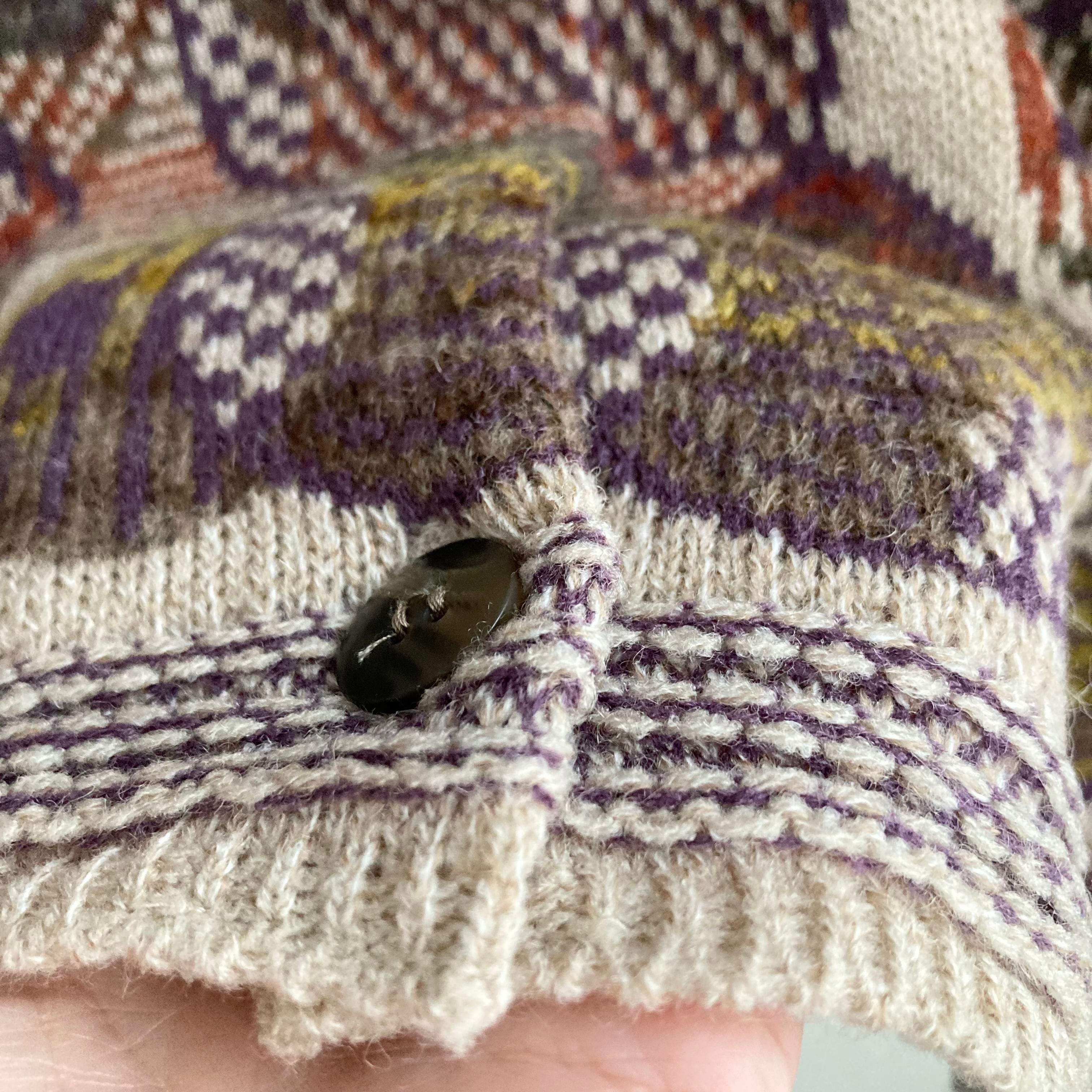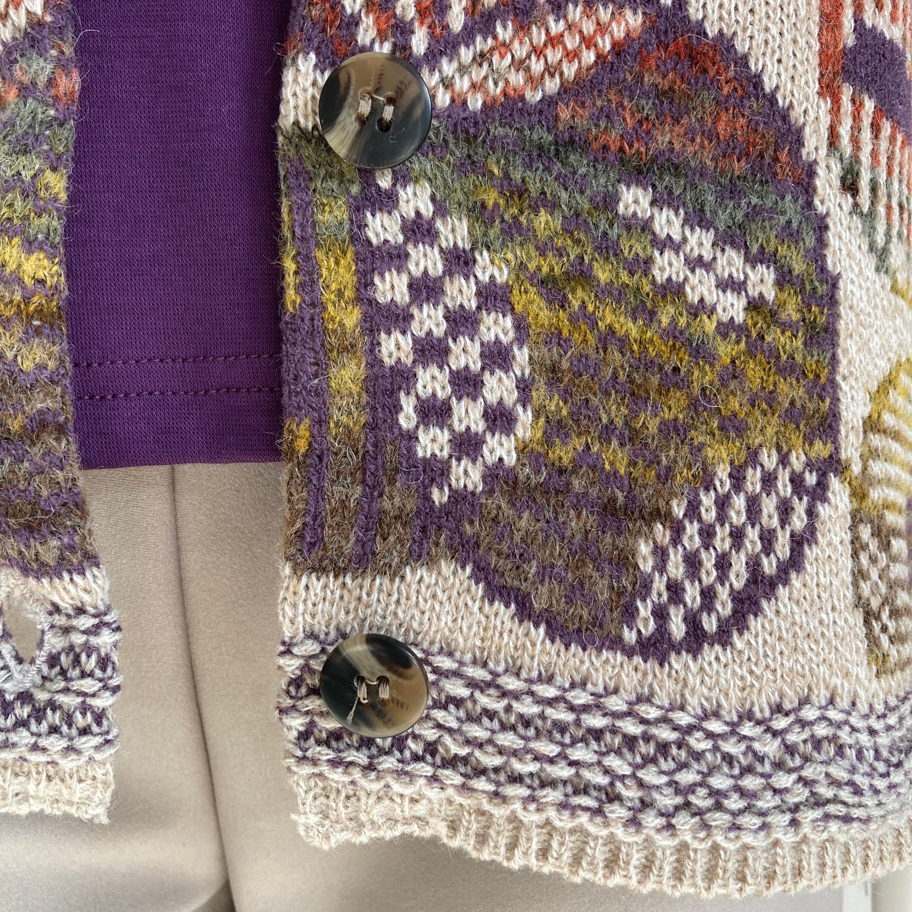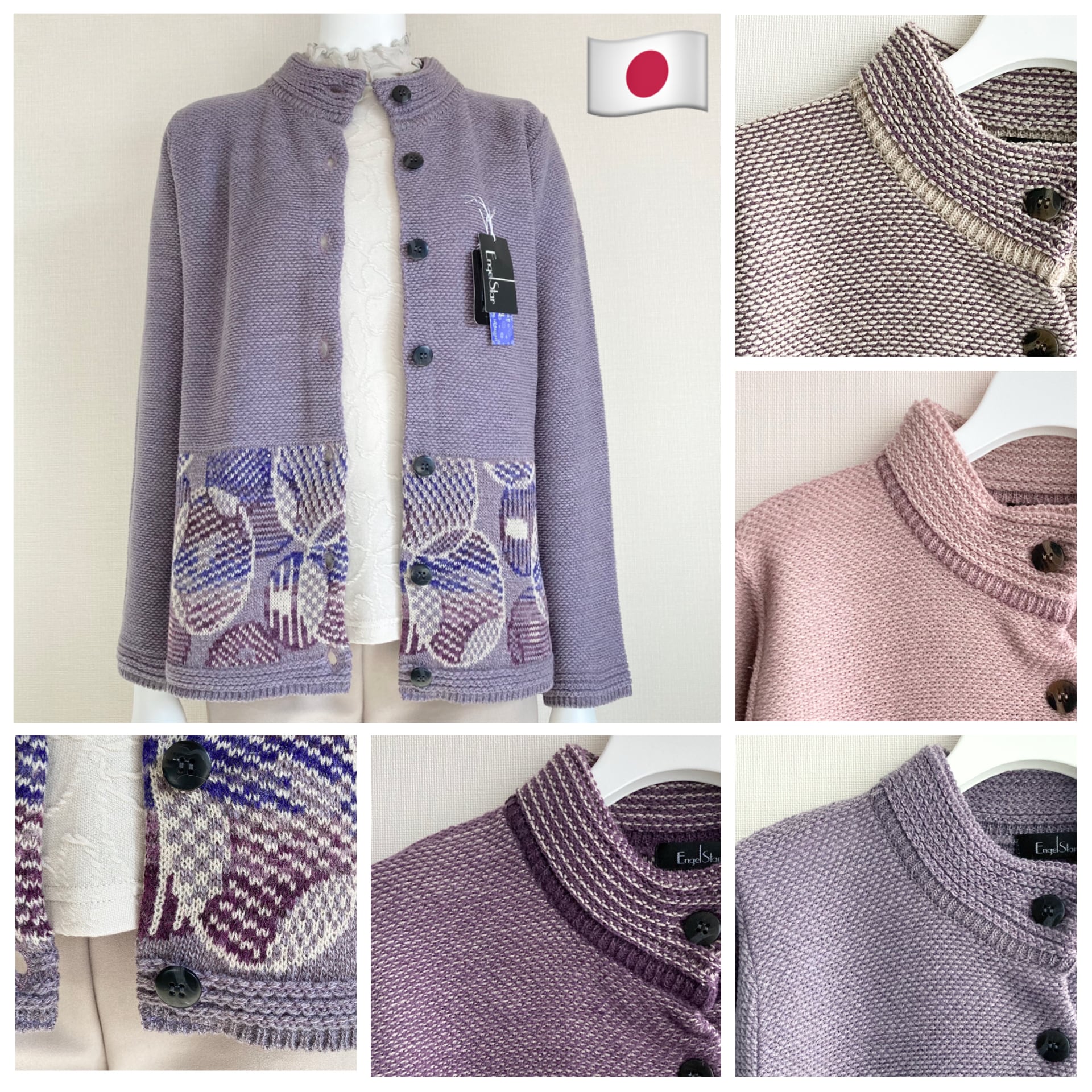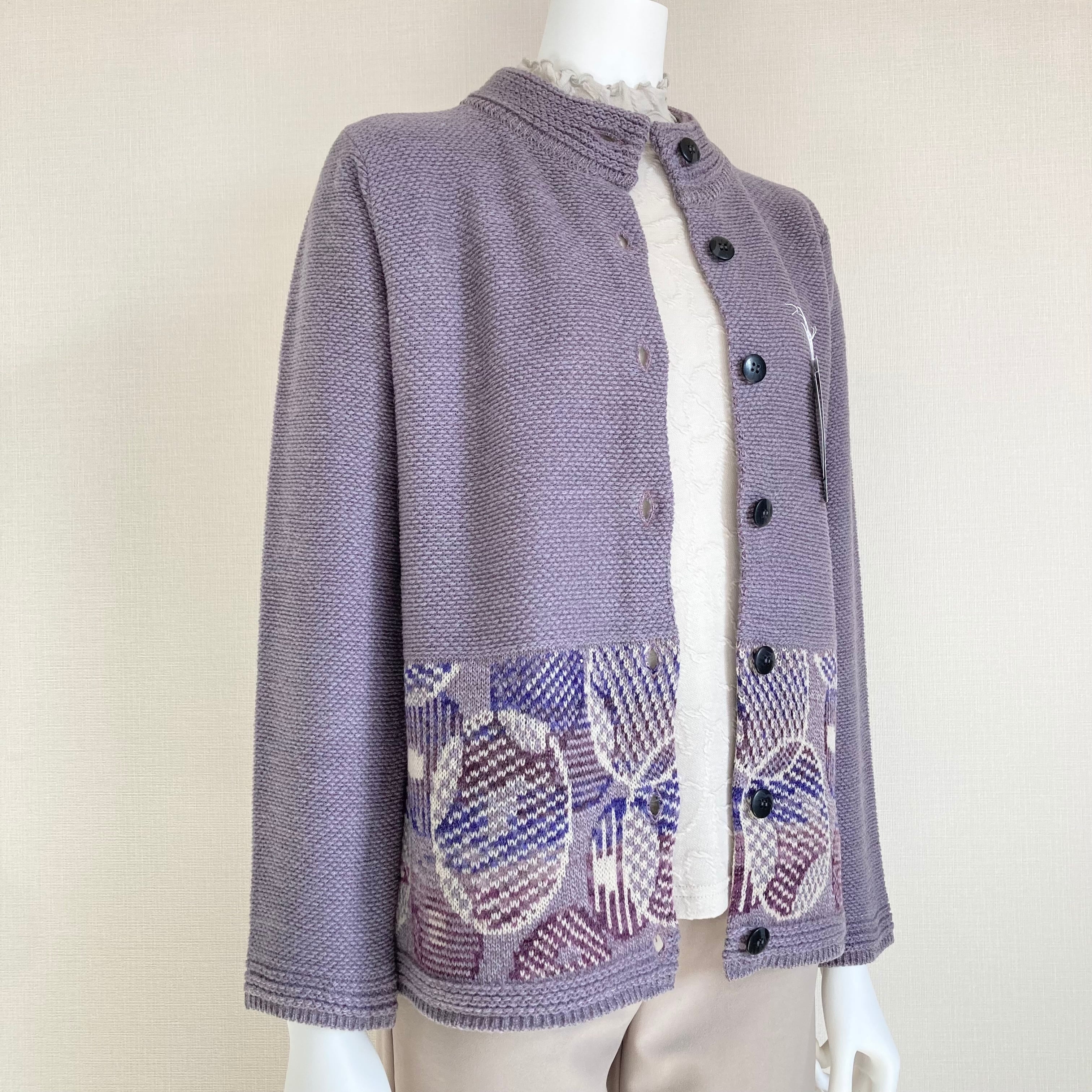 【冬物SALE】色欠けの為お買い得!裾の柄が素敵なウールとアルパカの暖かいカーディガン/70代・80代・90代ギフト/日本製/小さめ高齢者服シニアファッション