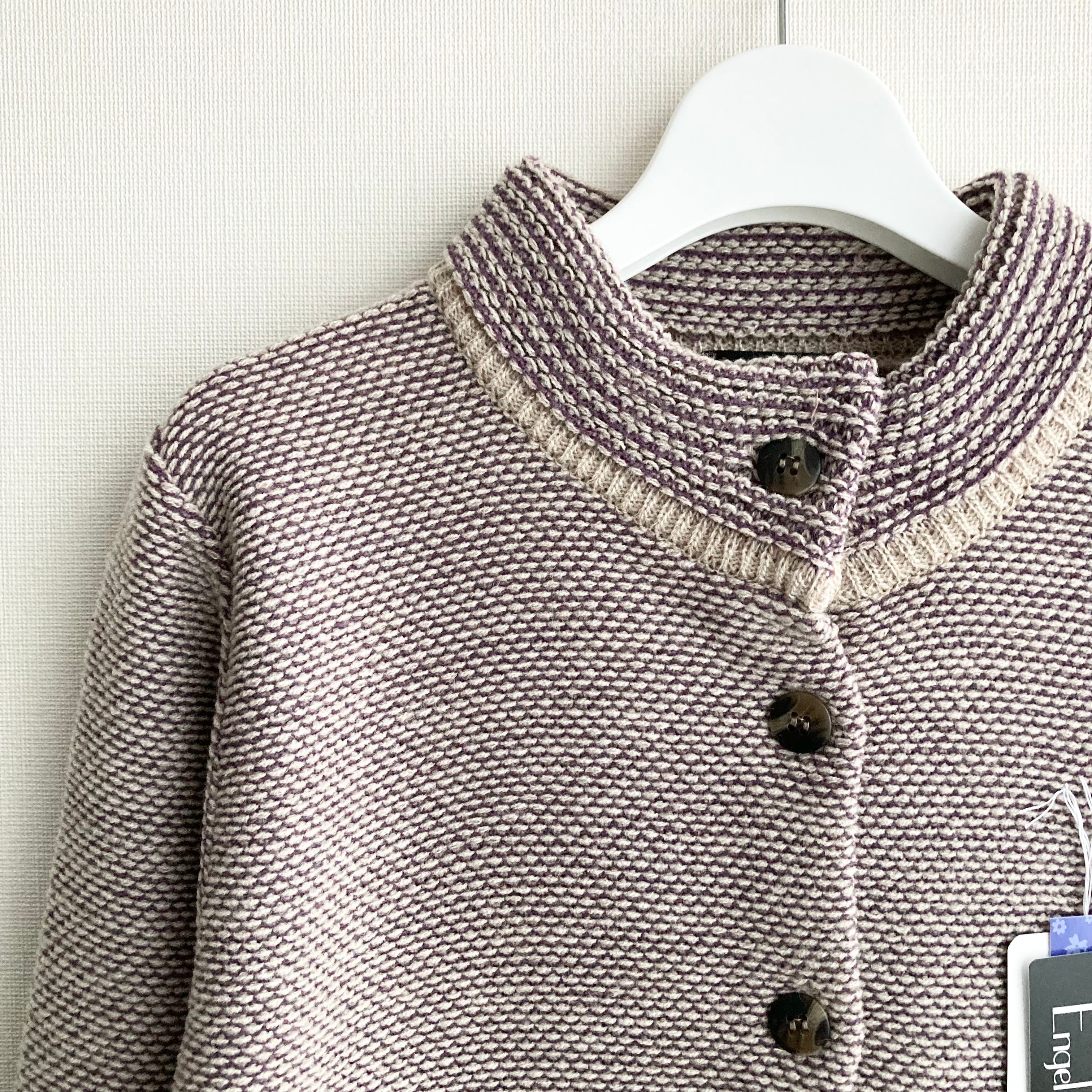 厚手&立ち襟で首元もしっかり防寒!裾のMIXカラーの柄がとっても上品な冬物カーディガンが登場です