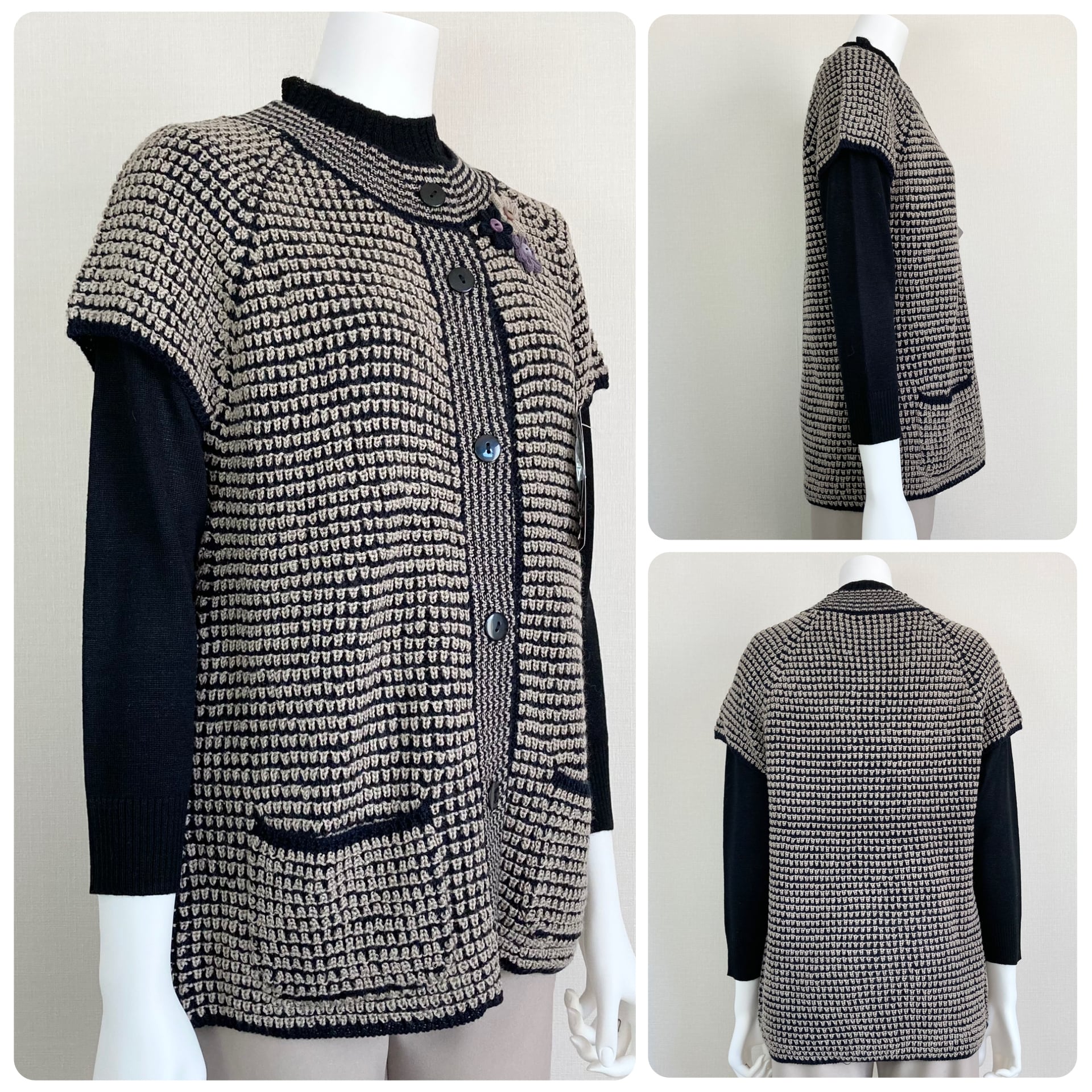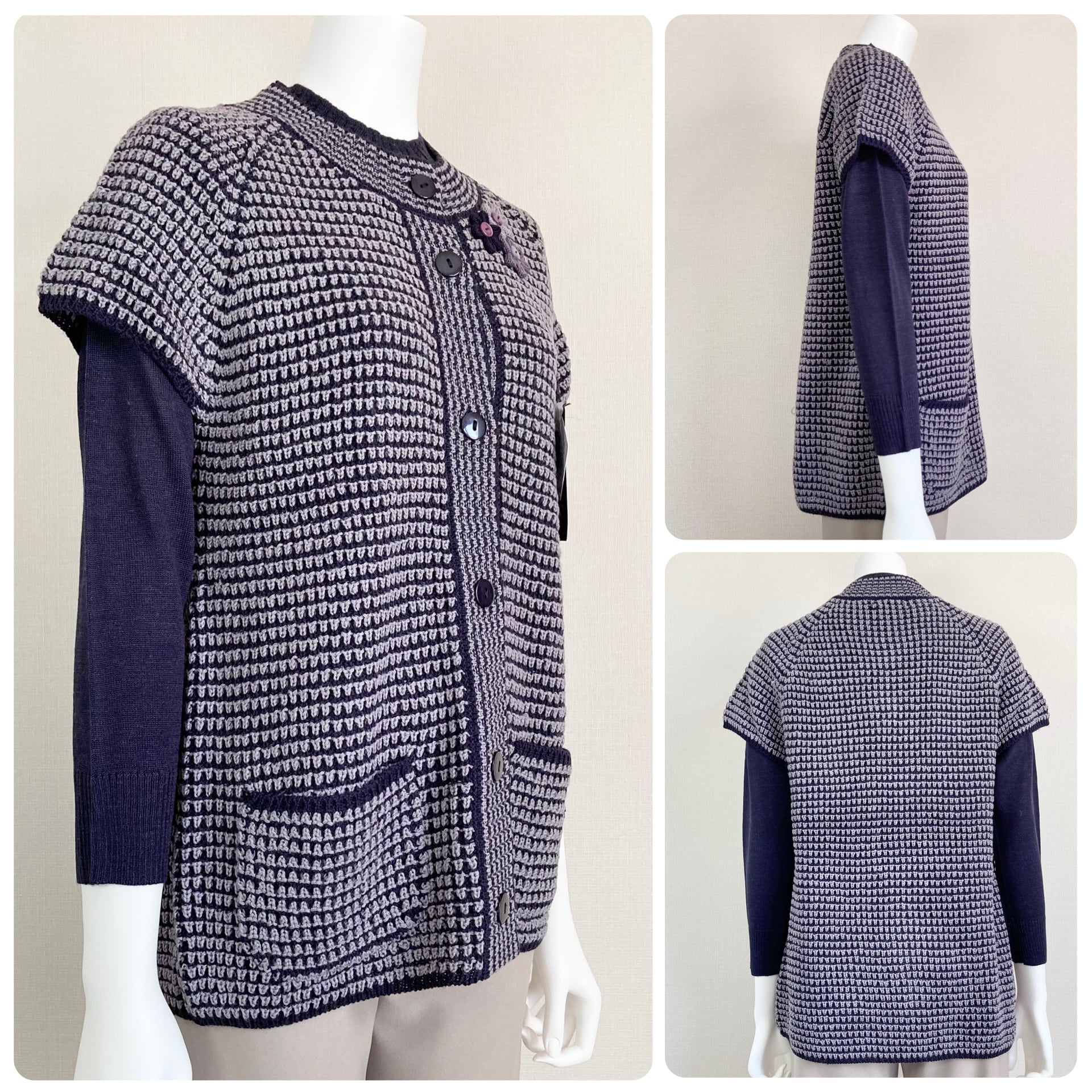 ・前ボタン開きの、ウール混半袖ベスト