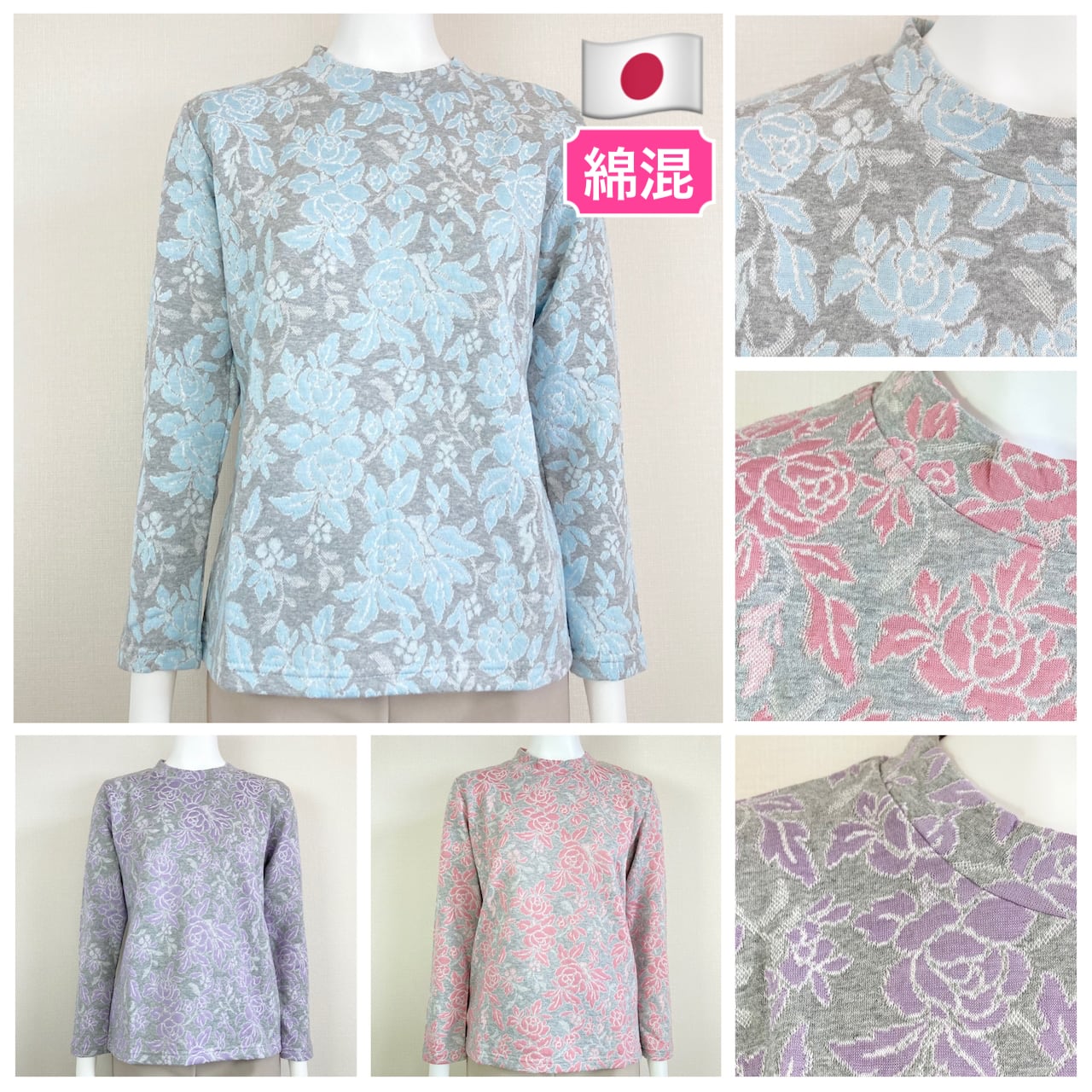 【長袖】貴重な綿混の長袖!しっかり厚みもあり暖かい花柄カットソー/70代・80代・90代ギフト/シニアファッション/Sサイズ/小さいサイズ/高齢者服