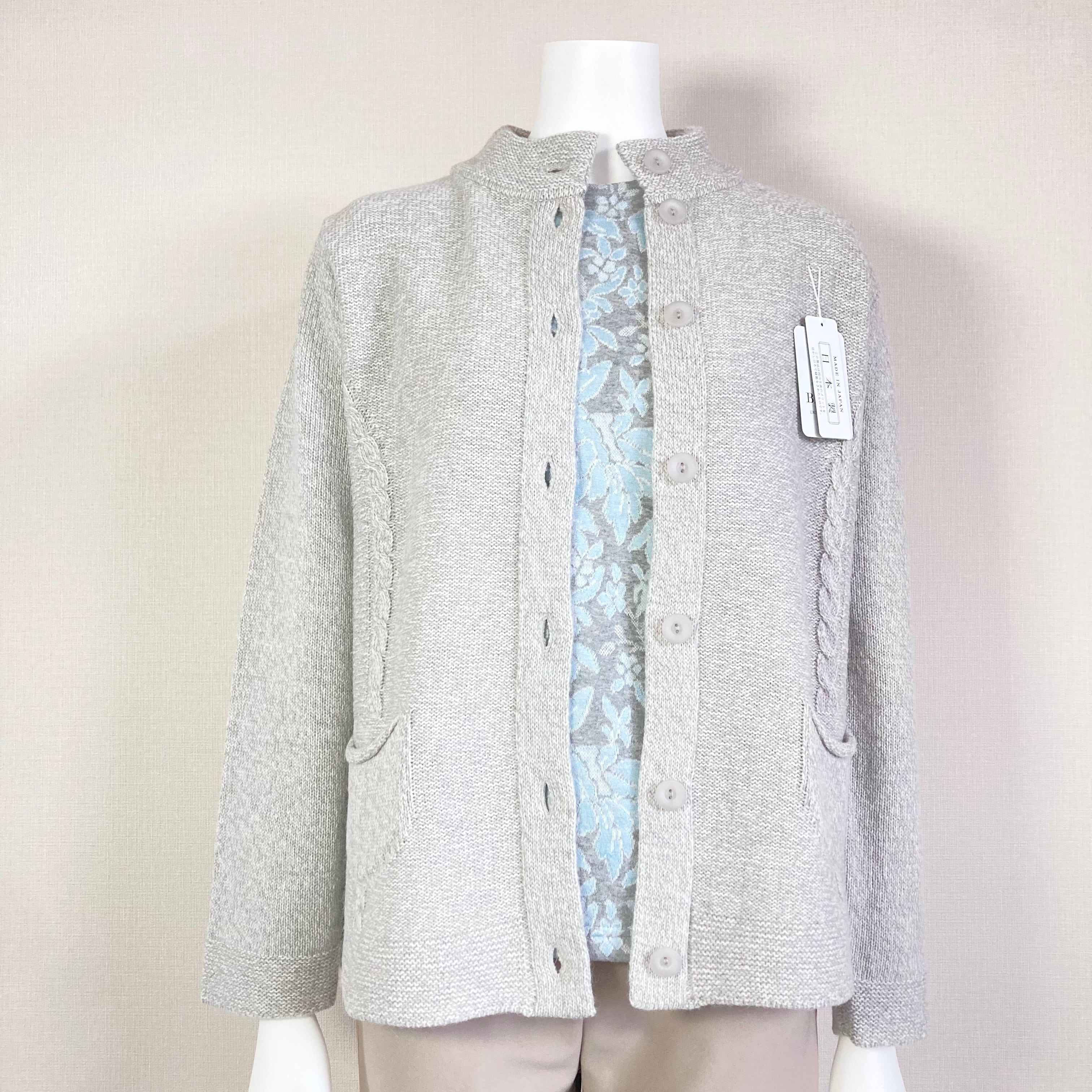 グレー色がベースとなった優しい色合いのお花柄なので、カーディガンやベストなどの羽織ものにも合わせやすいです。