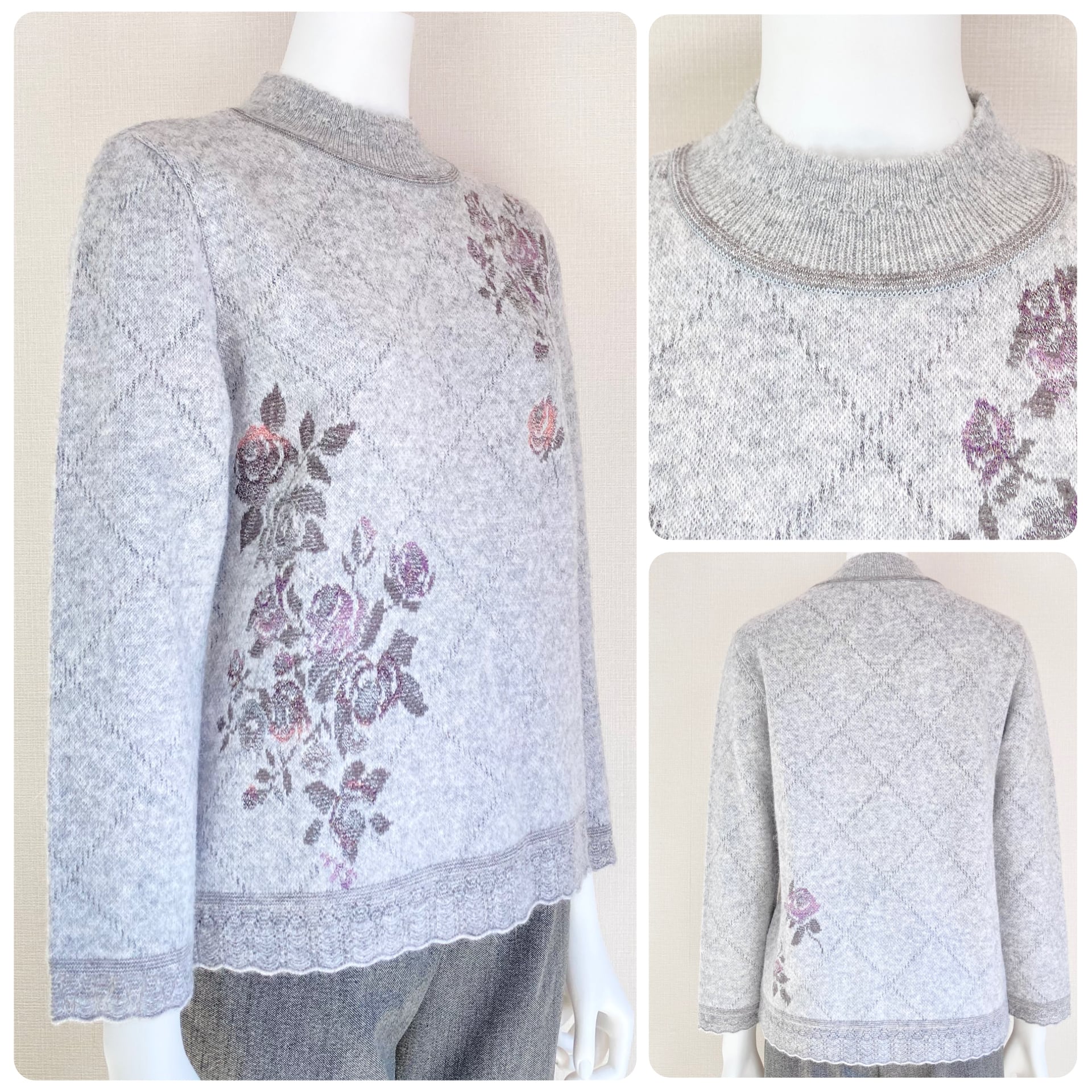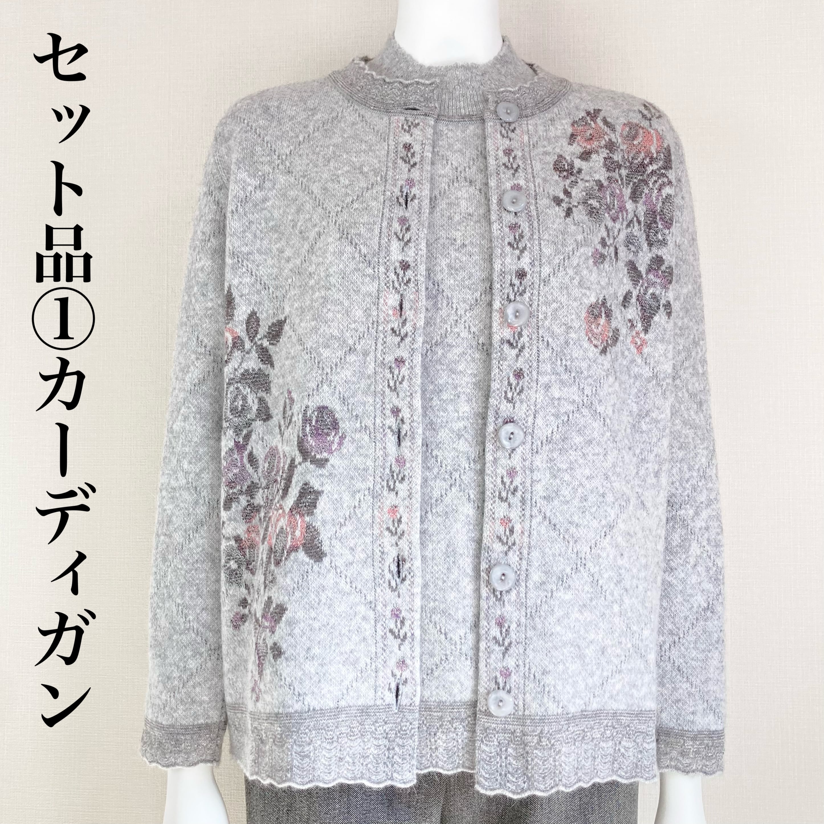 クリスマス限定のお得なセット☆ふわふわで極暖のアンゴラニットの、お花柄アンサンブル【ライトグレー】