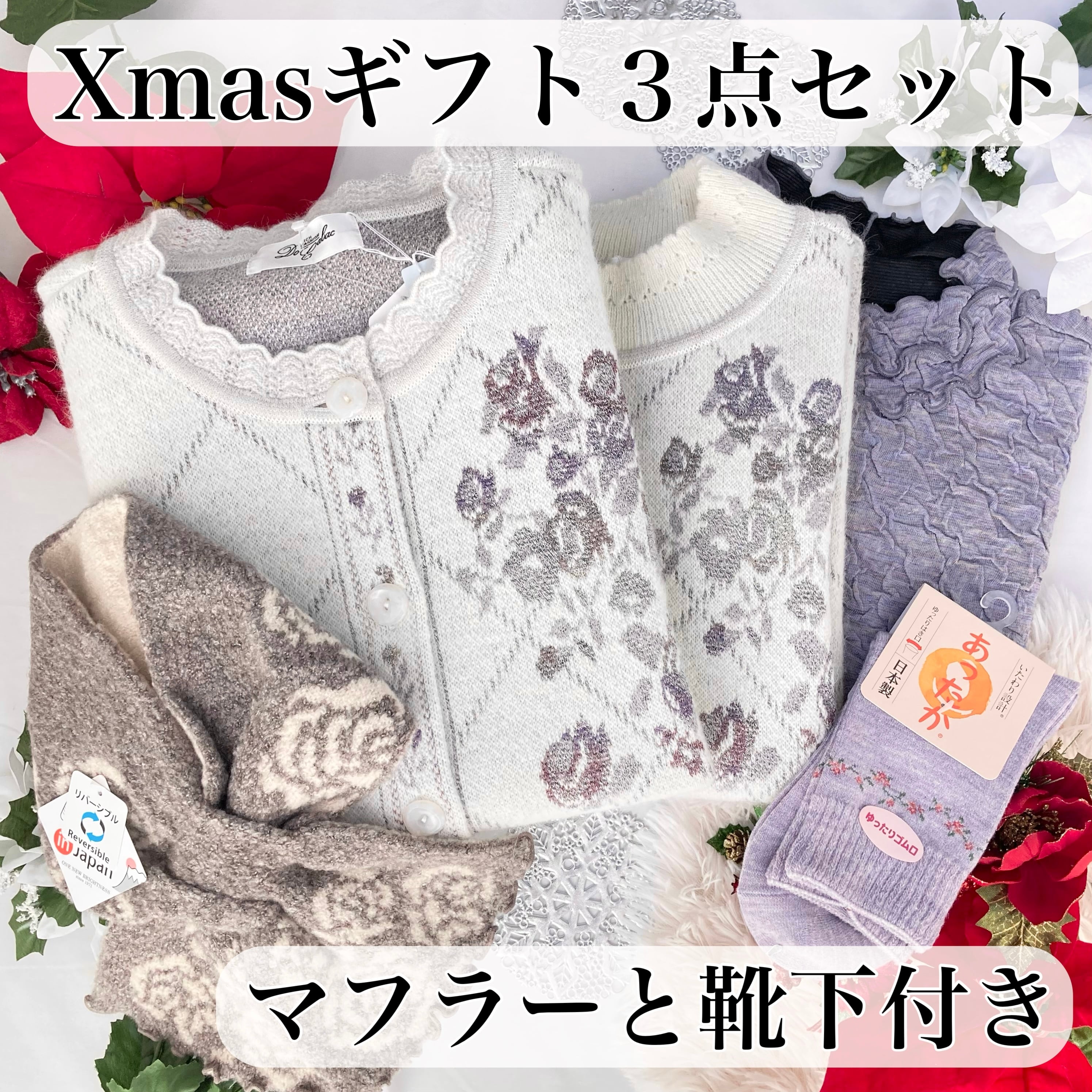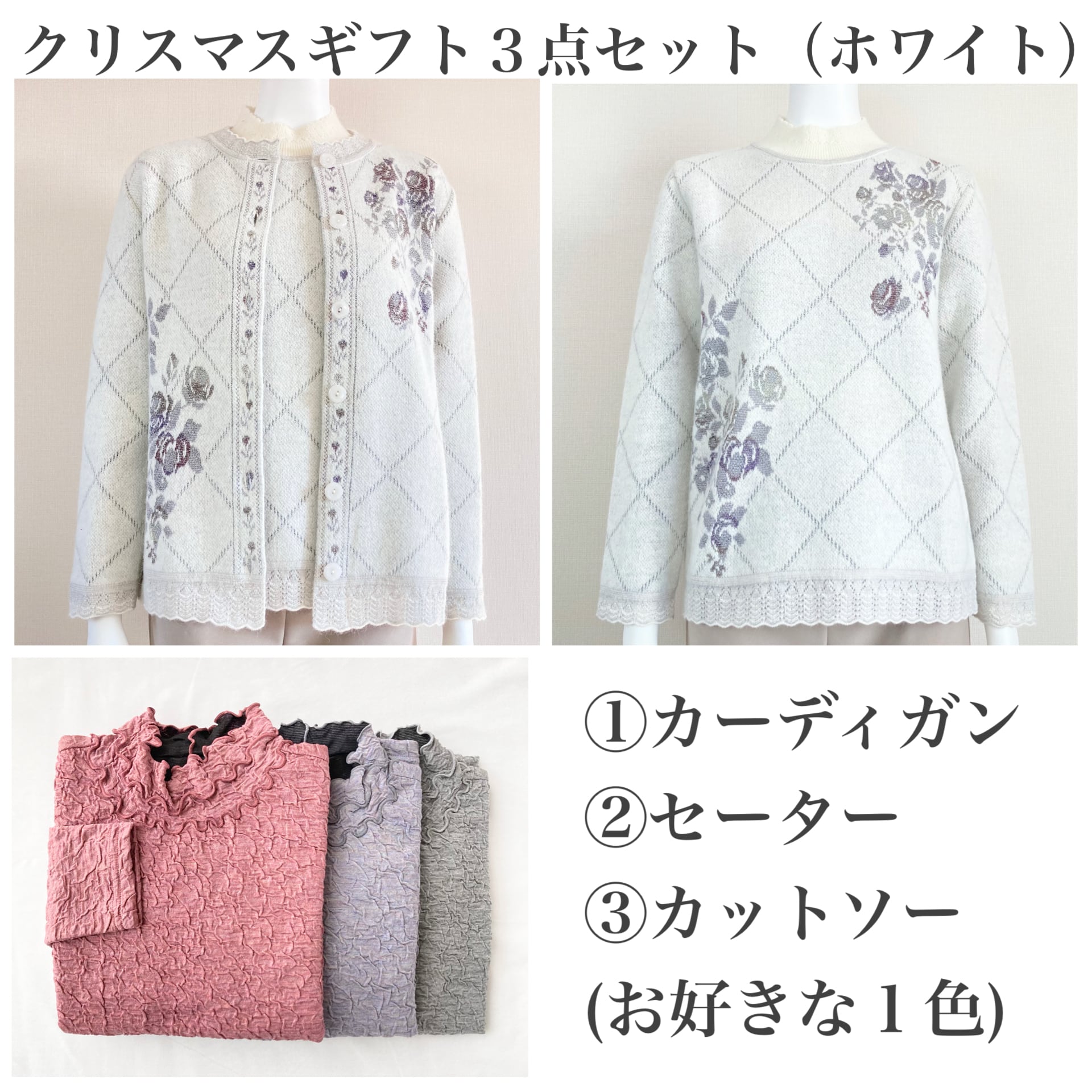 【Xmas限定!お得な3点セット・ホワイト】大人気アンサンブルのクリスマスギフト/70代・80代・90代ギフトSサイズ/日本製/小さめ高齢者服シニアファッション