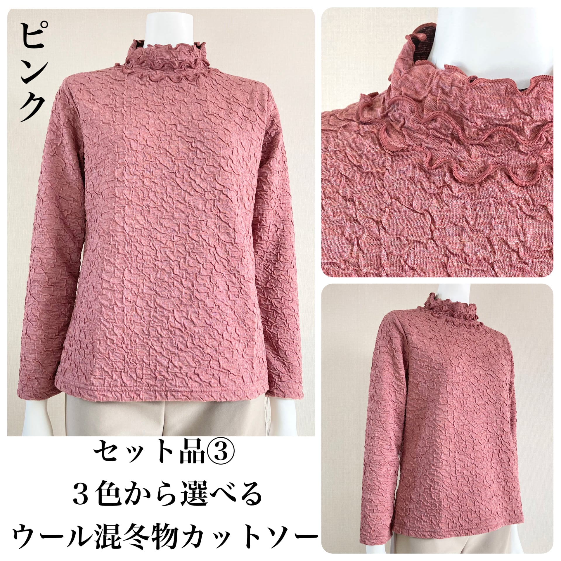ウール混で暖かいポコポコカットソーもセットとなっております!