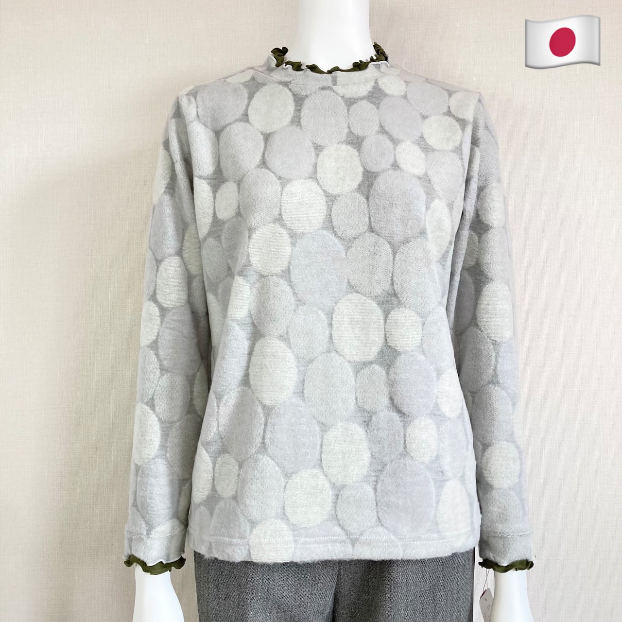 【冬物ラスト1色SALE】あったか起毛素材で優しいドット柄のカットソー/70代・80代・90代ギフト/シニアファッション/Sサイズ/小さいサイズ/高齢者服