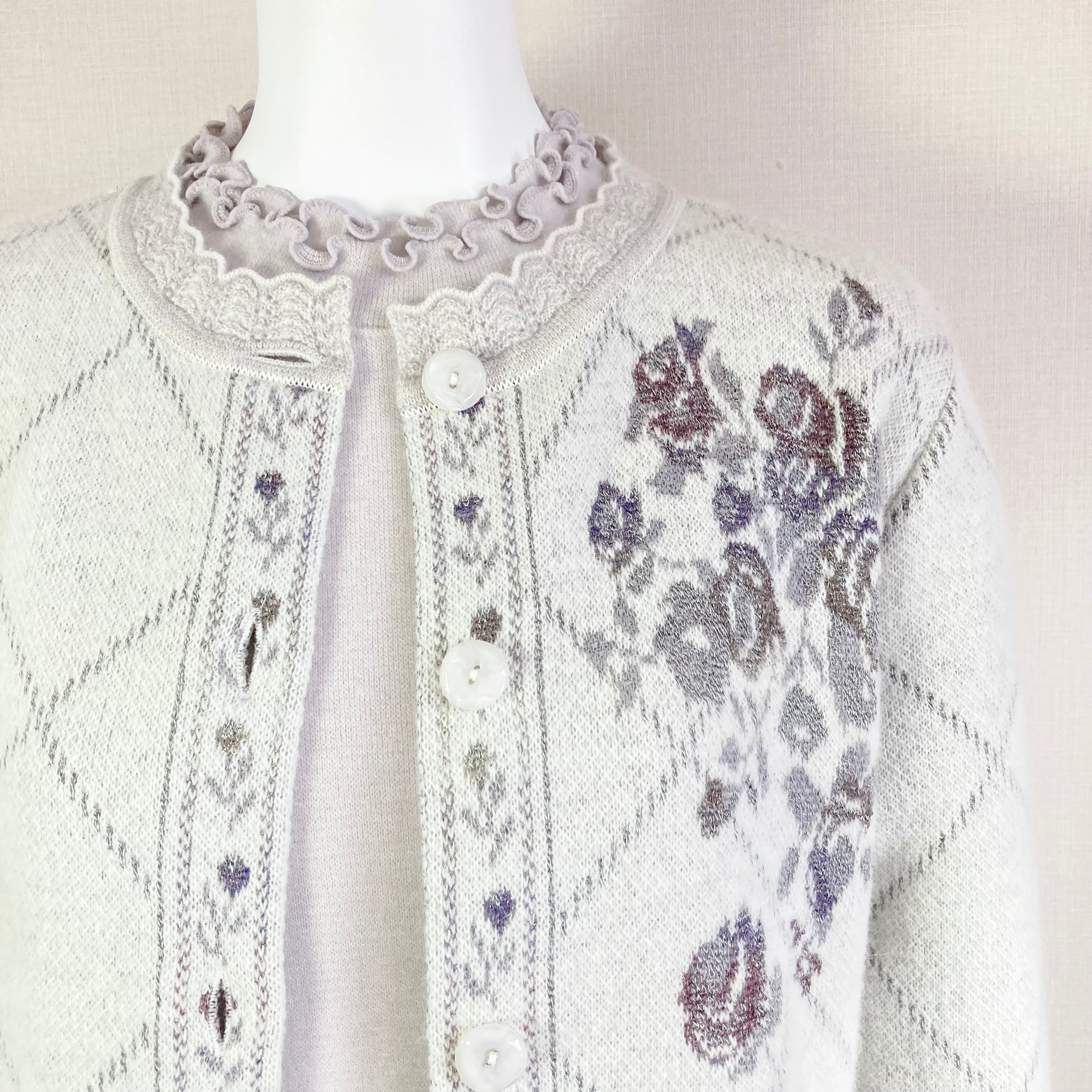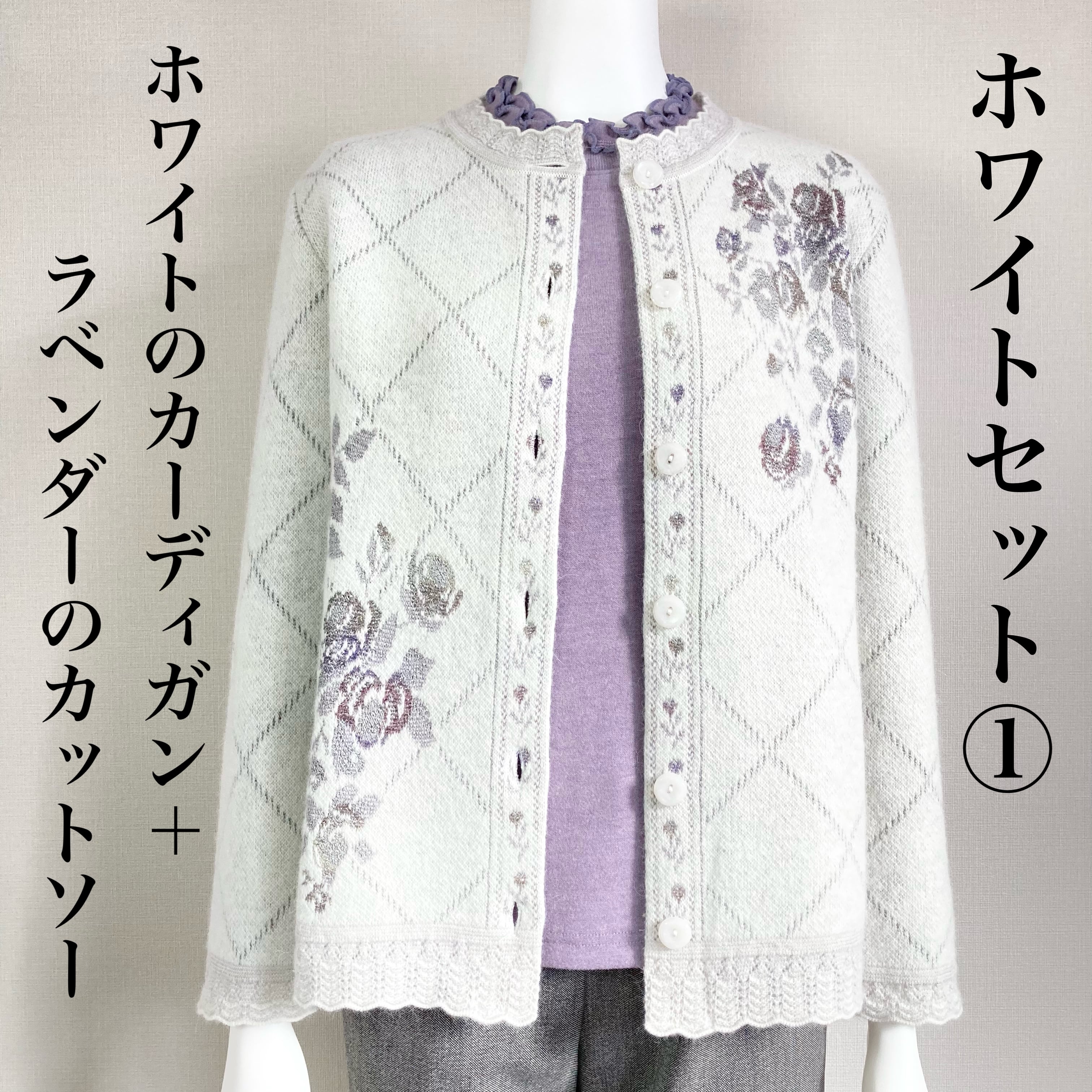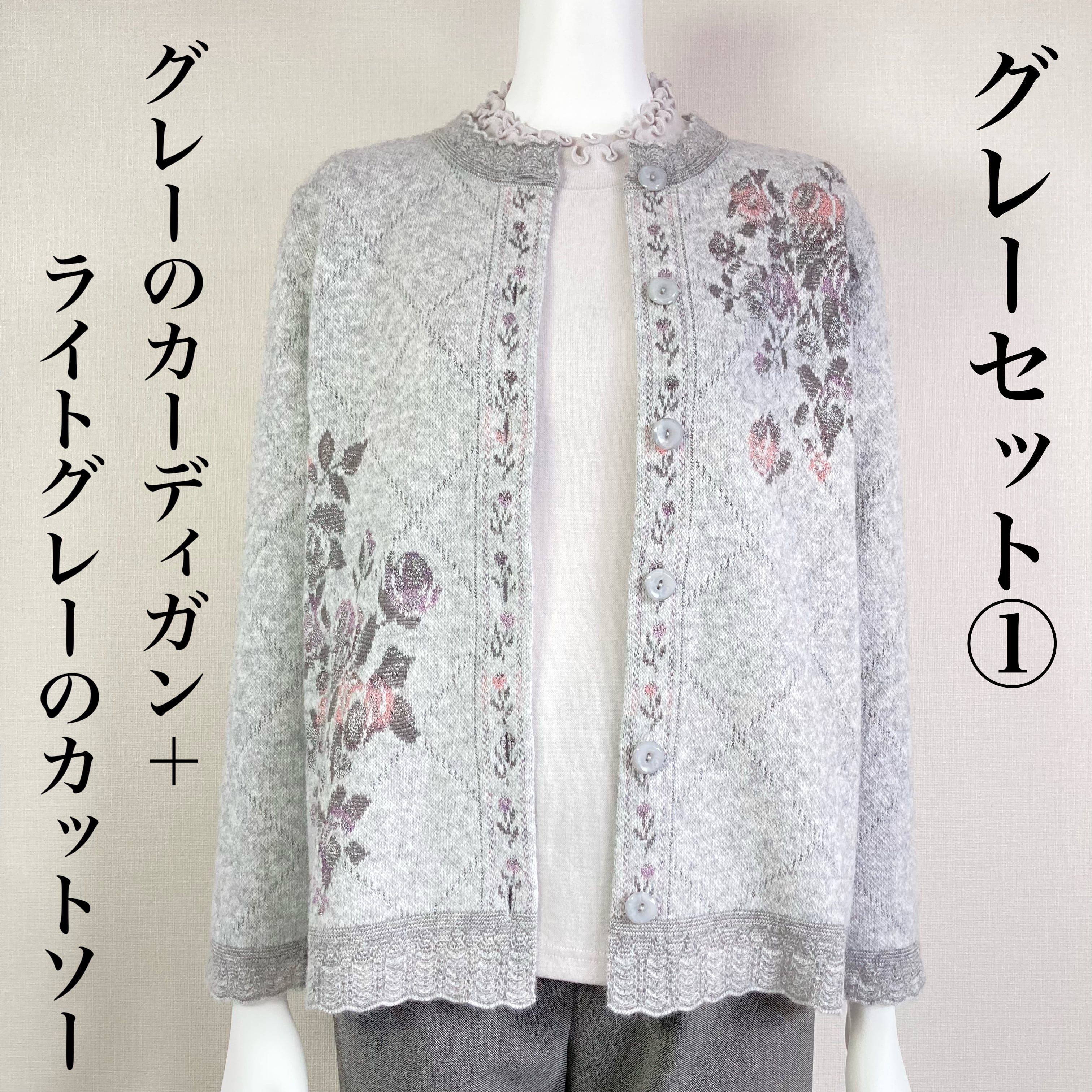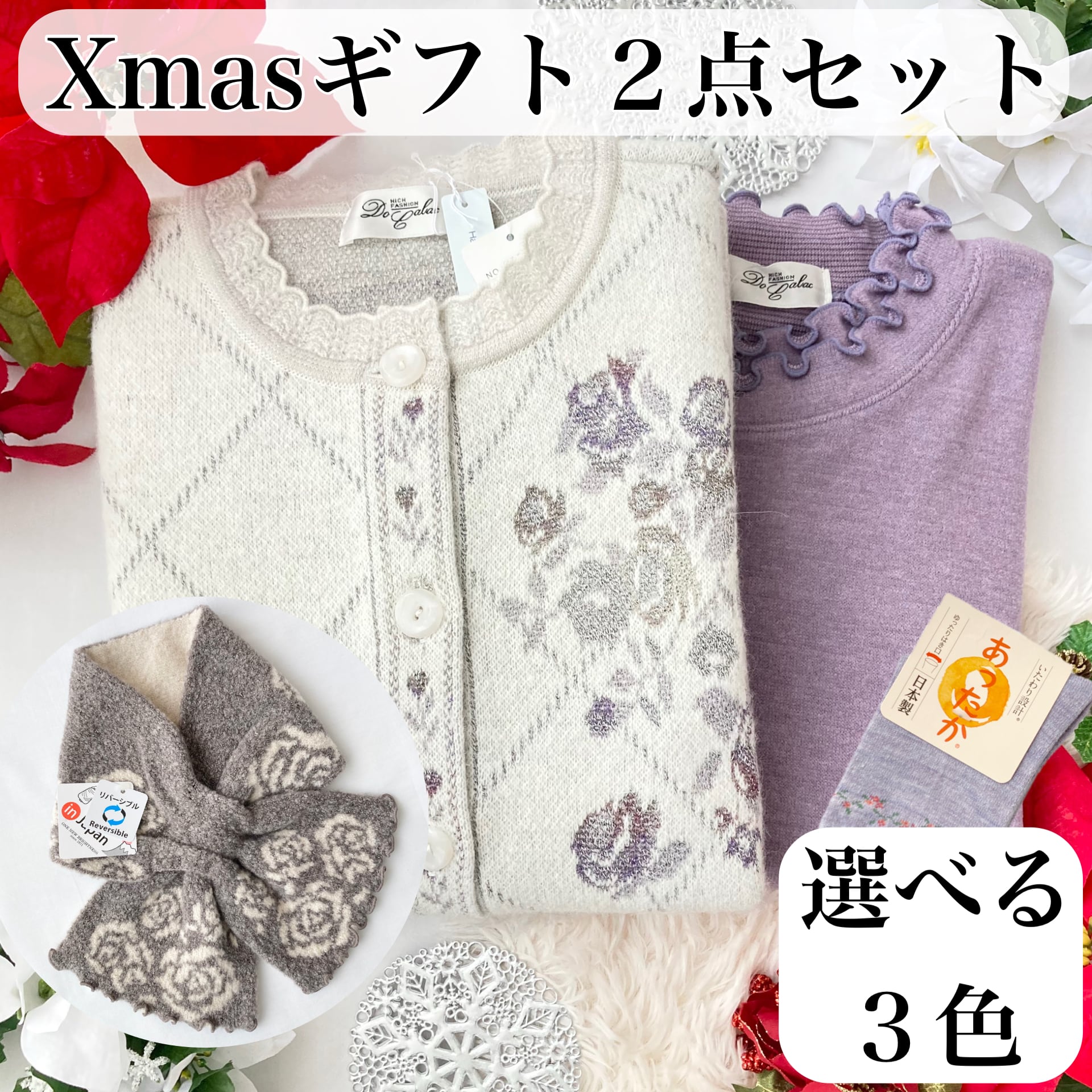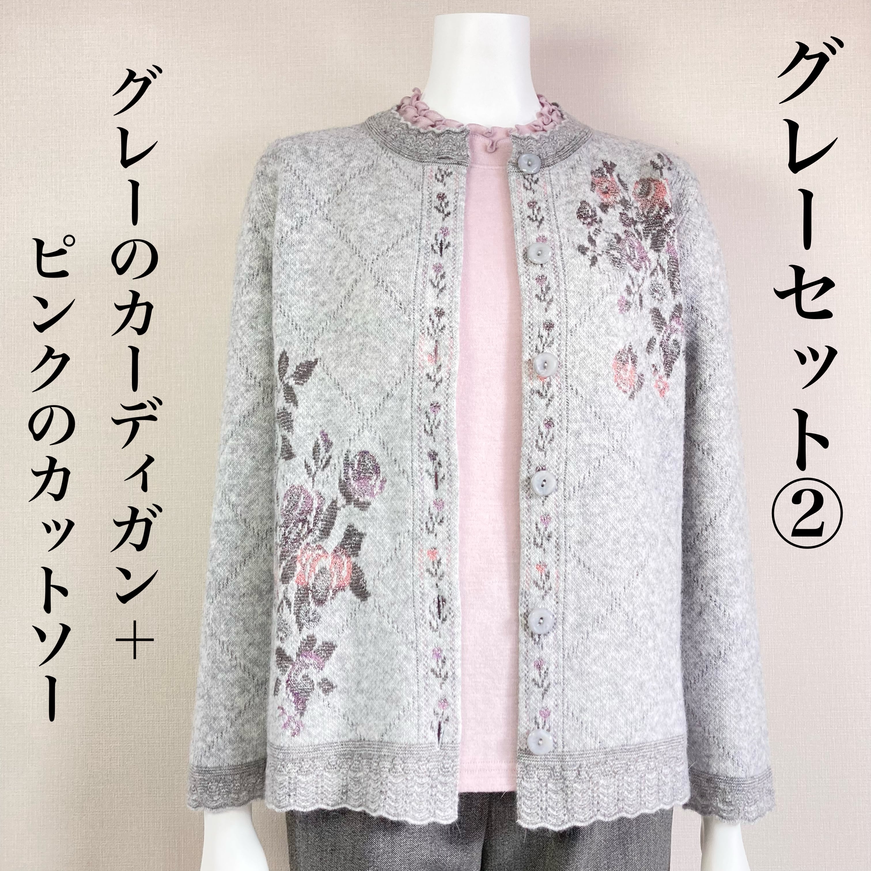 【Xmas限定!お得な2点セット(選べる3色)】花柄カーディガンと冬物カットソーのクリスマスギフト/70代・80代・90代ギフトSサイズ/日本製/小さめ高齢者服シニアファッション