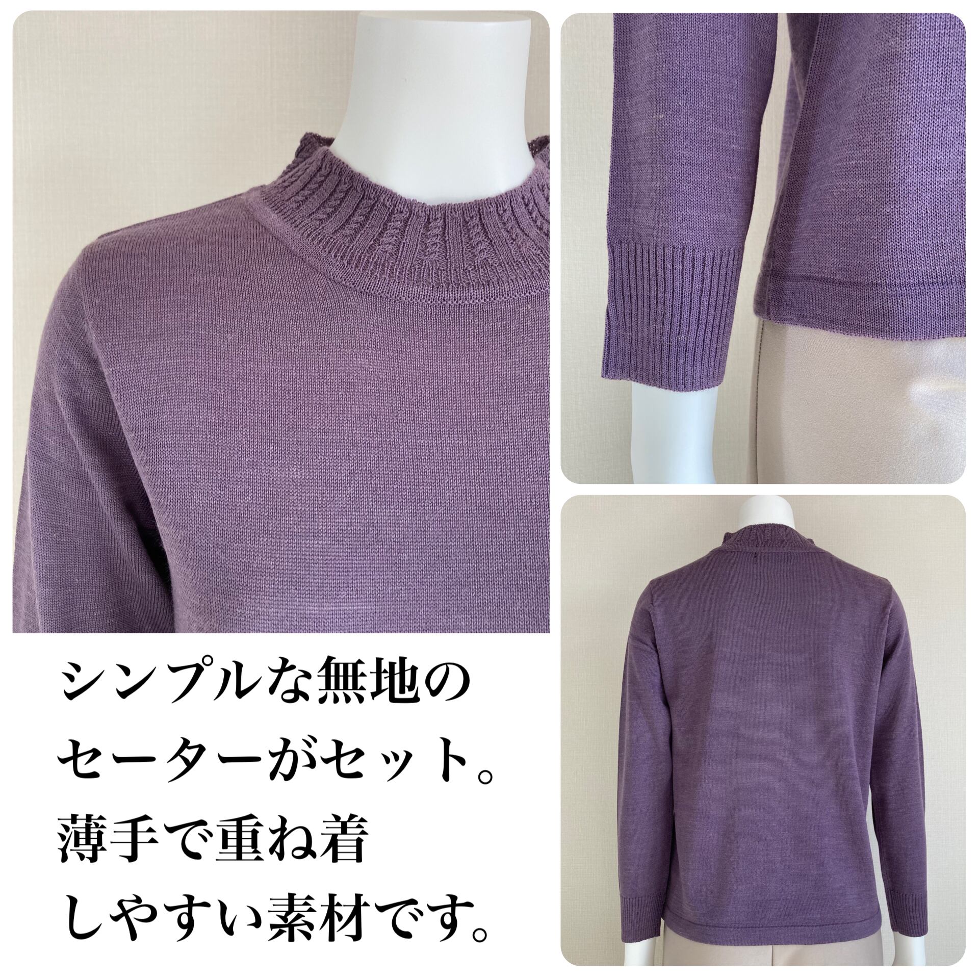 ・インナーの長袖無地セーター