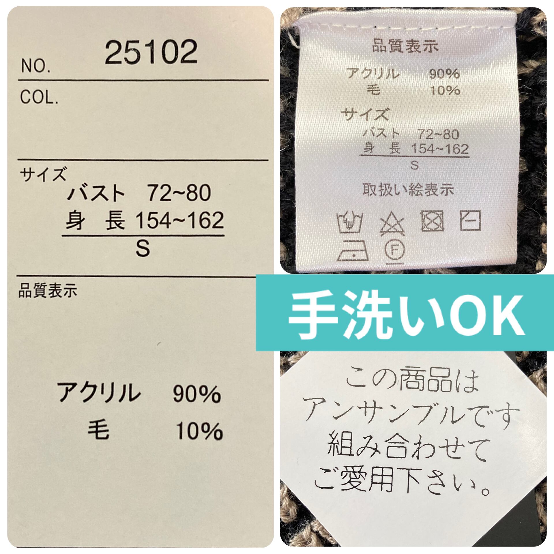 素材:アクリル90%、毛10%、