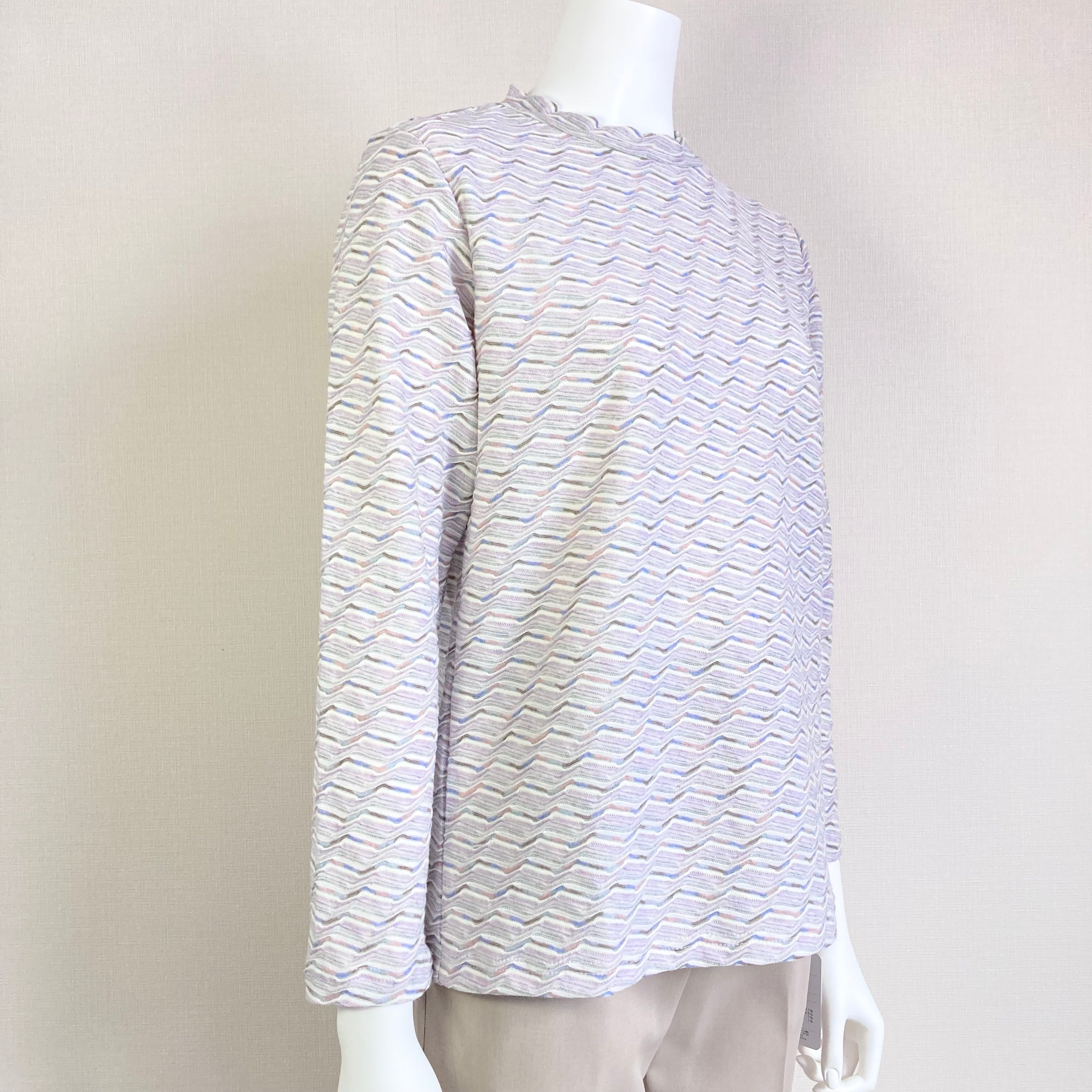 【春物新作】綿混の長袖!落ち着いた波ボーダーでカットソー/70代・80代・90代ギフト/シニアファッション/Sサイズ/小さいサイズ/日本製高齢者服