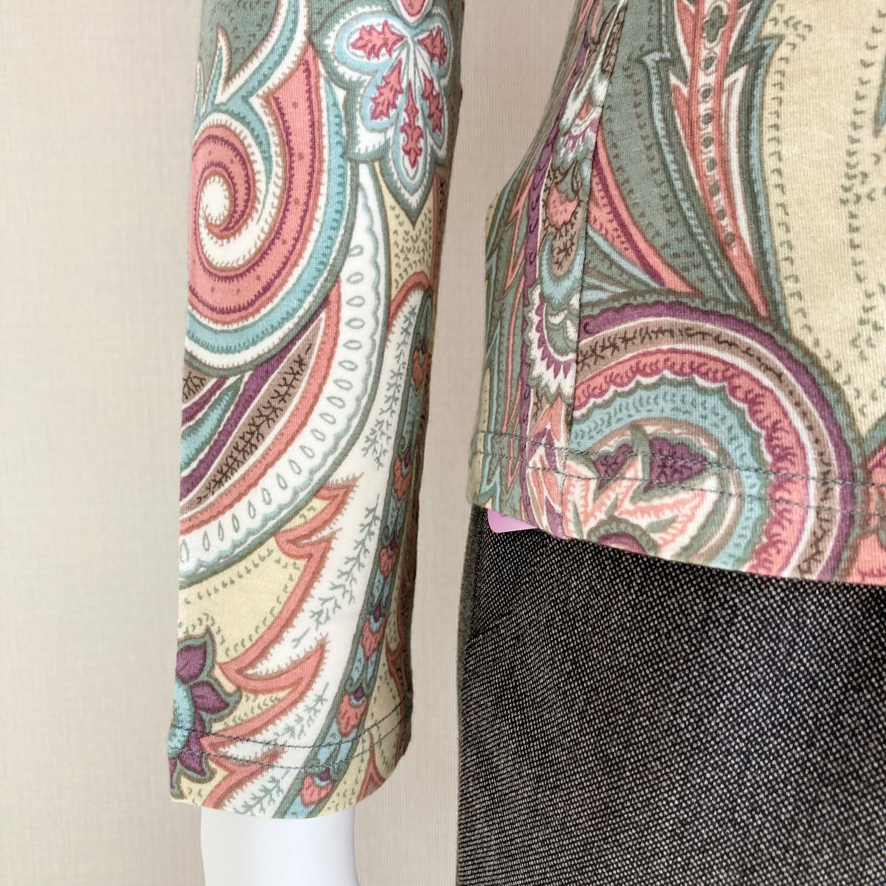 全体にプリントされたペイズリー柄がエレガントでとっても華やかなカットソーです。