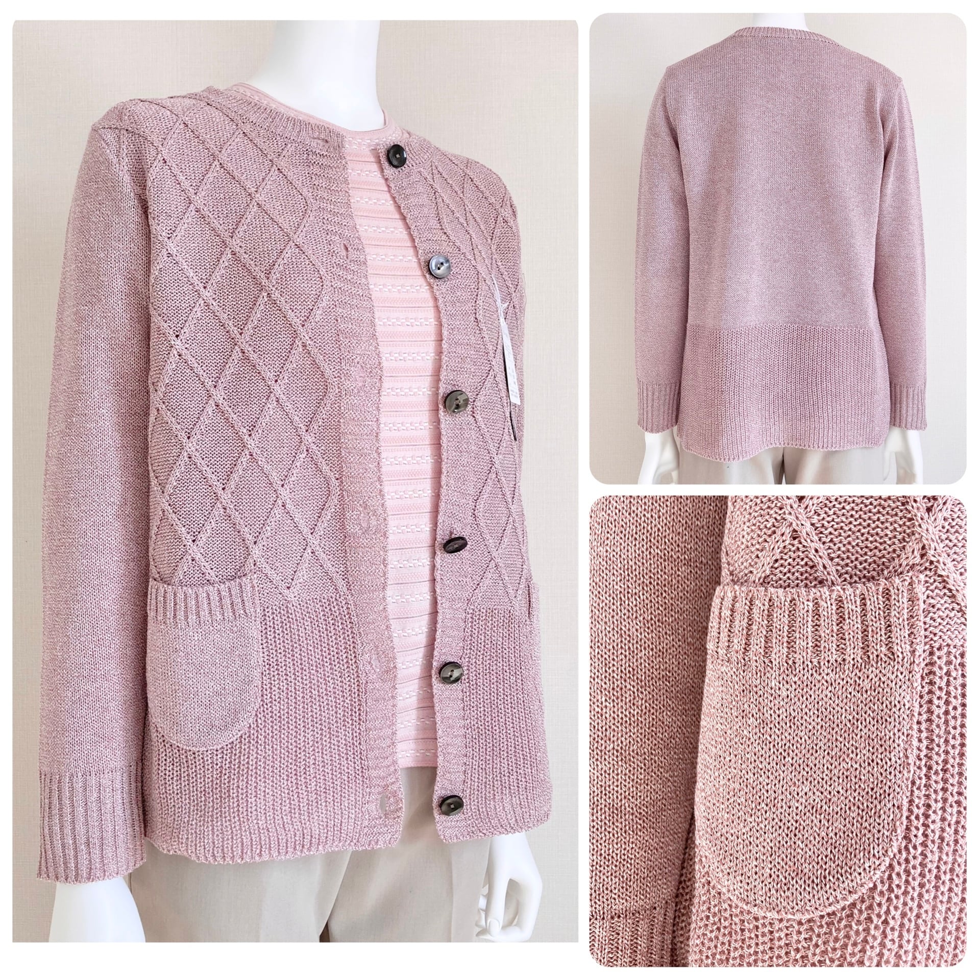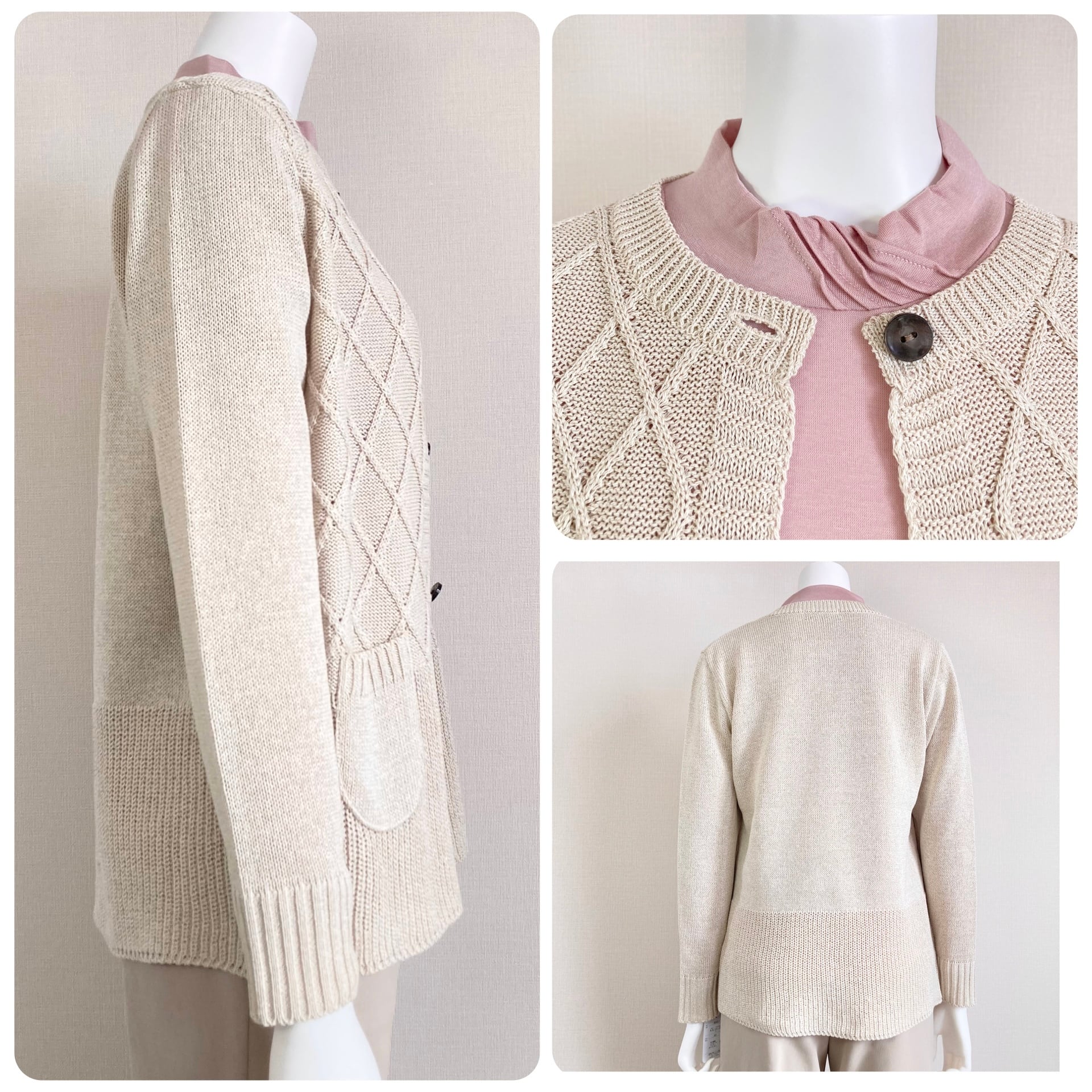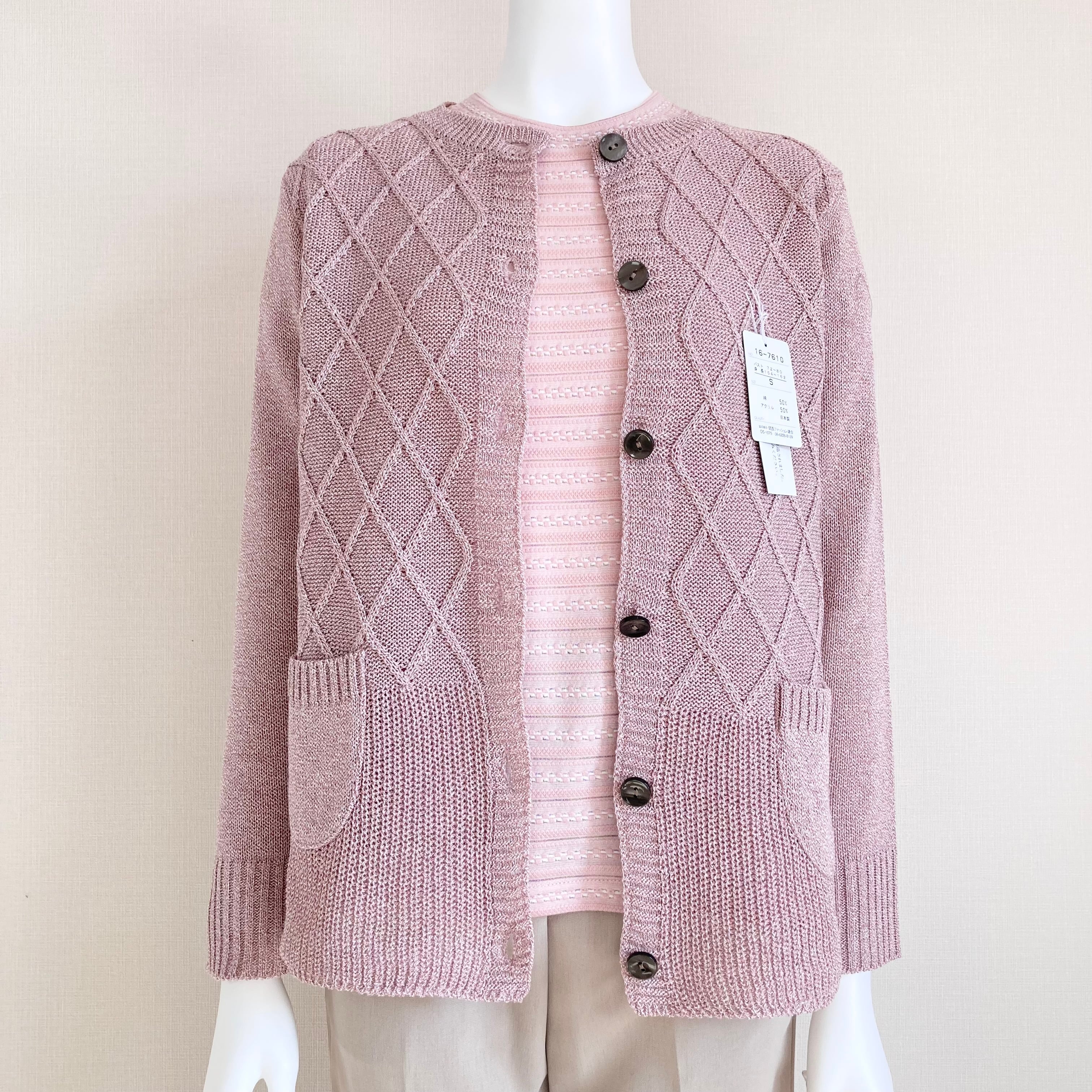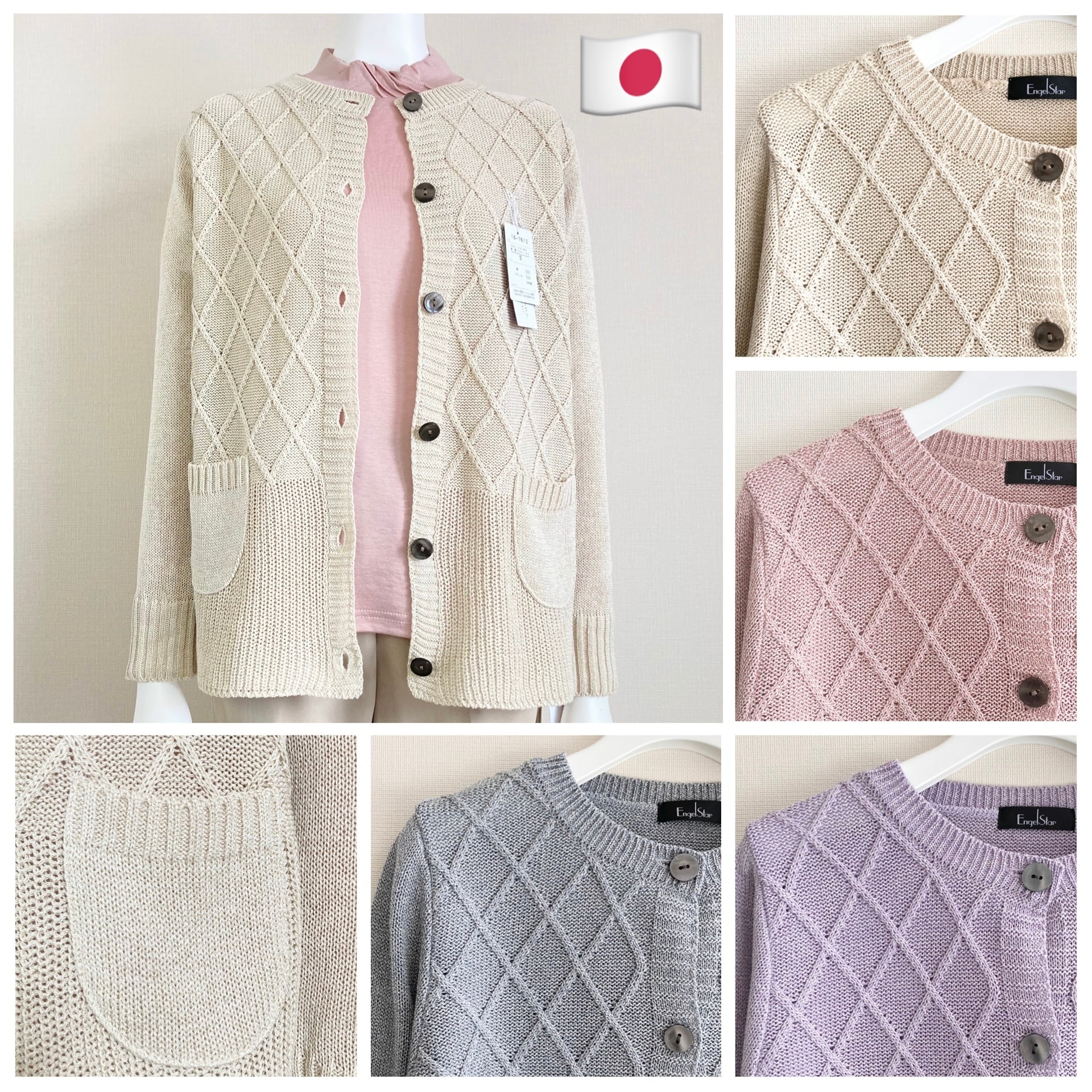 【嬉しいポケット付き】ダイヤの編み柄がとっても上品☆軽やかな羽織り心地で春にピッタリな1枚です