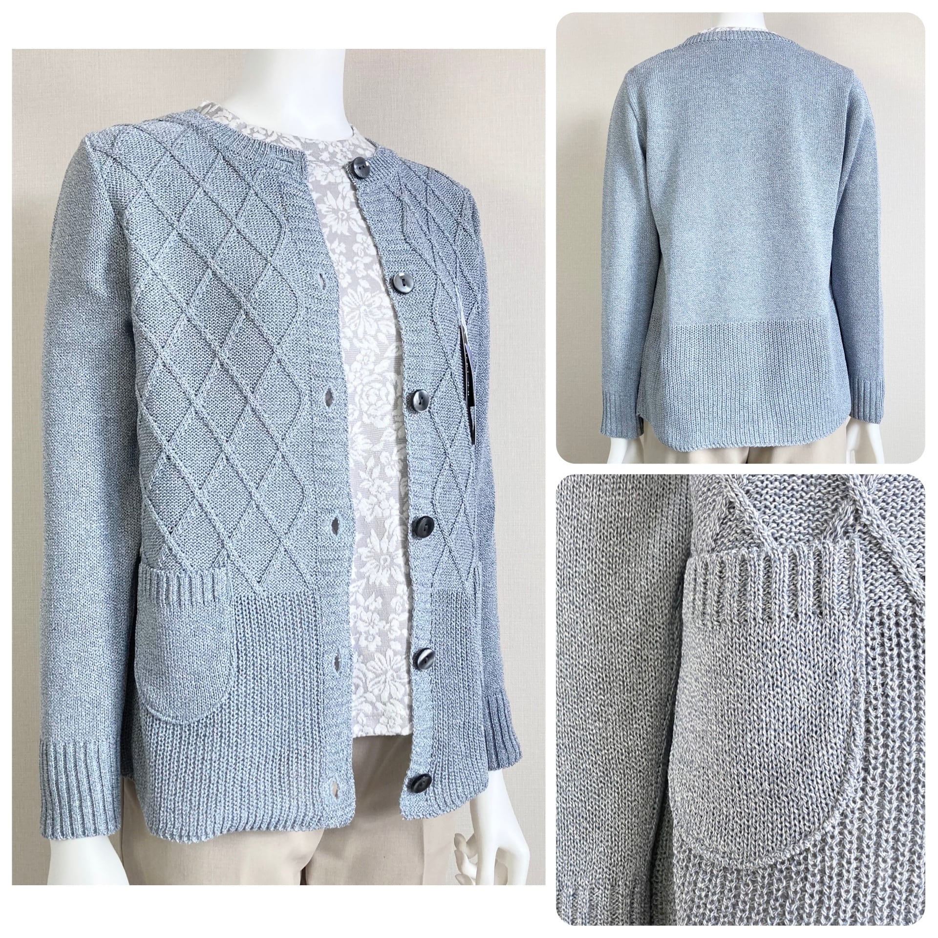 【春物新作】ダイヤの編み柄が上品☆ポケット付き綿混カーディガン/70代・80代・90代の日本製ギフト/小さめ・Sサイズのおばあちゃん服オシャレなシニアファッション