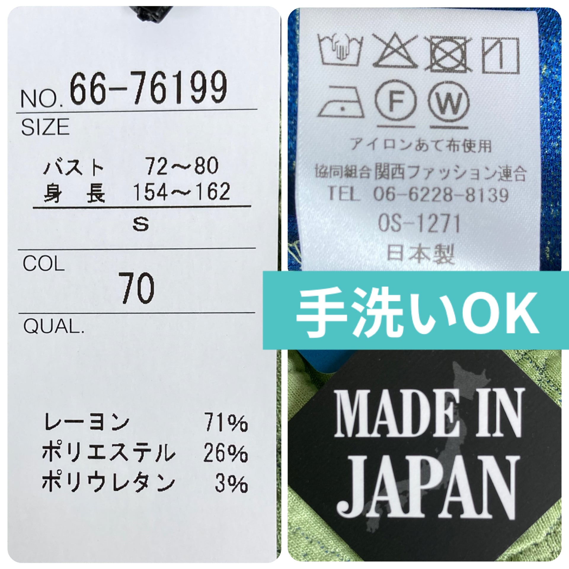 素材:レーヨン71%、ポリエステル26%、ポリウレタン3%