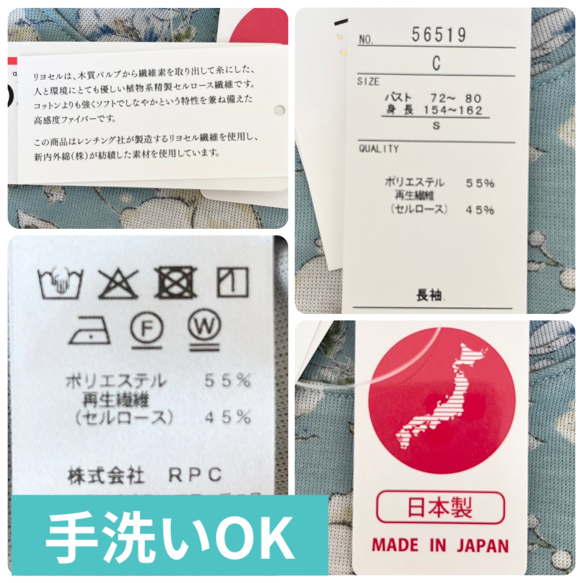 素材:ポリエステル55%、再生繊維セルロース45%