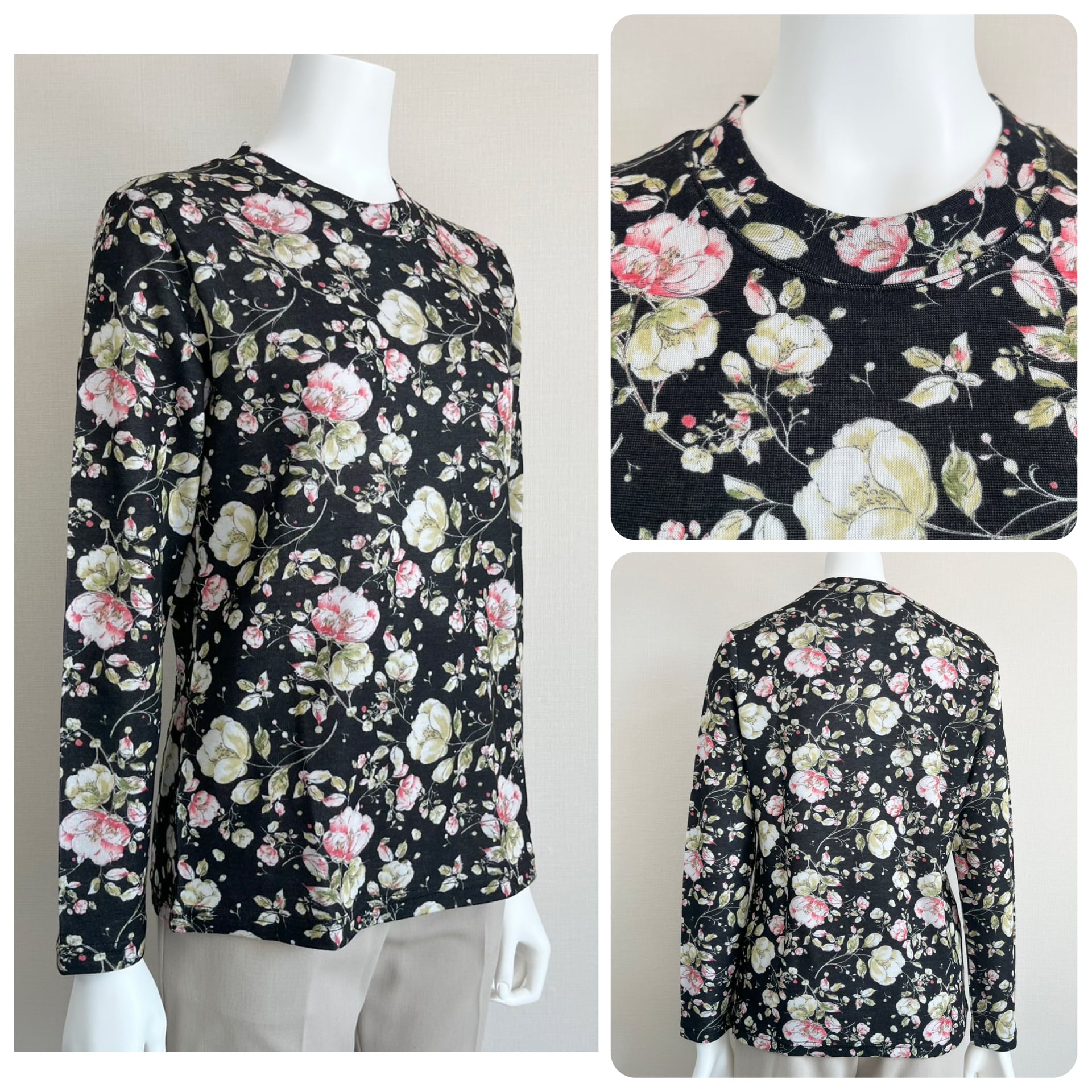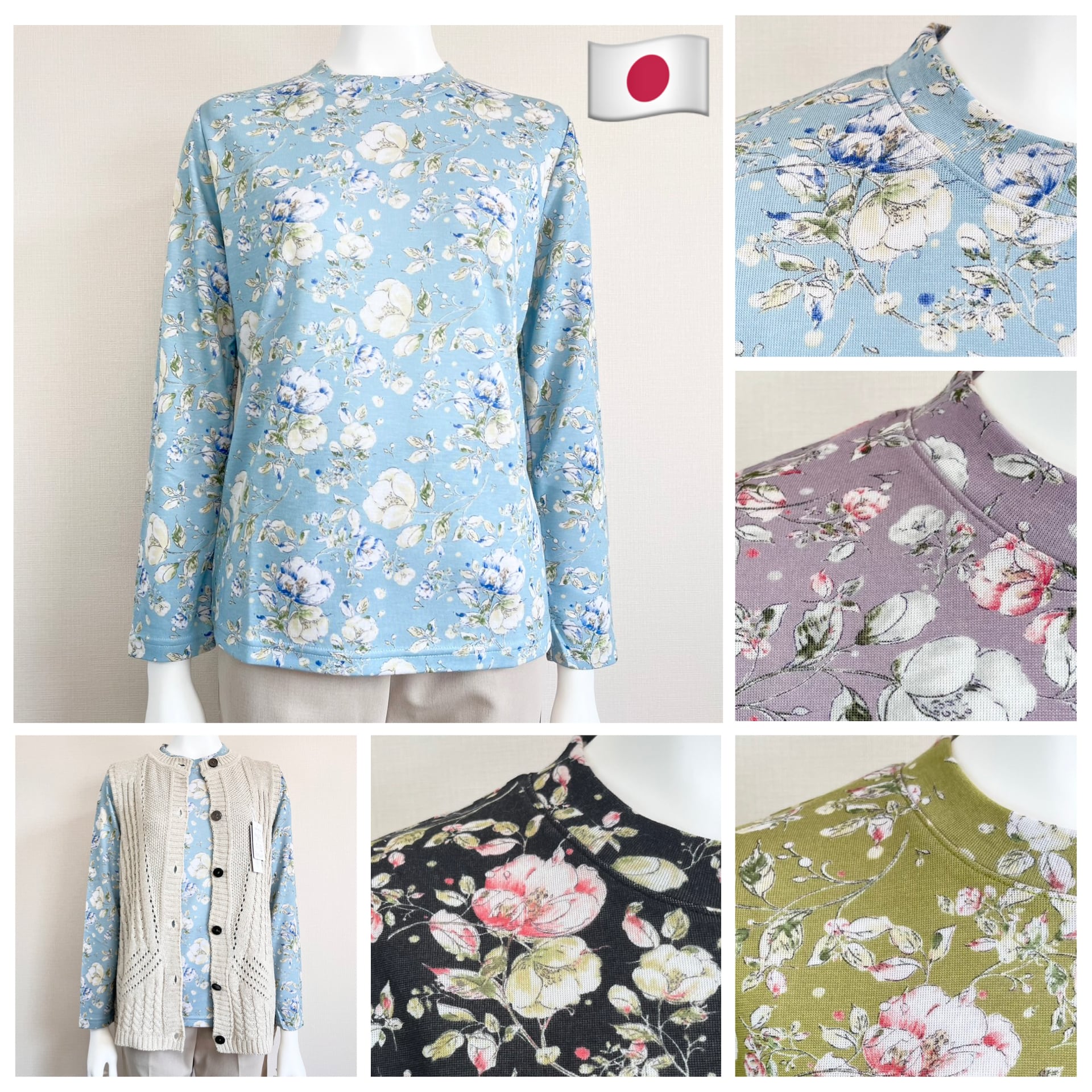 【春物新作】鮮やかなお花柄!しっとり肌触り優しいカットソー/日本製/70代・80代・90代ギフト/Sサイズ小さめ高齢者服シニアファッション