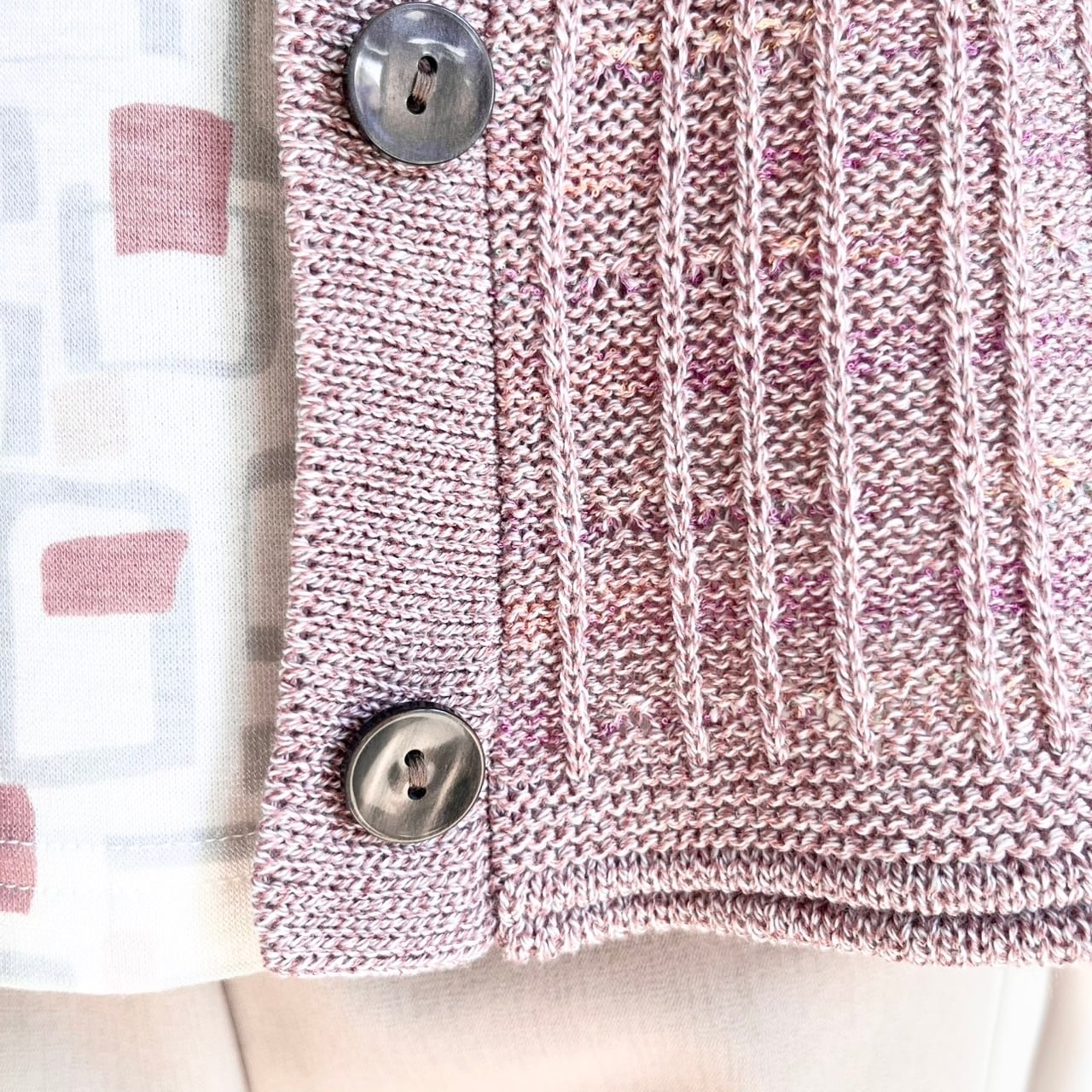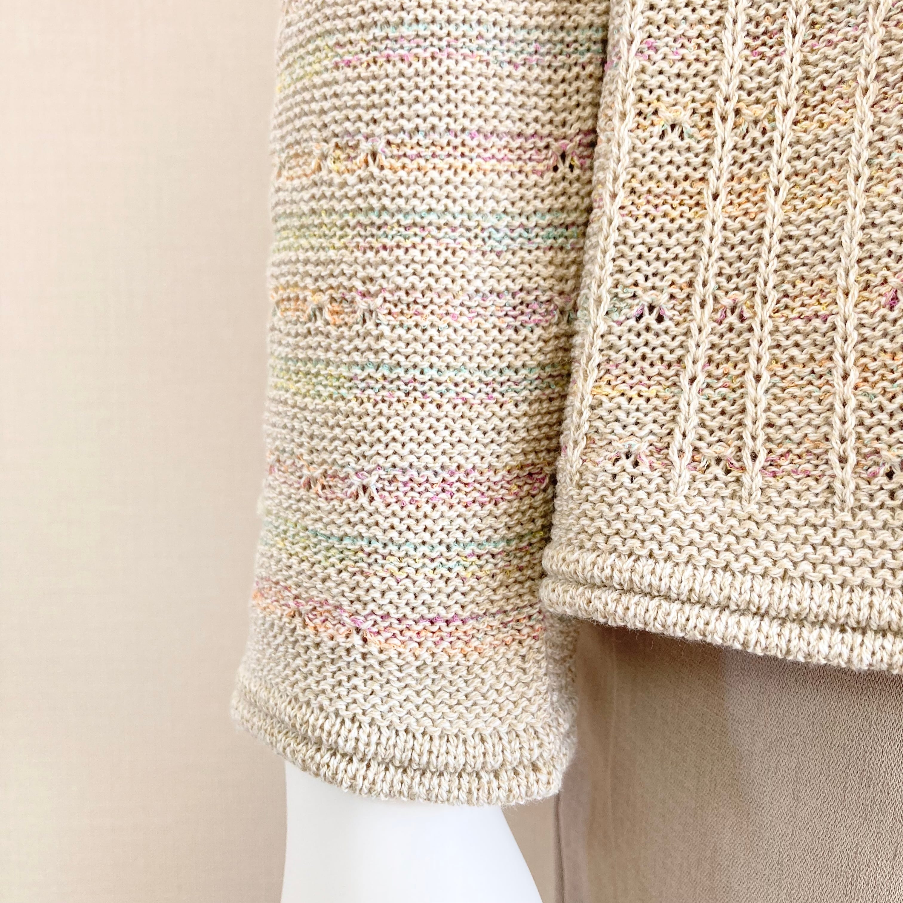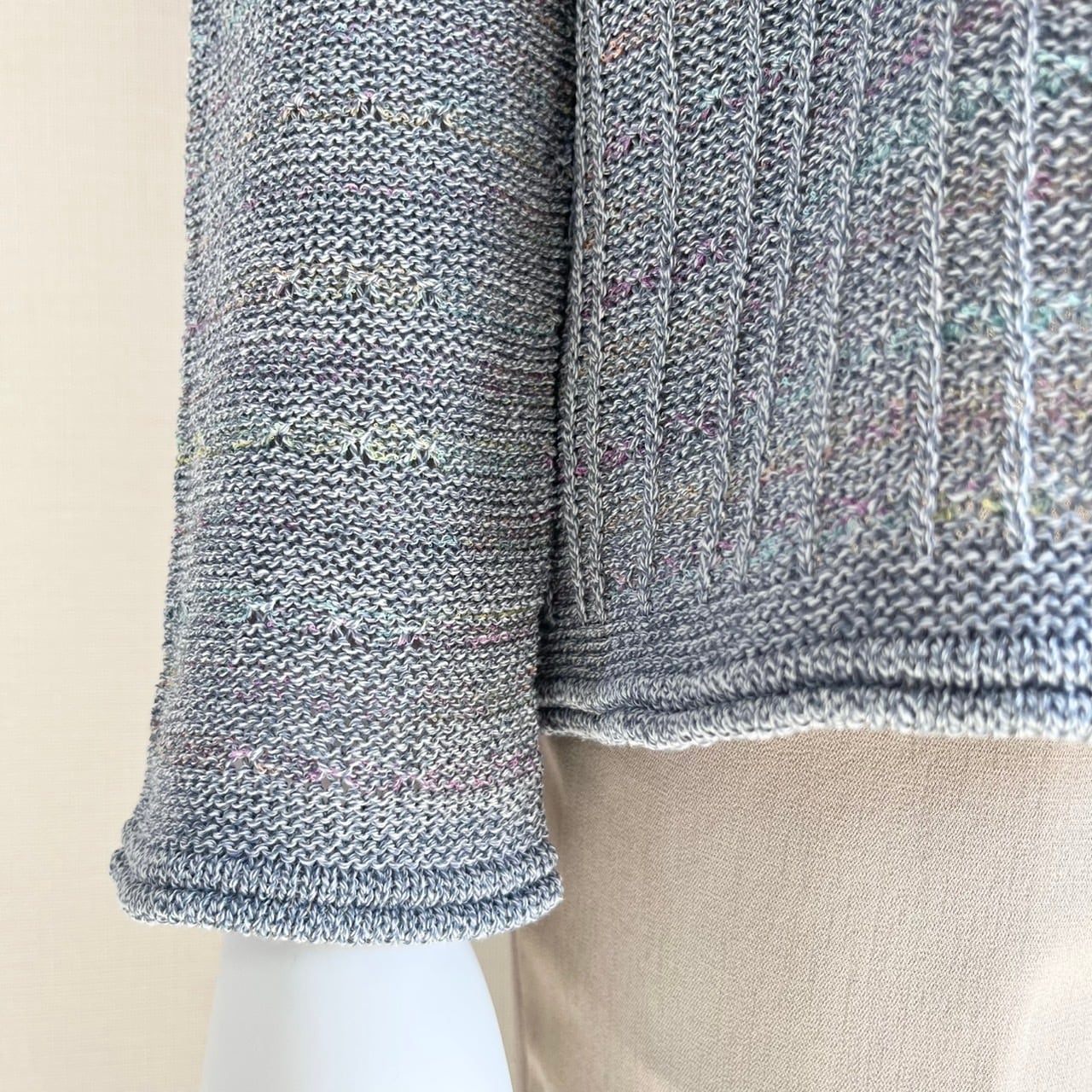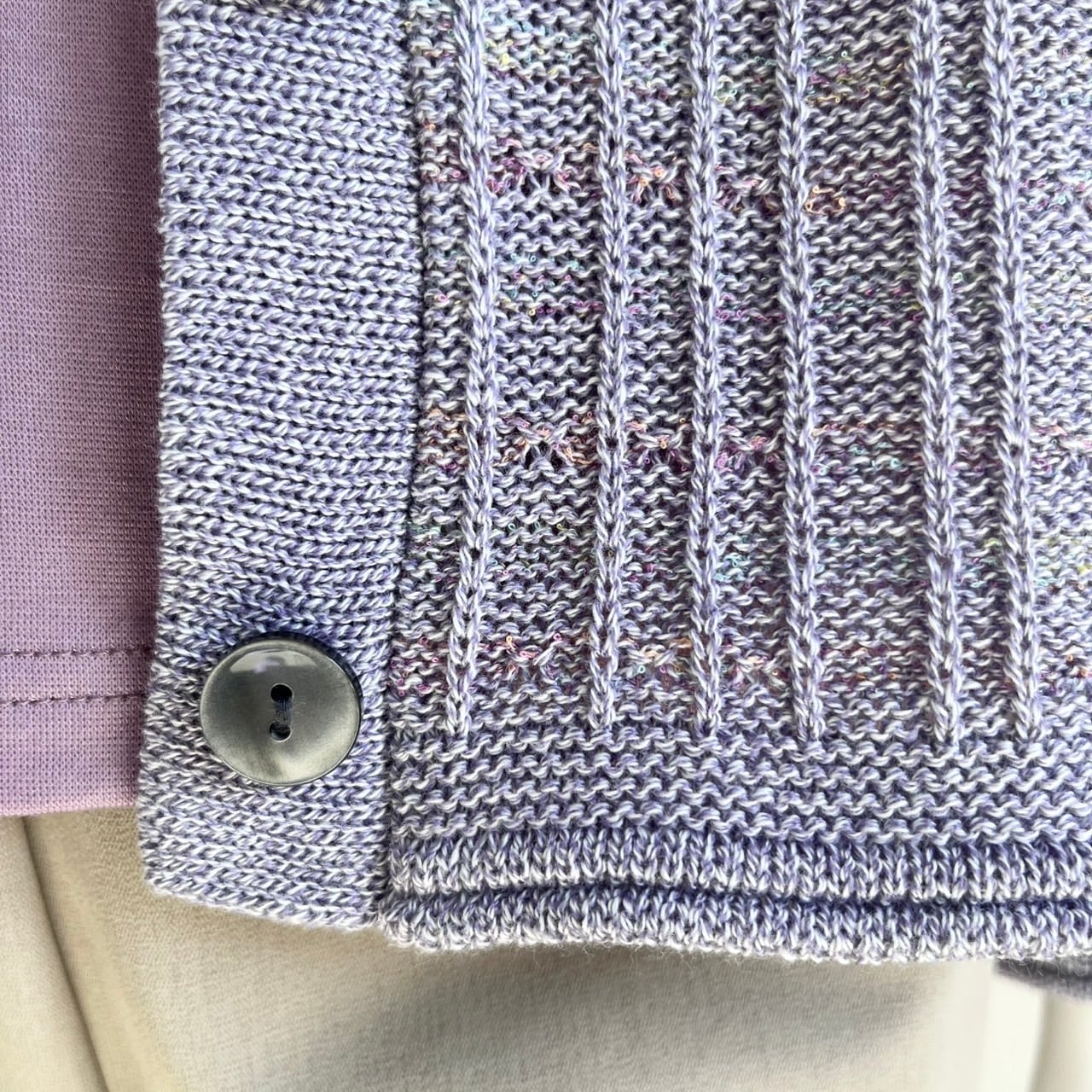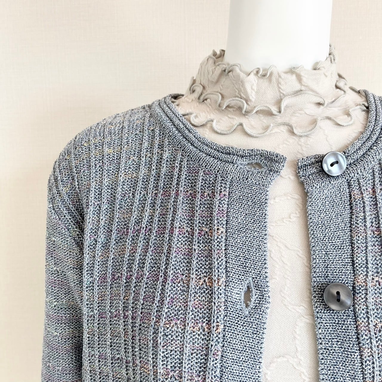 よく見るとうっすらとグラデーションカラーのボーダー柄が入ったオシャレなカーディガンです。