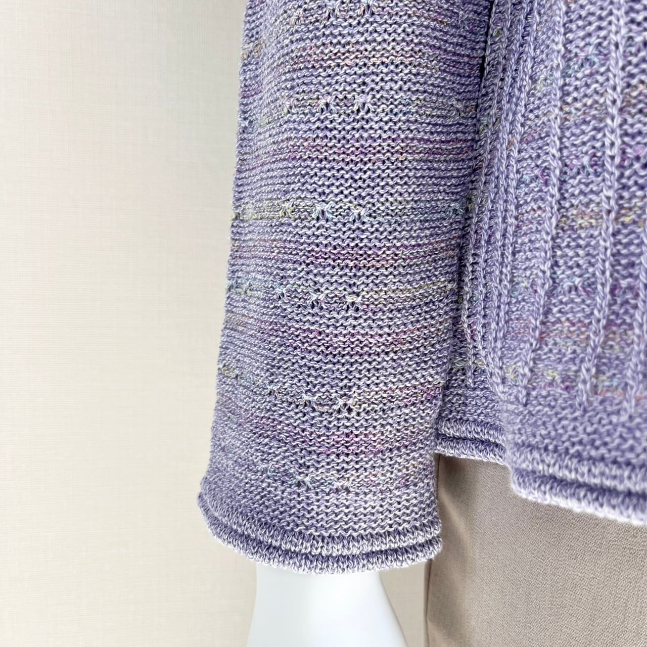 冬物の「毛混」のニットよりも通気性が良く、サラリとした肌ざわりで熱も篭りません。