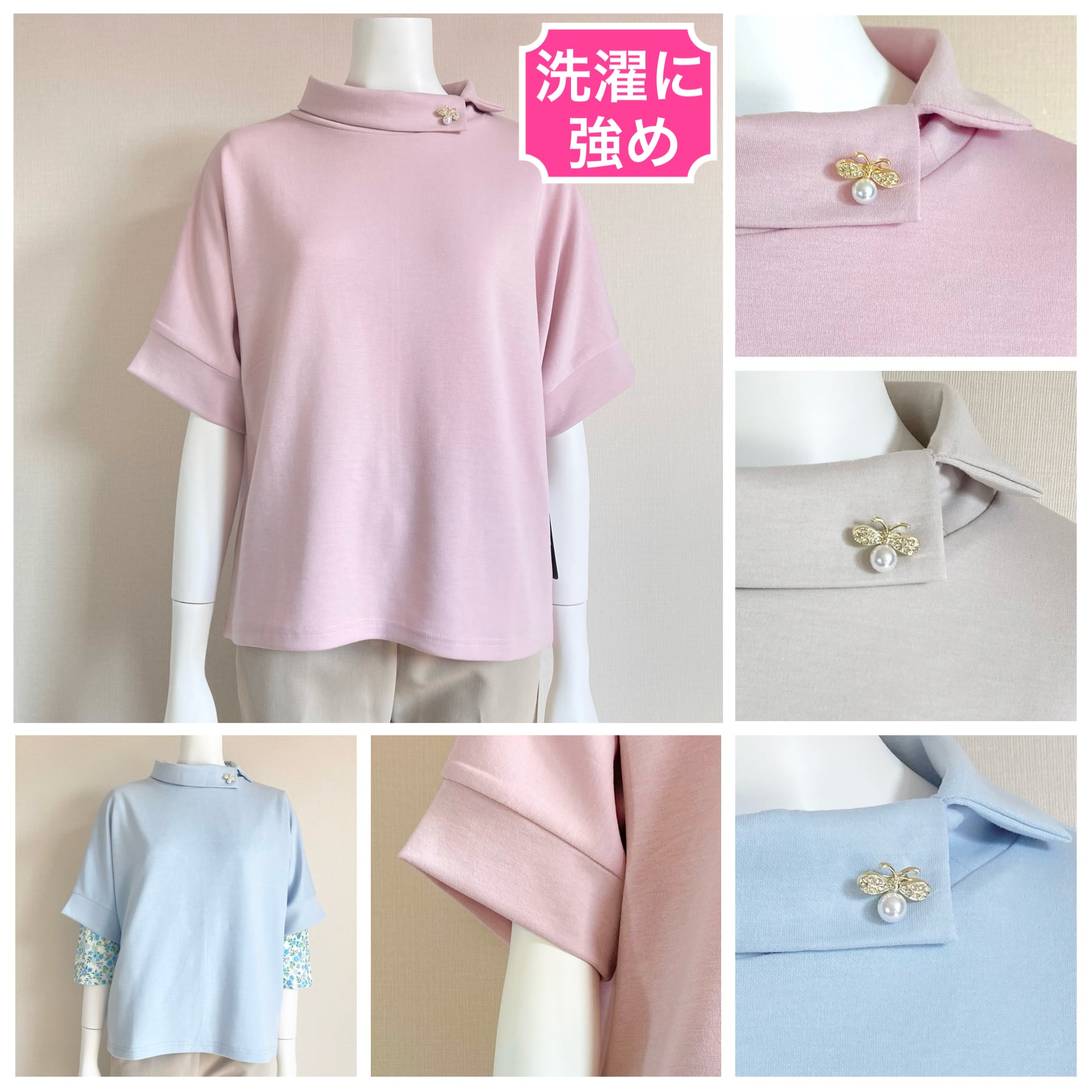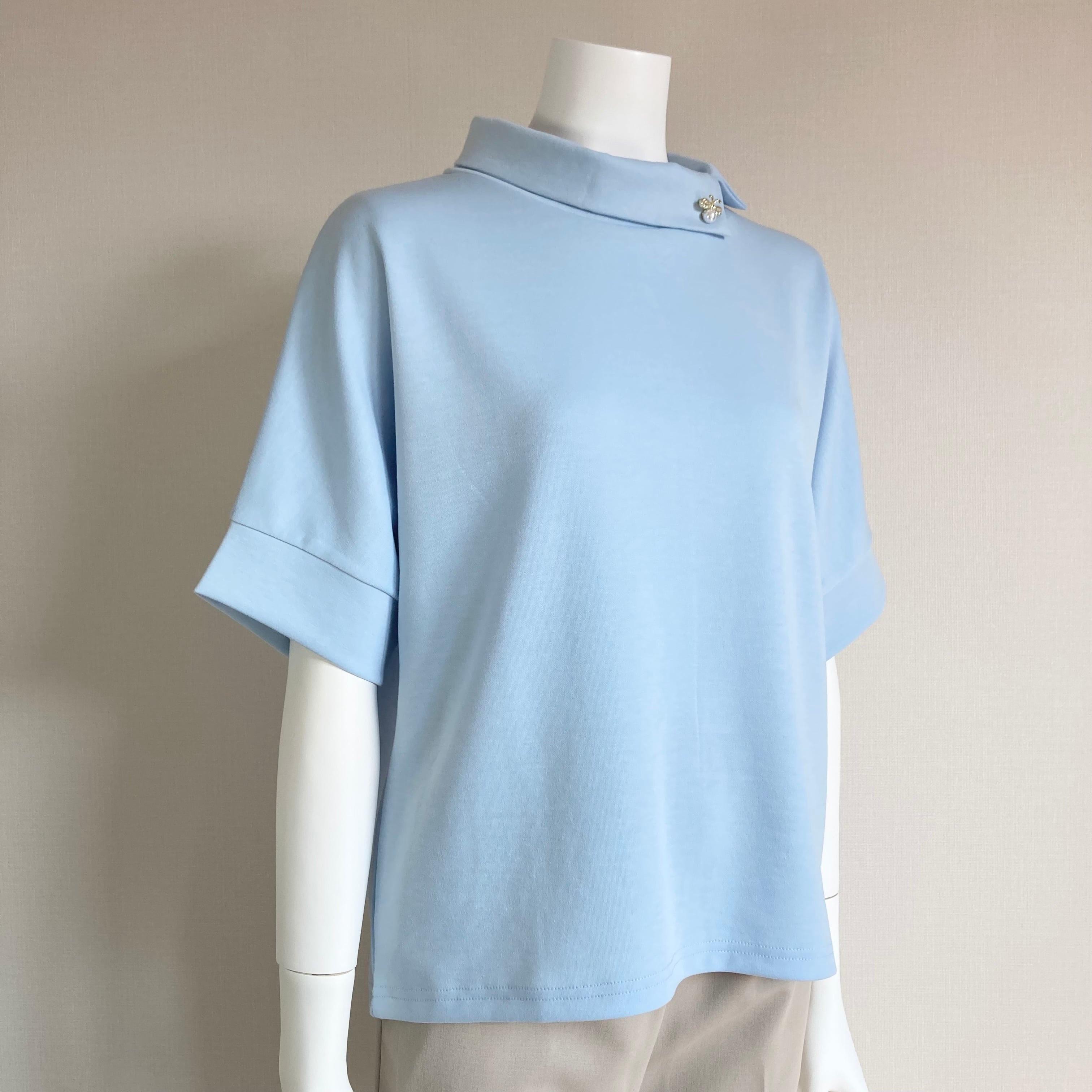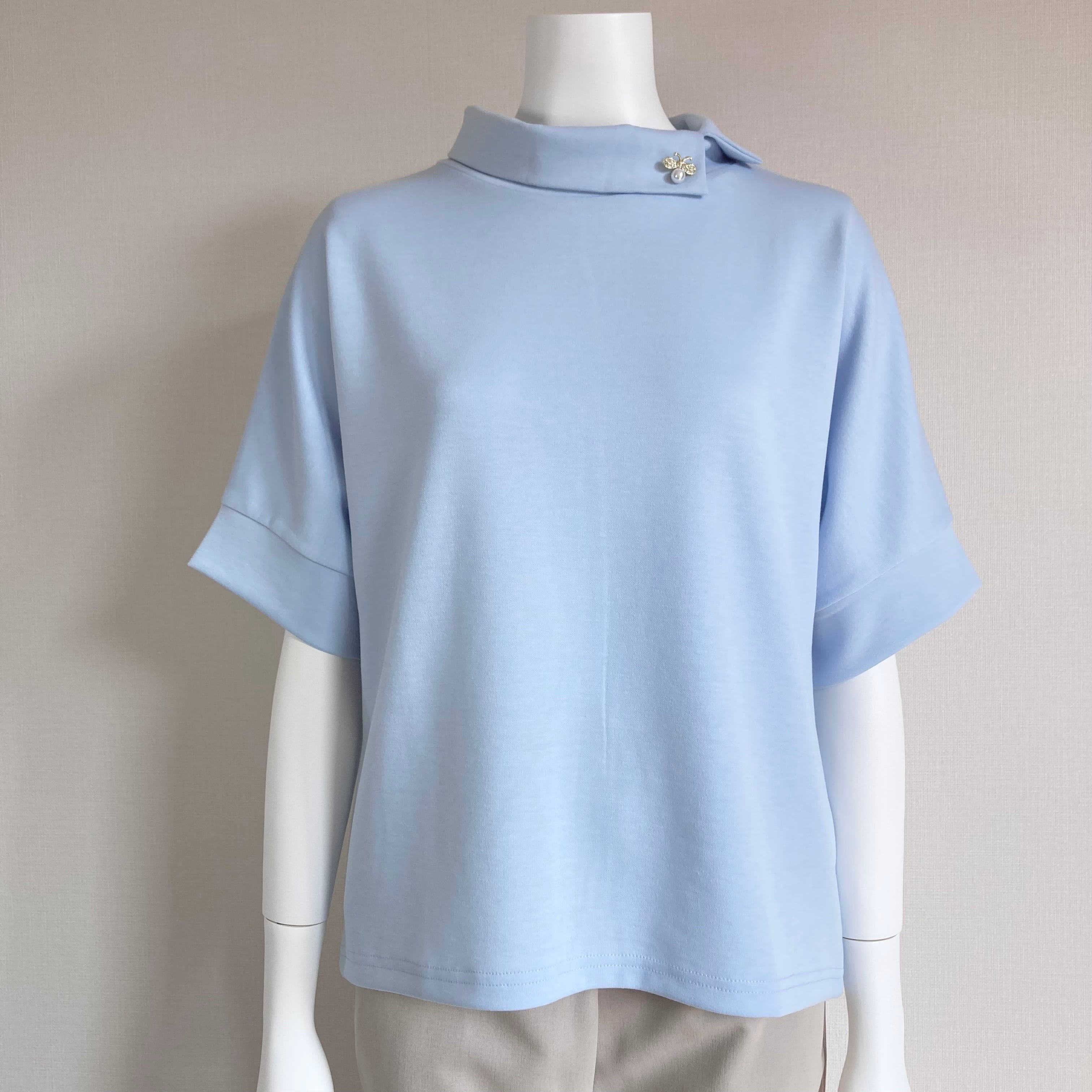 ロール襟がエレガント&取り外し可能ブローチもオシャレ!シワになりにくいポリエステル素材も嬉しい