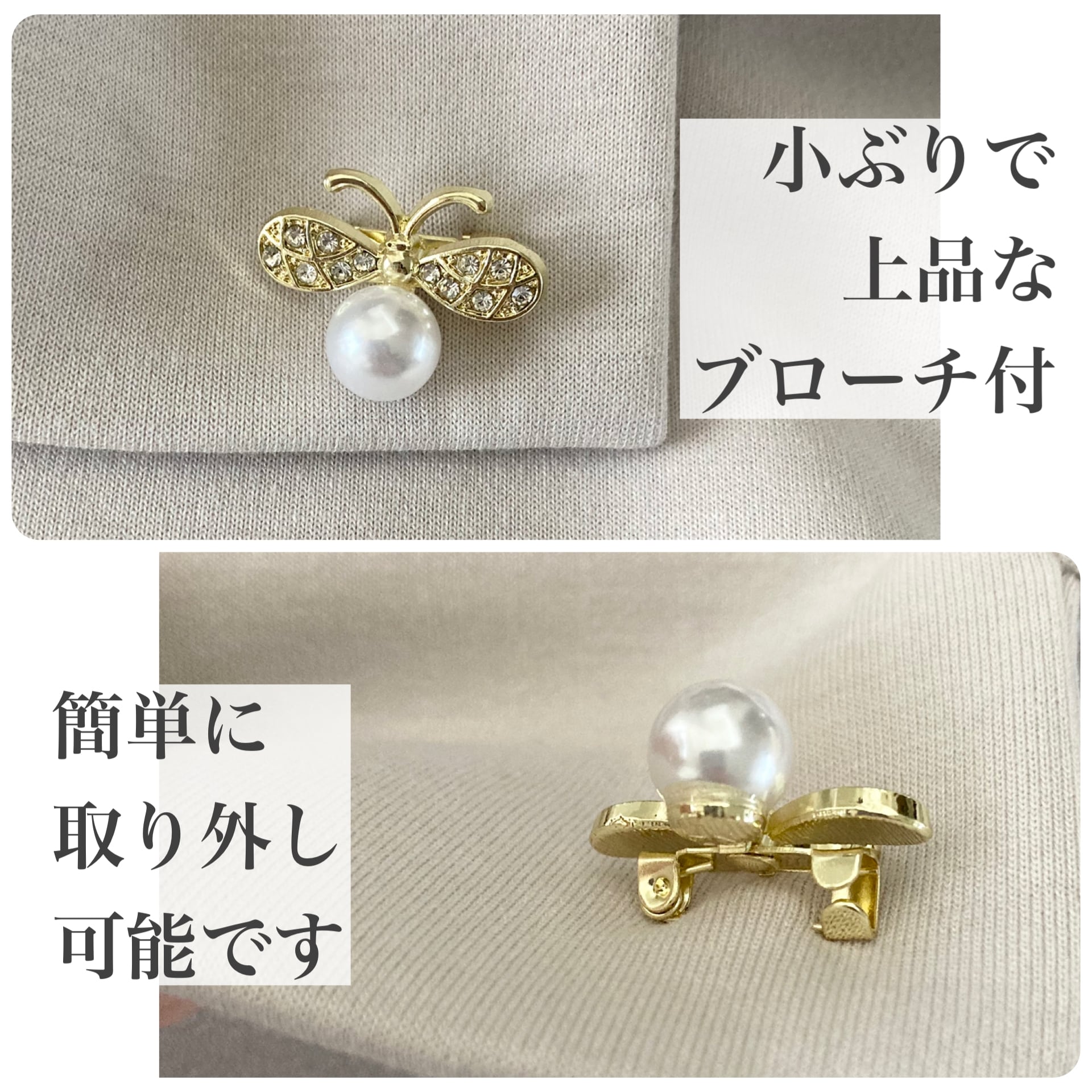 (このブローチは、簡単に取り外せるのでお好みで着脱可能です)