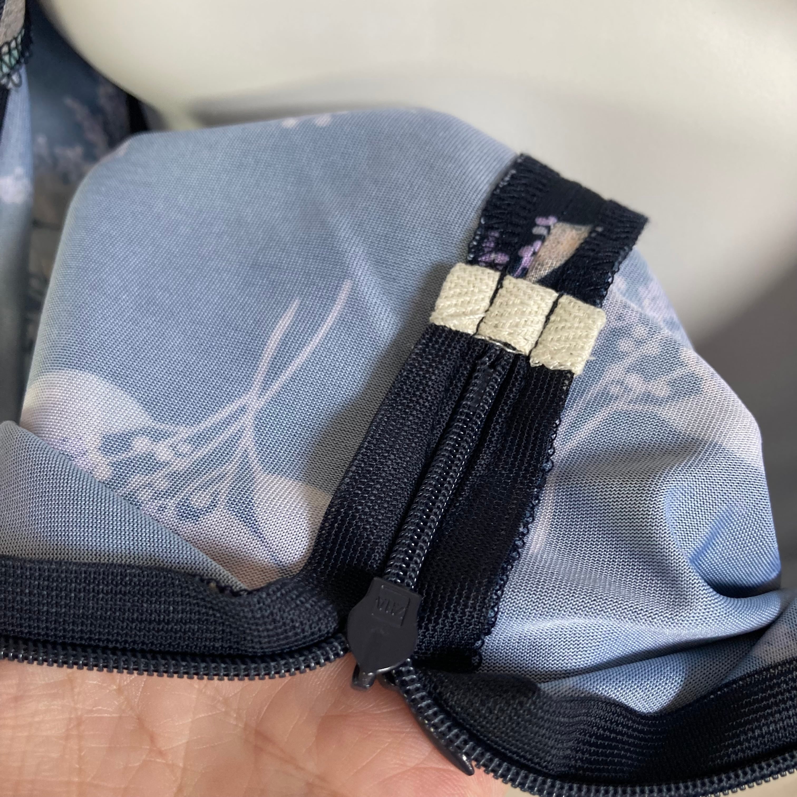 前がファスナーで開くタイプとなっており、しっかり深めの8分開きなので脱ぎ着がラクラク!