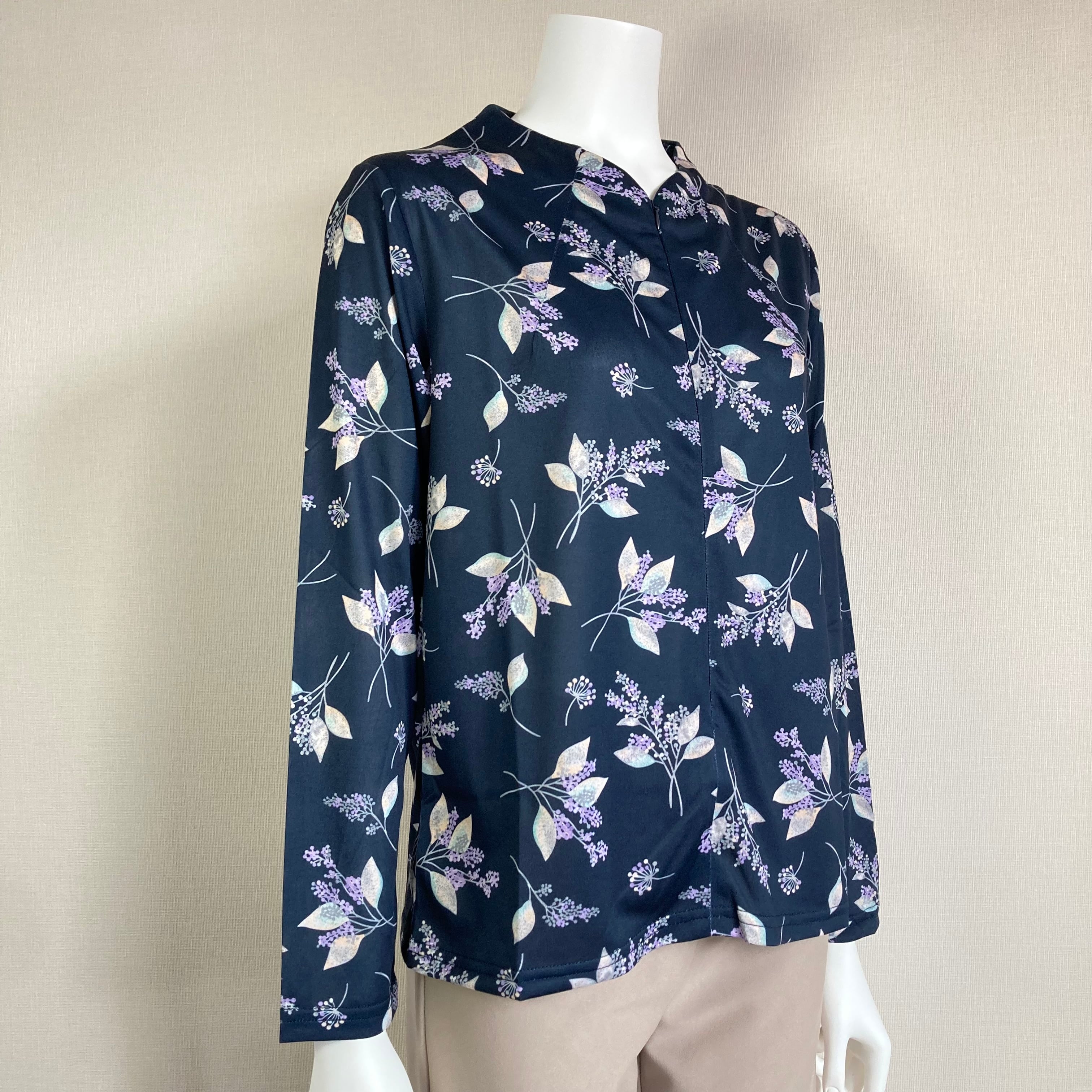【洗濯機OK】前ファスナー8分開きで脱ぎ着がラクラク!お花柄カットソー/70代・80代・90代ギフト/Sサイズ小さめ高齢者服シニアファッション