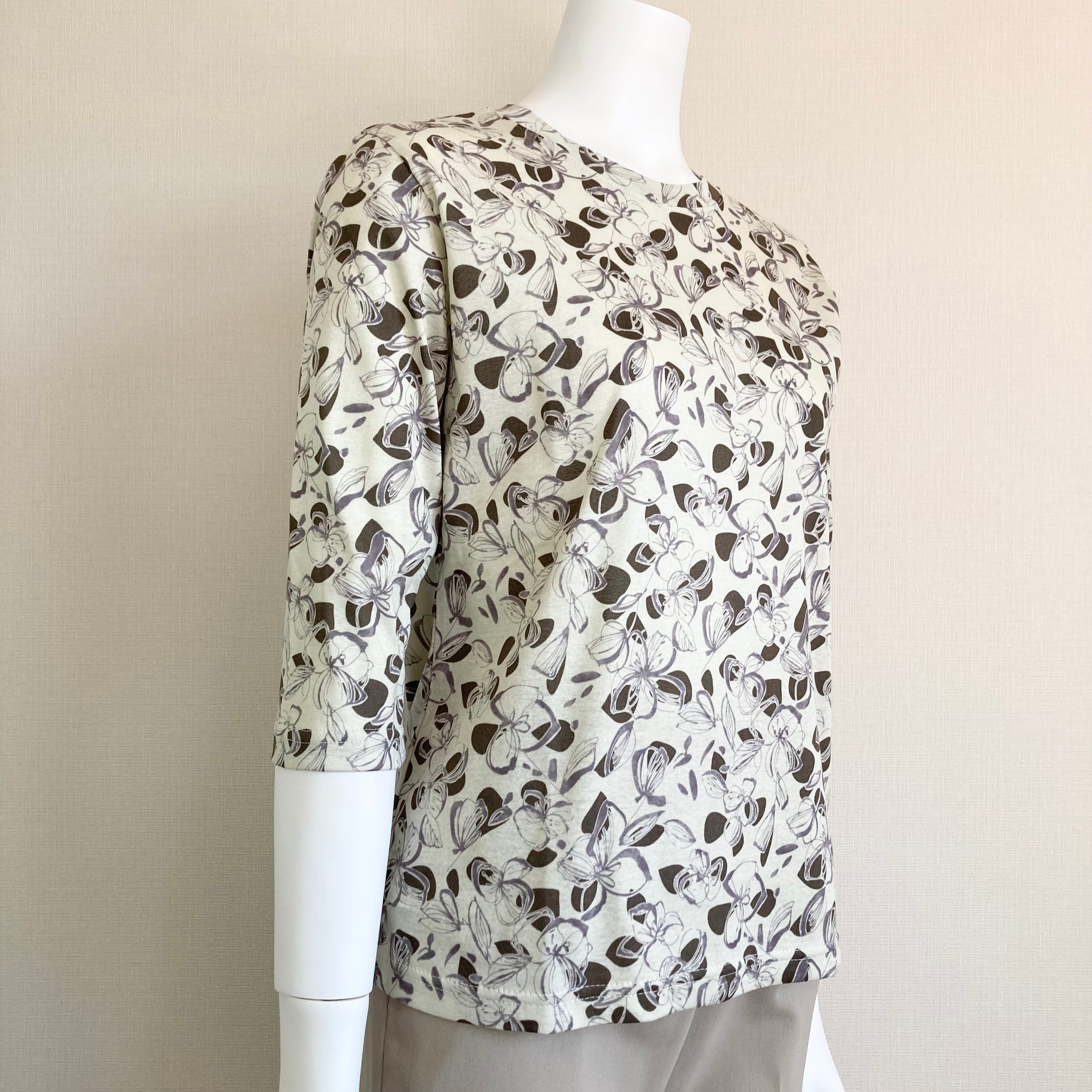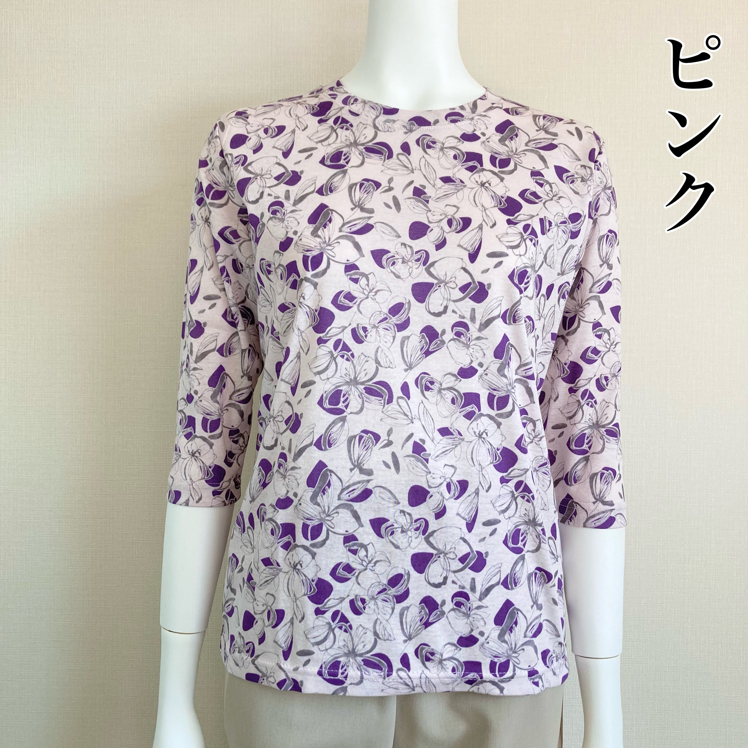 【春夏新作】7分袖☆優しい雰囲気のお花柄!涼しい綿100%の日本製カットソー/70代・80代・90代ギフト/シニアファッション/Sサイズ/小さいサイズ/高齢者服