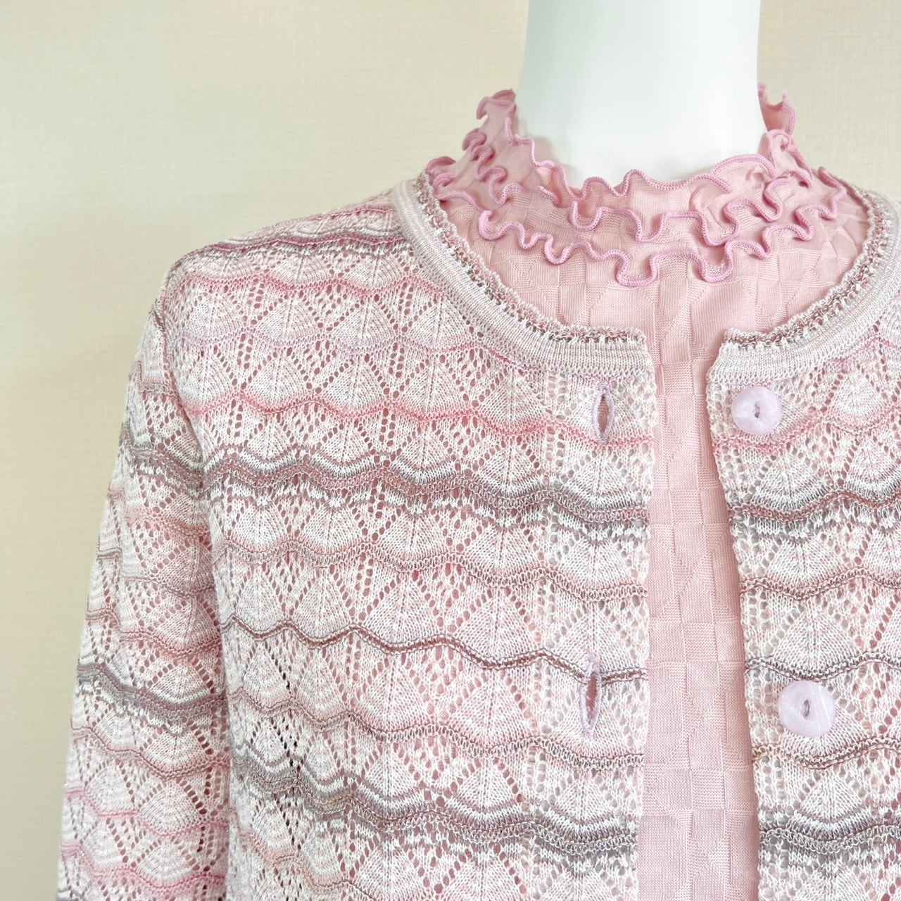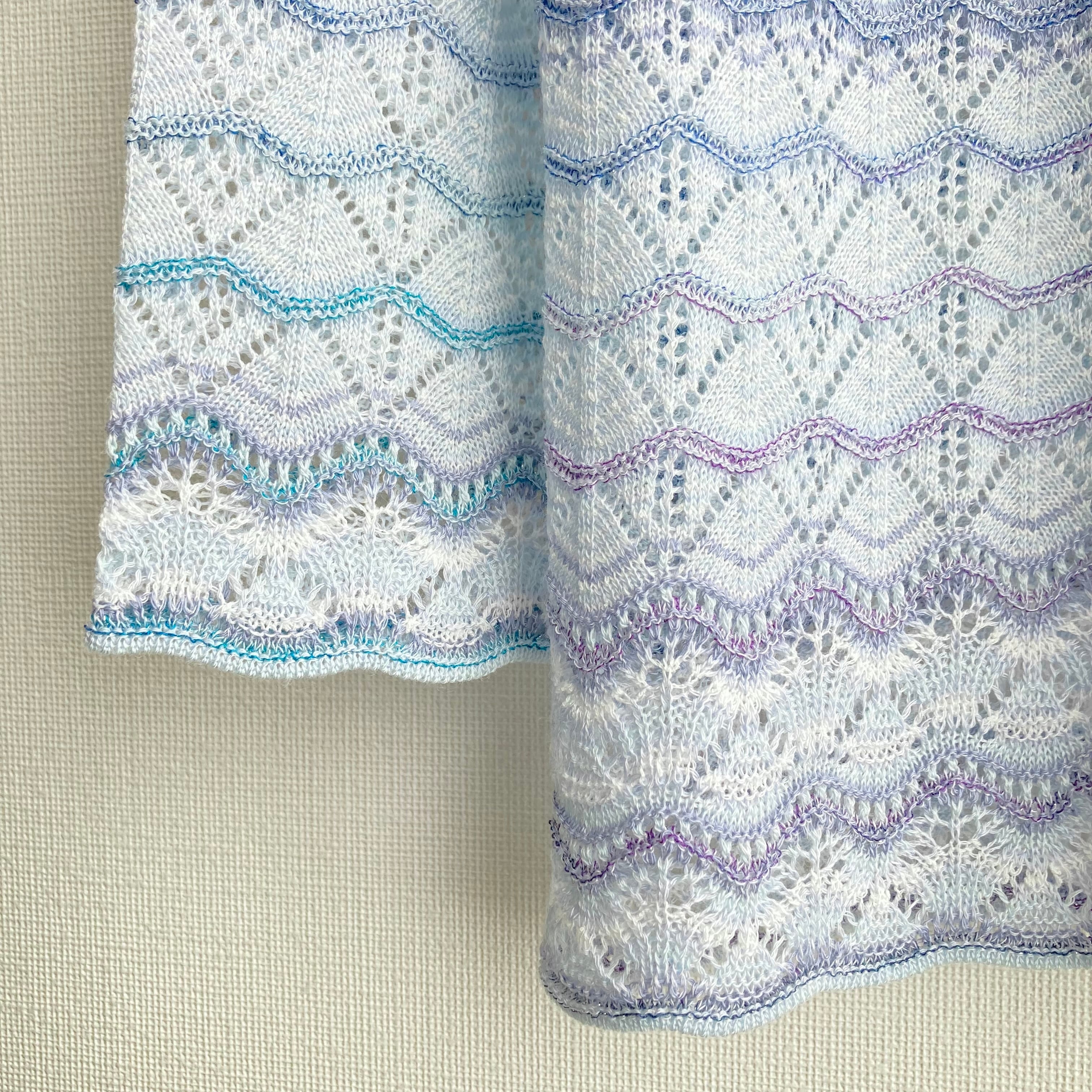 繊細なグラデーションの波ボーダーとレース編みが素敵!初夏〜夏にかけて大活躍な8分袖カーディガン
