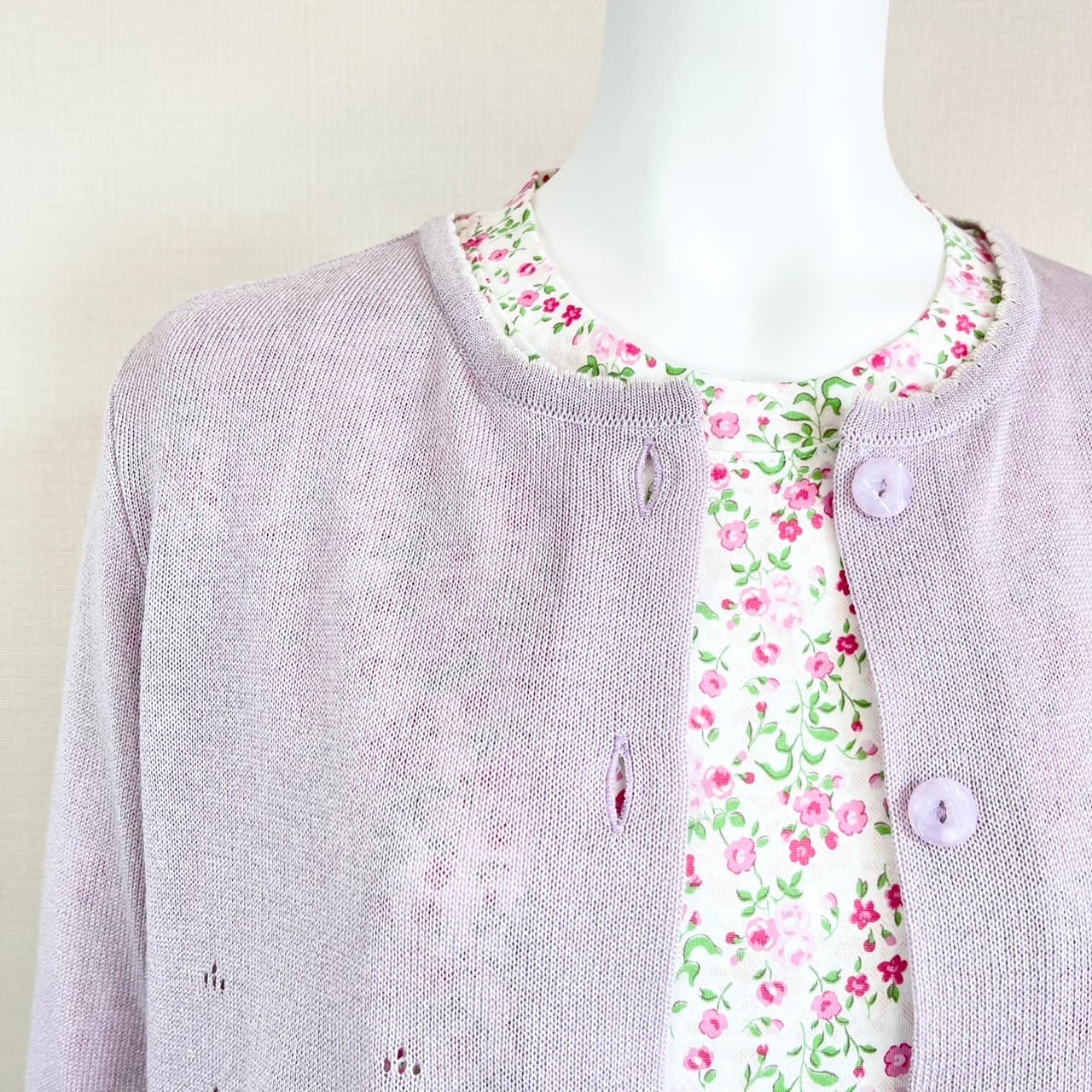 こちらのページは、カーディガン単体の商品ページです。インナーのカットソーは、撮影用コーディネート例として載せております。