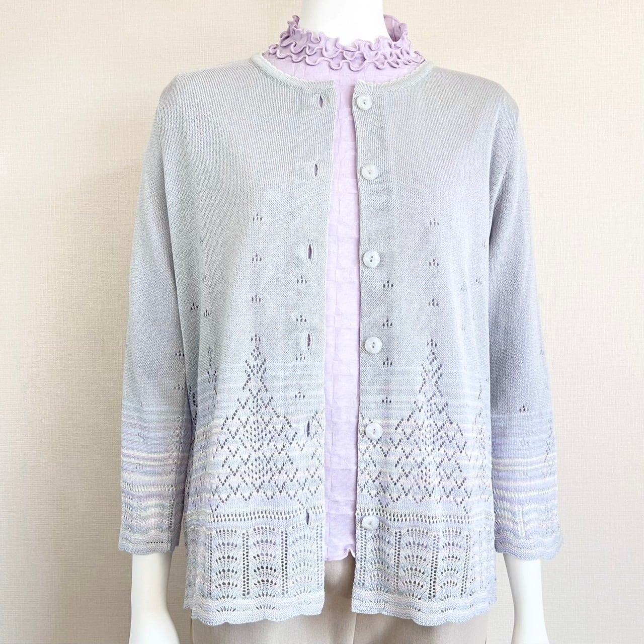 裾のグラデーションカラーとレース編みが素敵!初夏〜夏にかけて大活躍な8分袖カーディガン